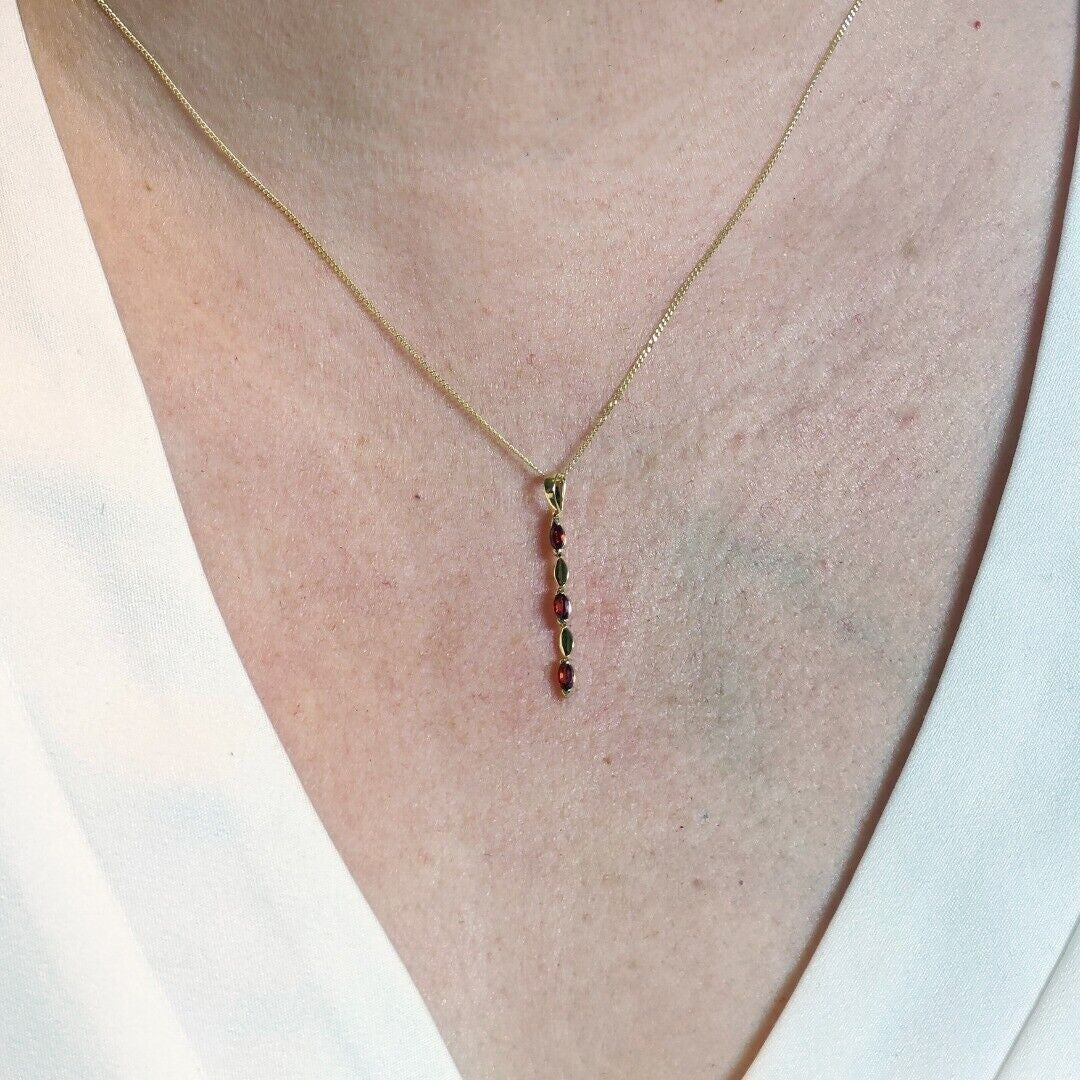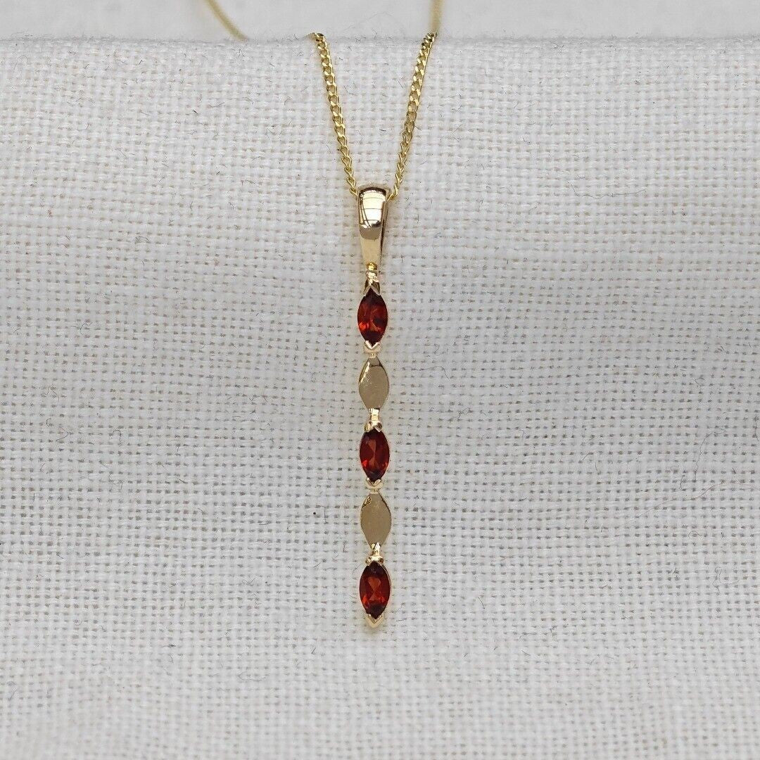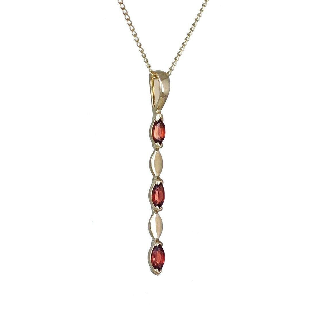 Garnet Pendant 9ct Yellow Gold Marquise Red Natural Gemstones