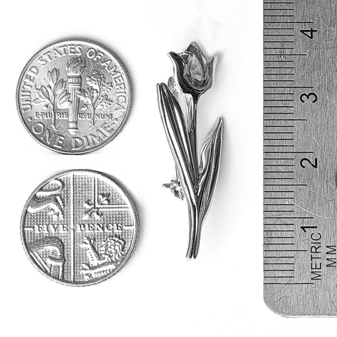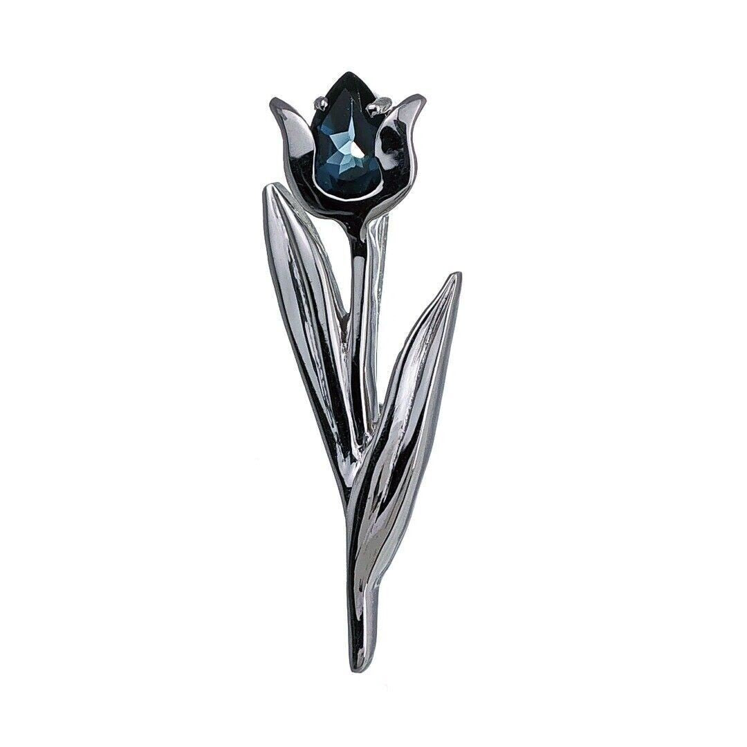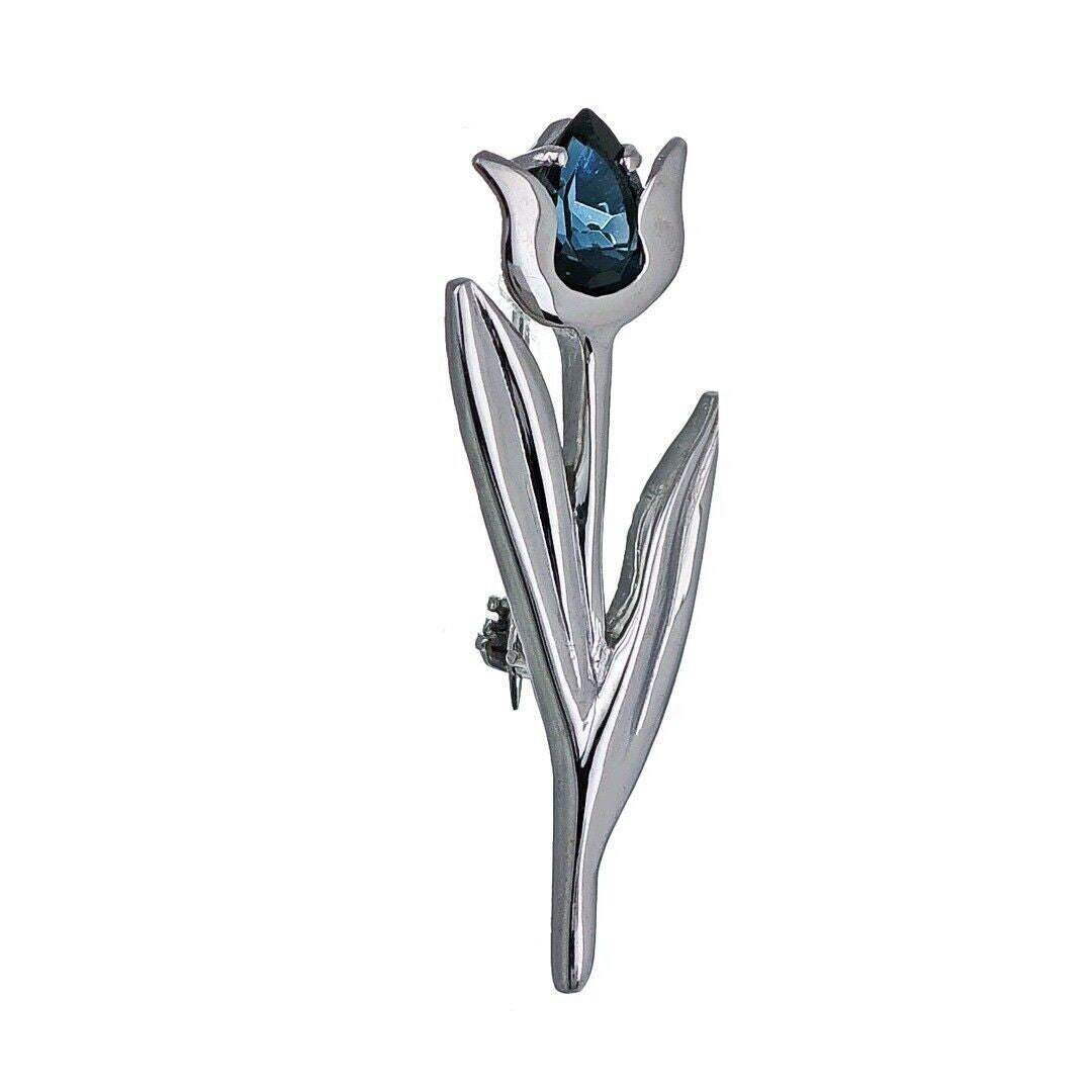 This elegant tulip flower brooch is set with a sparkling London blue topaz gemstone. The natural gemstone is from Africa and measures 7 x 5mm, giving the set an approximate 0.76ct stone weight.