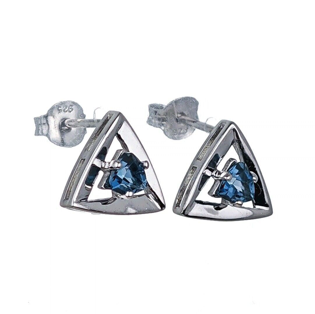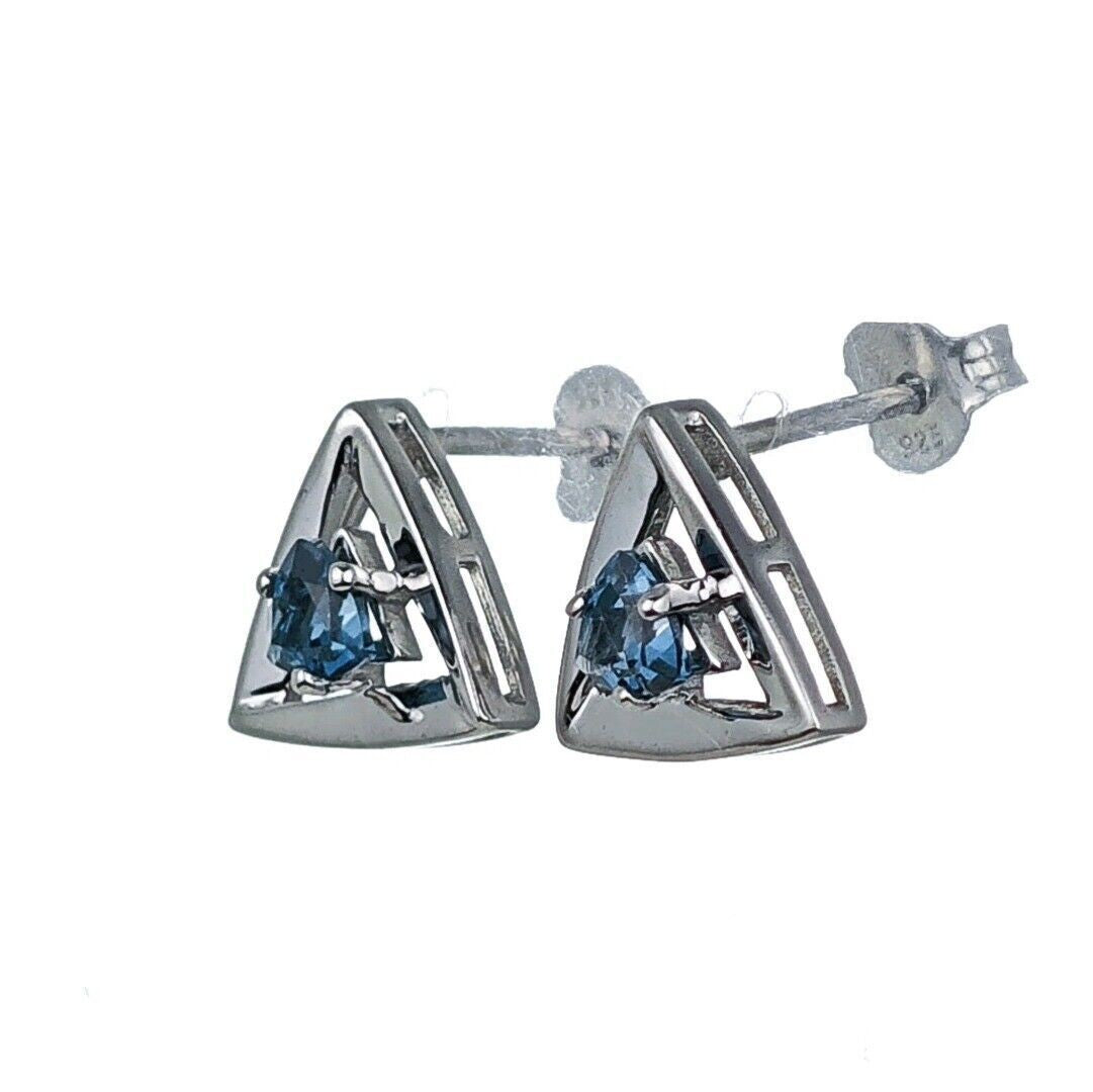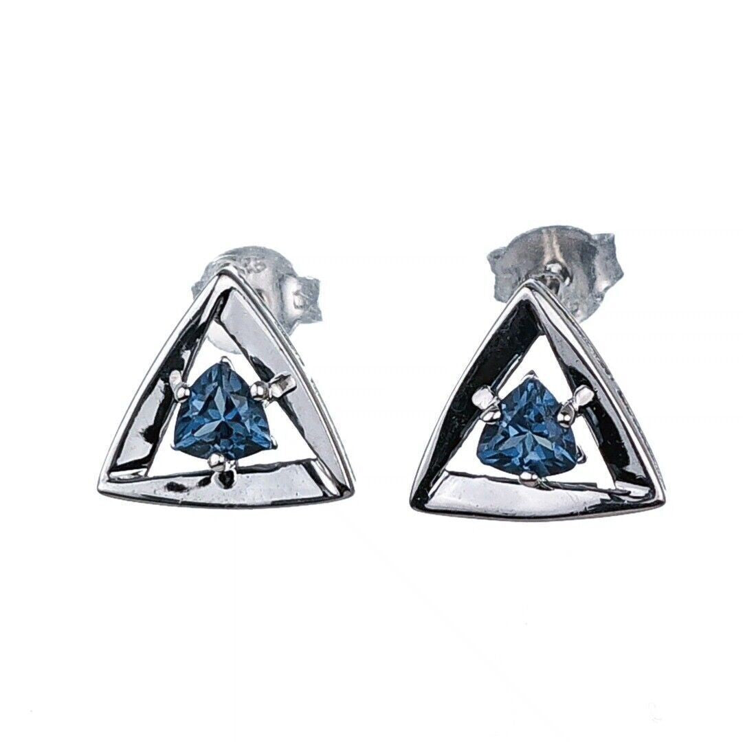 London Blue Topaz Trillion Stud Earrings in Sterling Silver