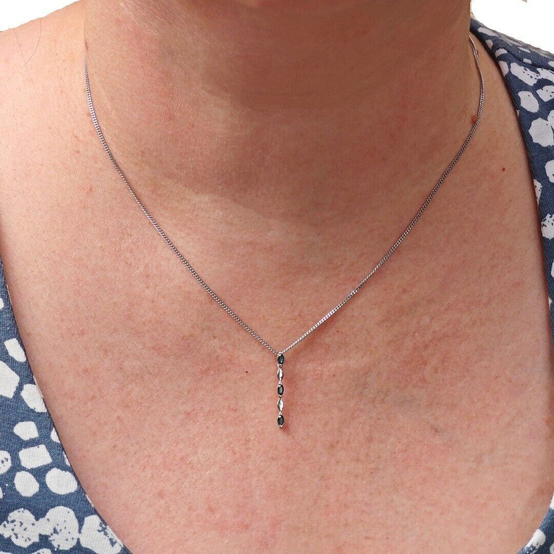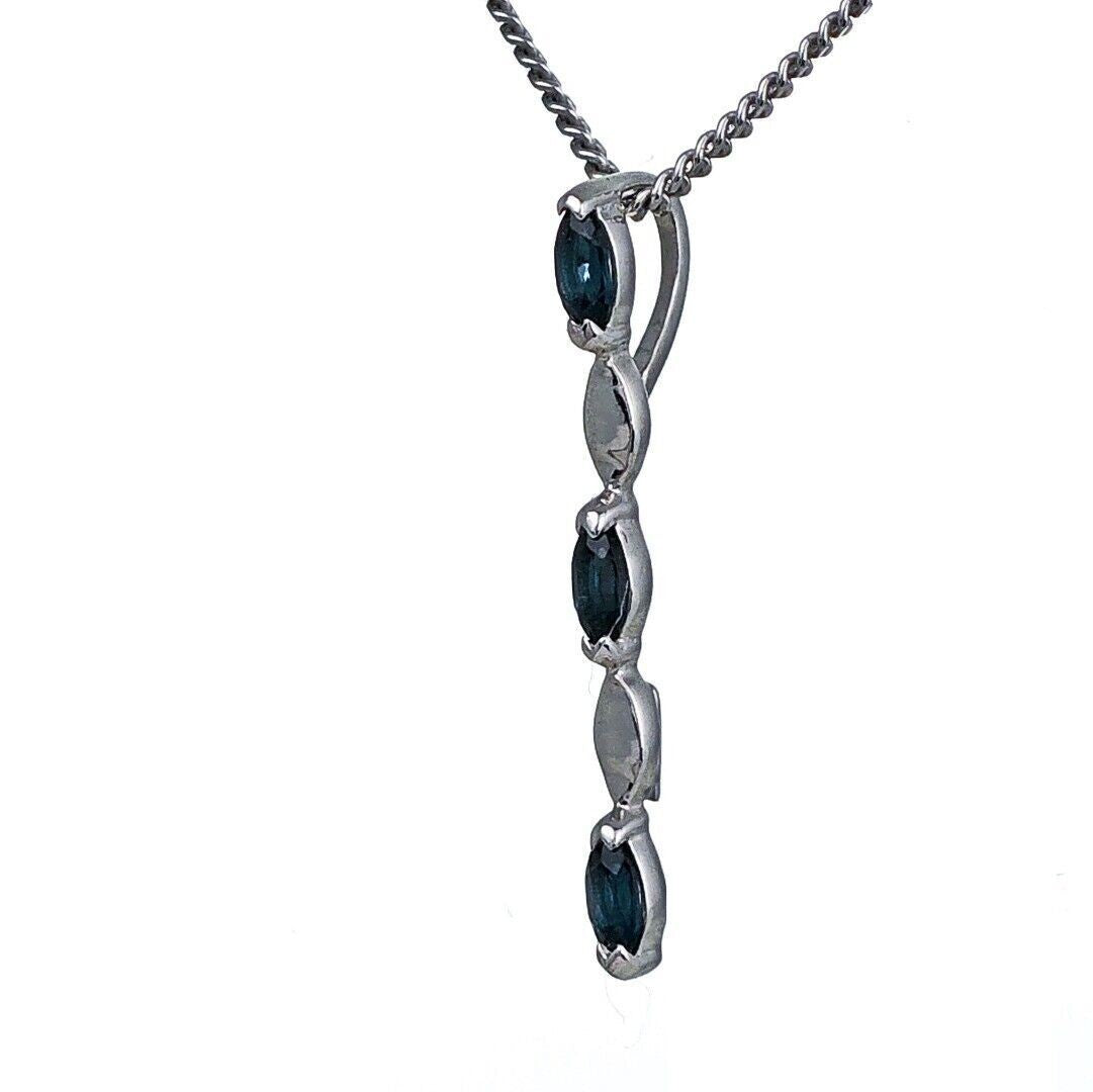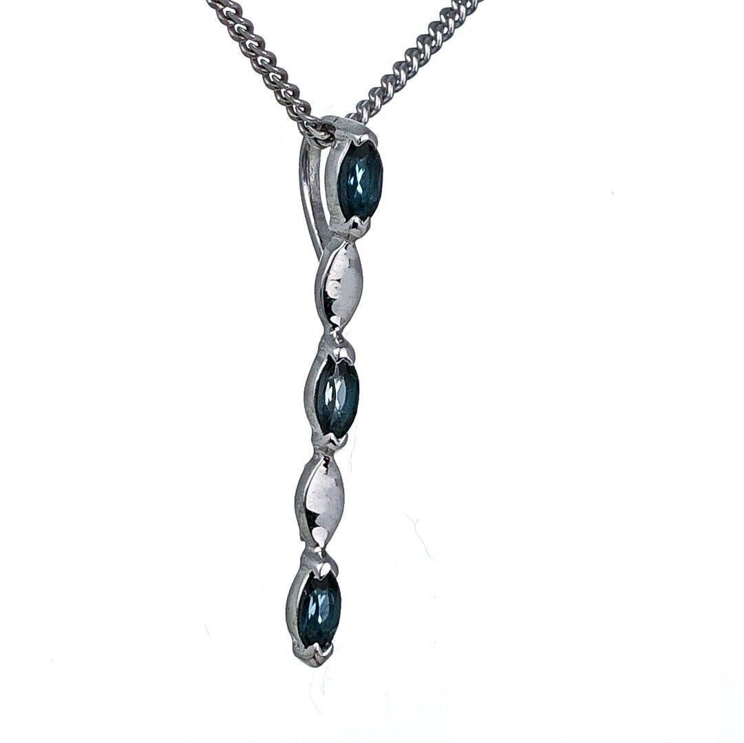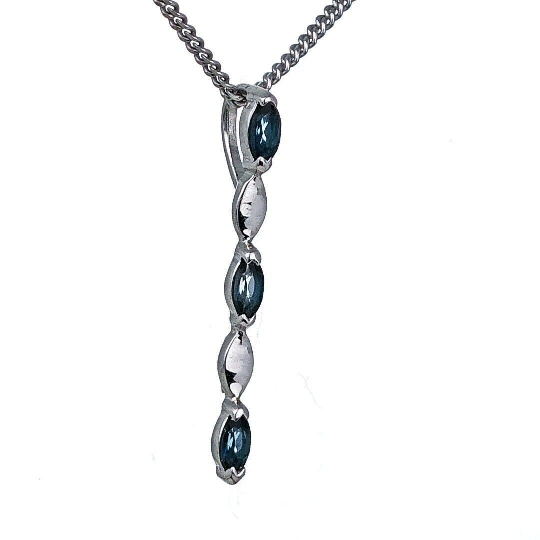 This elegant marquise cut London blue topaz drop pendant is made of sterling silver and features three natural blue topaz gemstones from Africa. Each stone measures 4 x 2mm, giving an approximate total carat weight of 0.23ct. Blue topaz is associated with calmness, serenity, and loyalty, and is the birthstone for December.