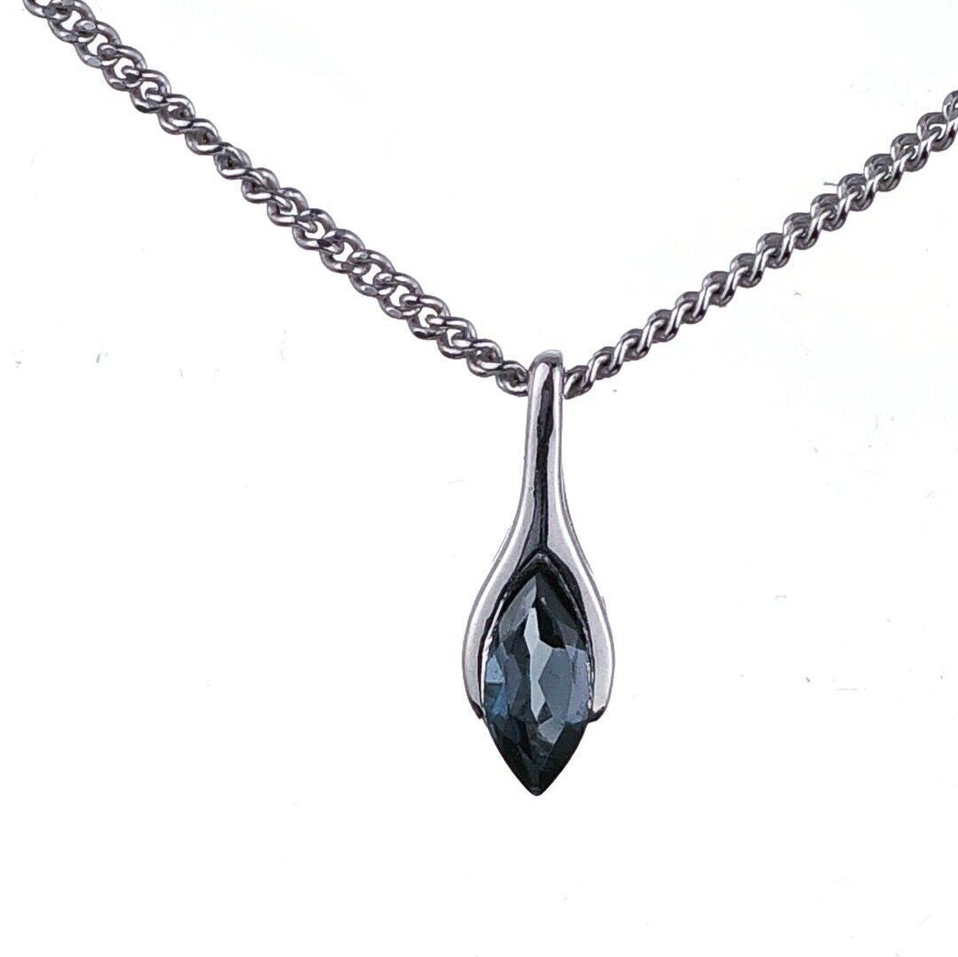 London Blue Topaz Pendant Sterling Silver Minimalist Marquise