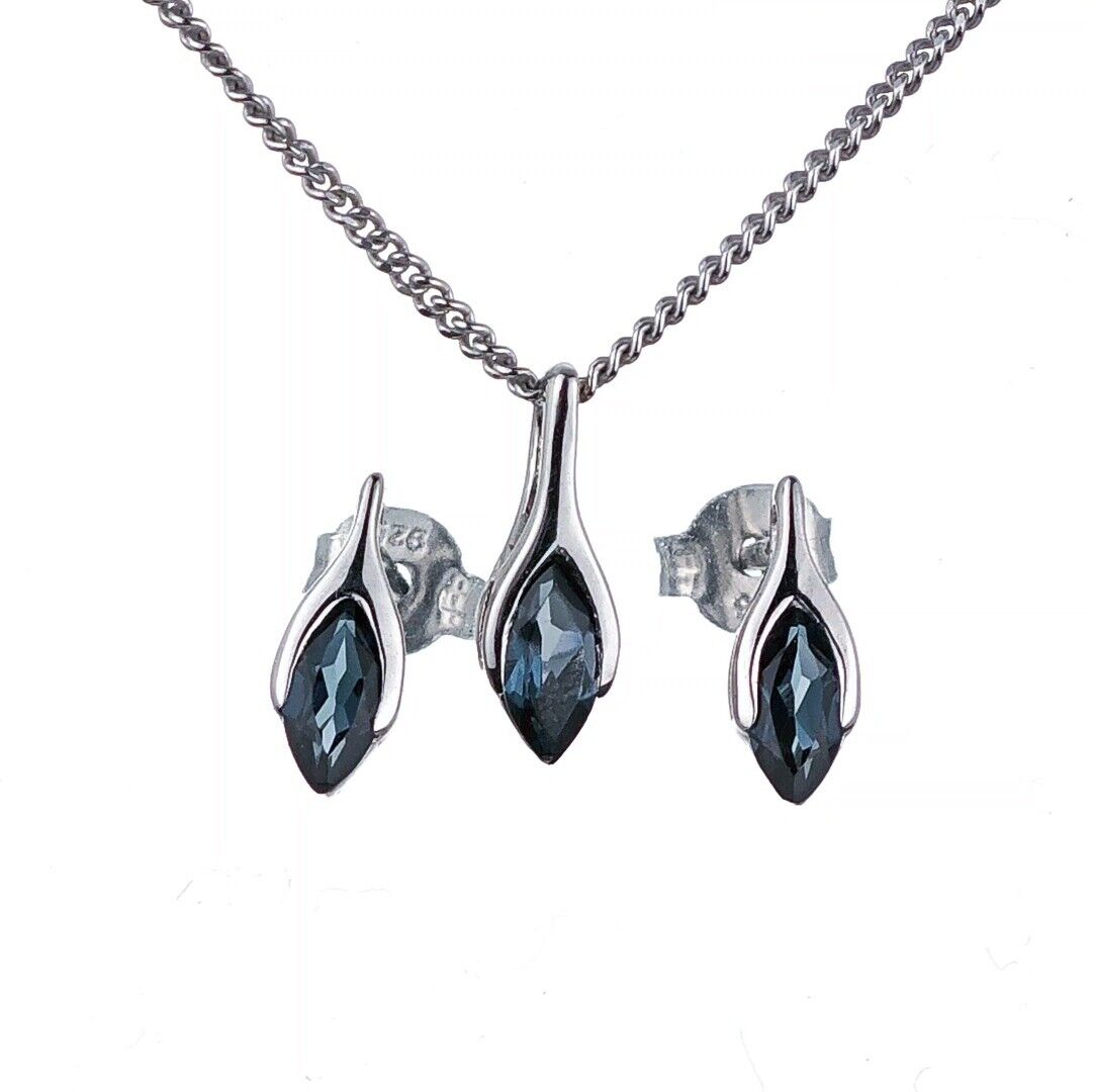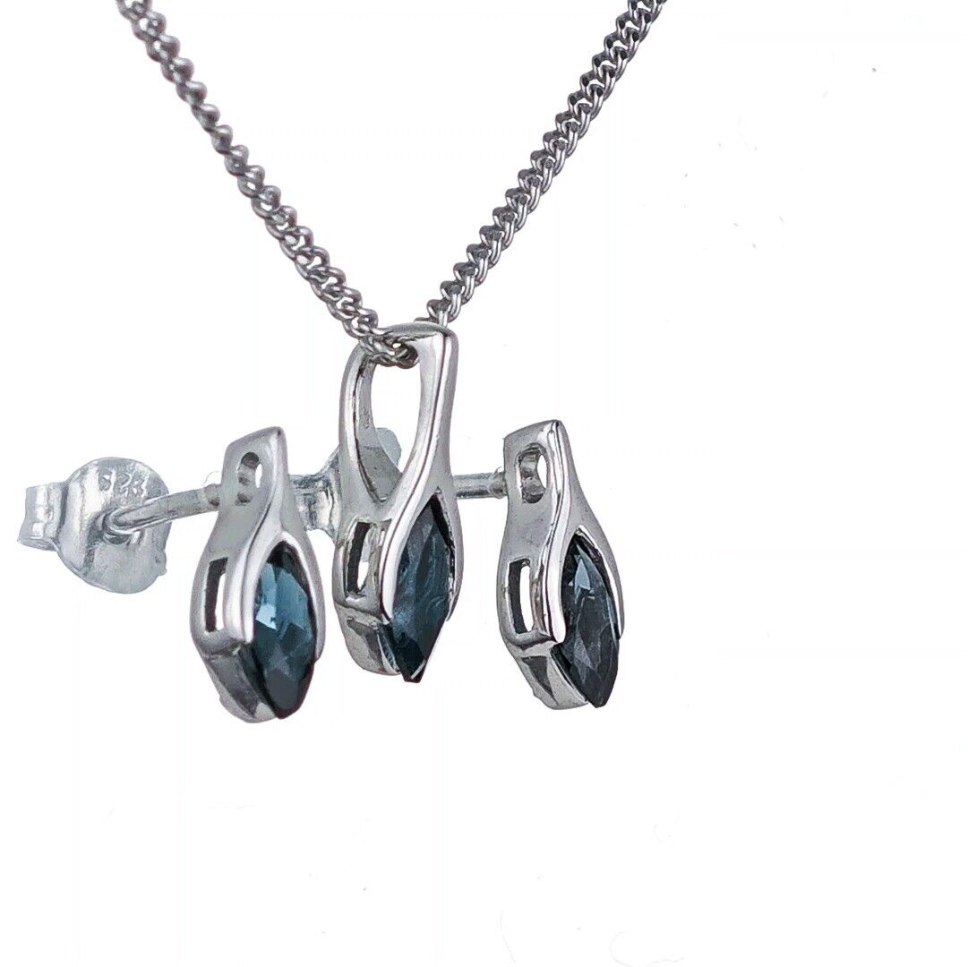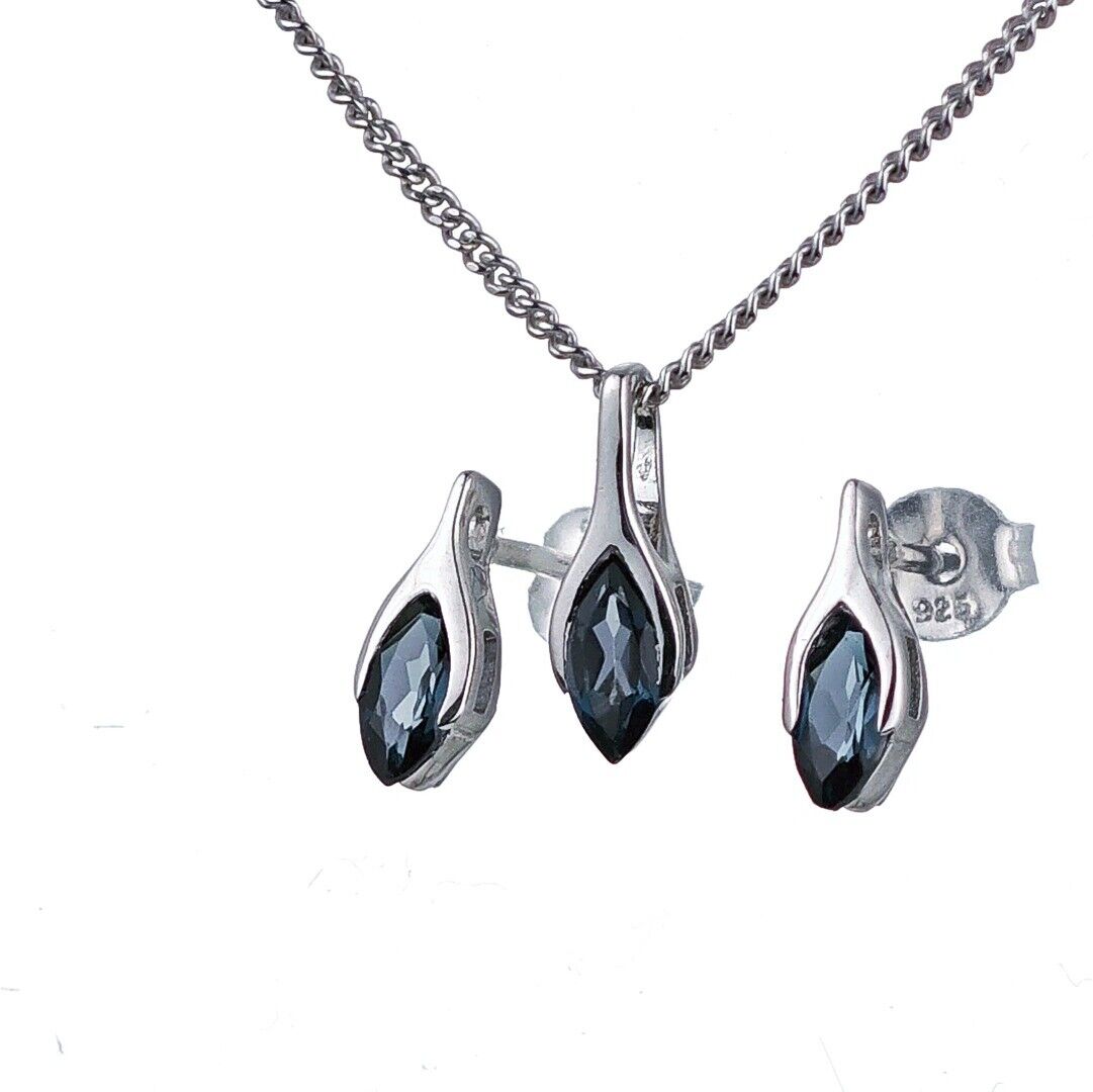 London Blue Topaz Set Necklace Earrings Sterling Silver Studs Minimalist Marquise
