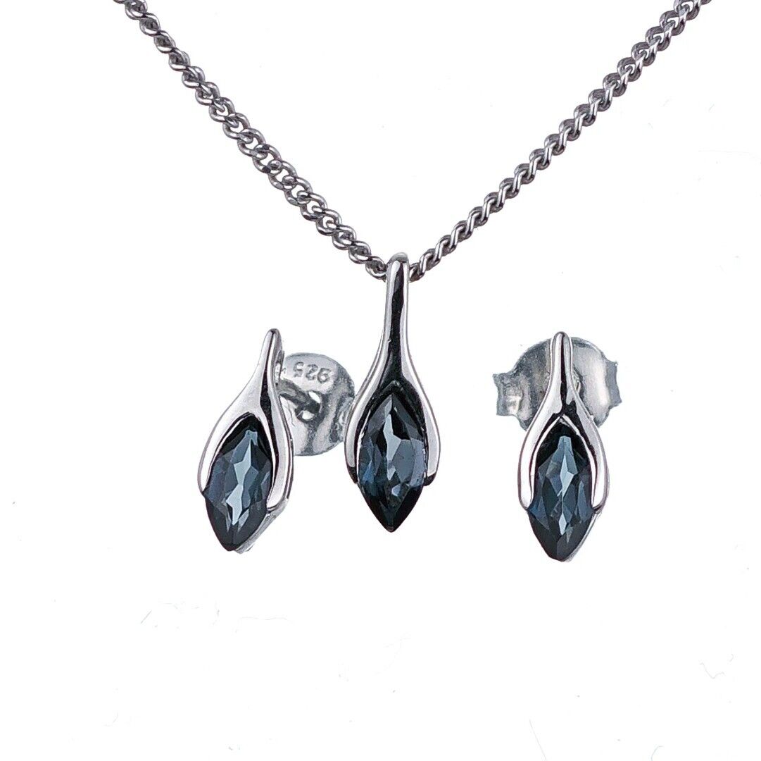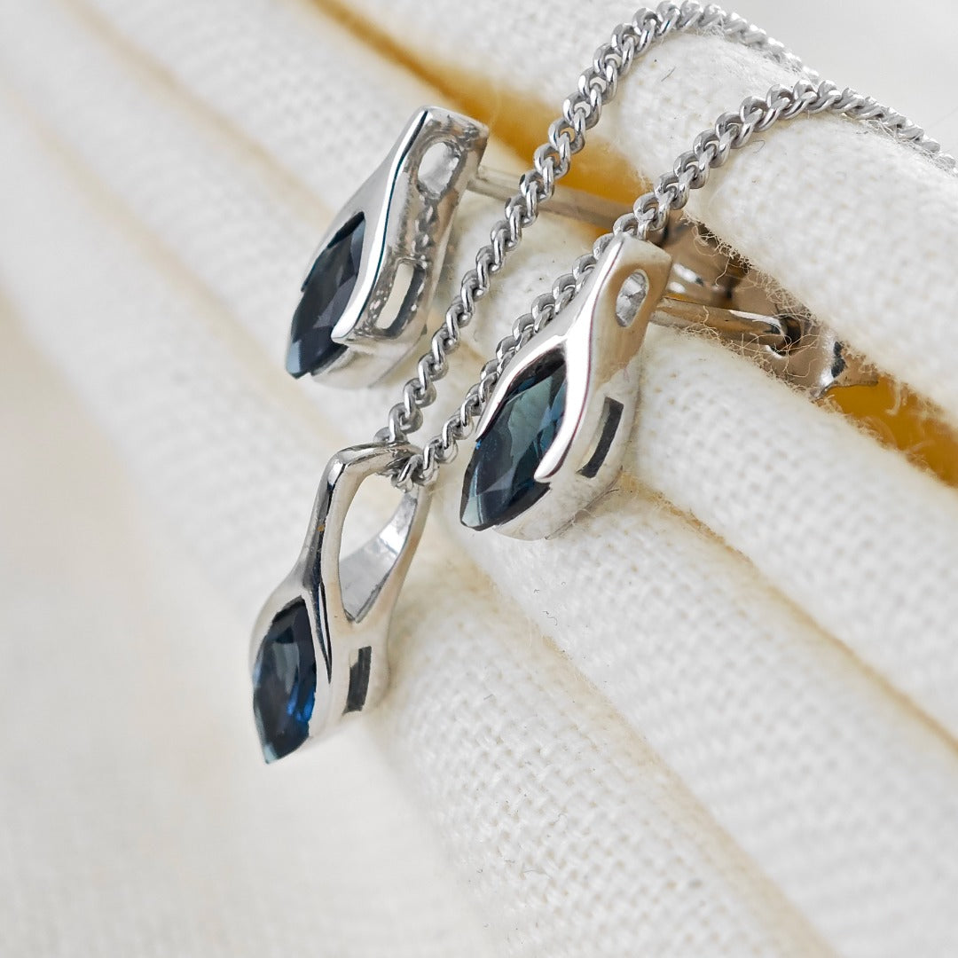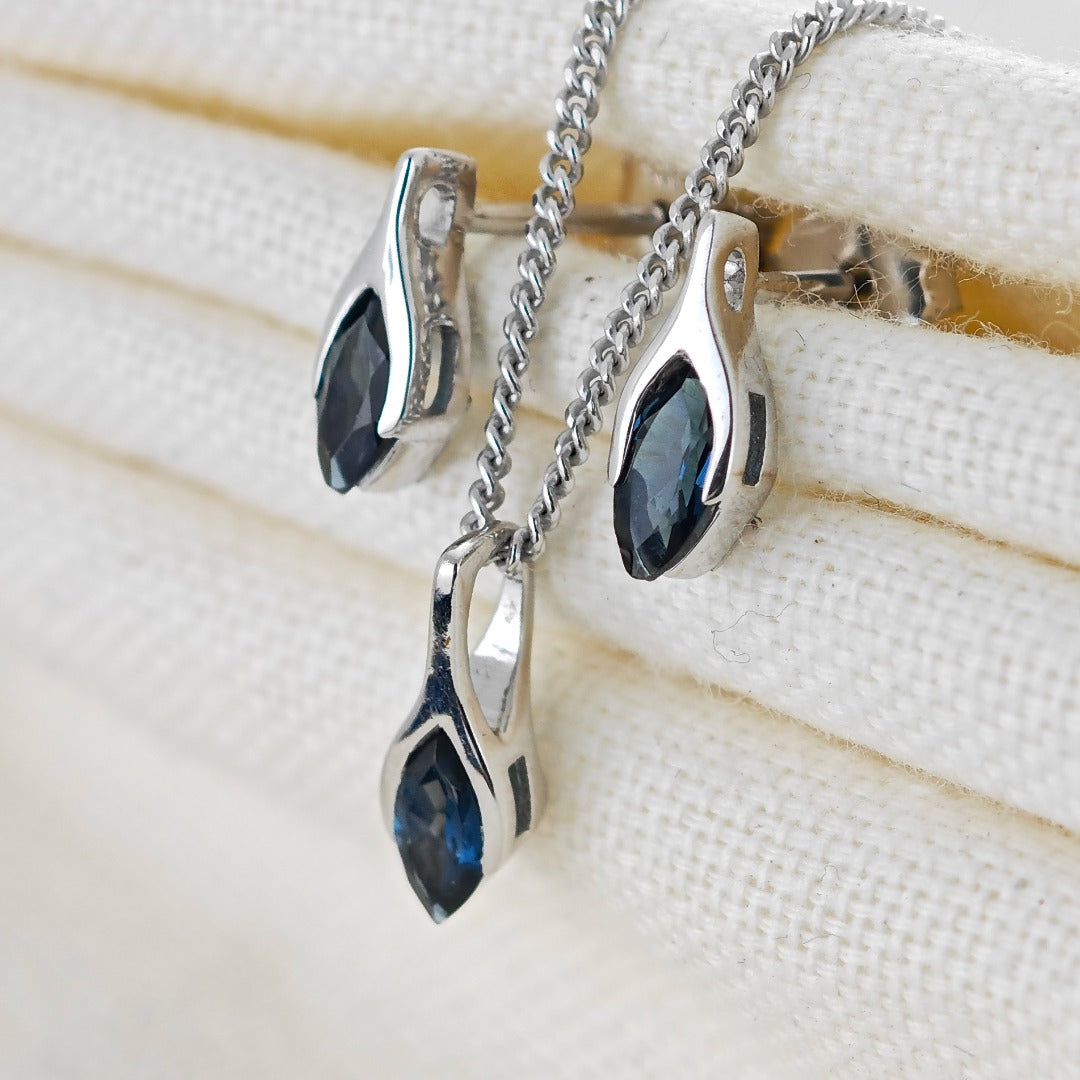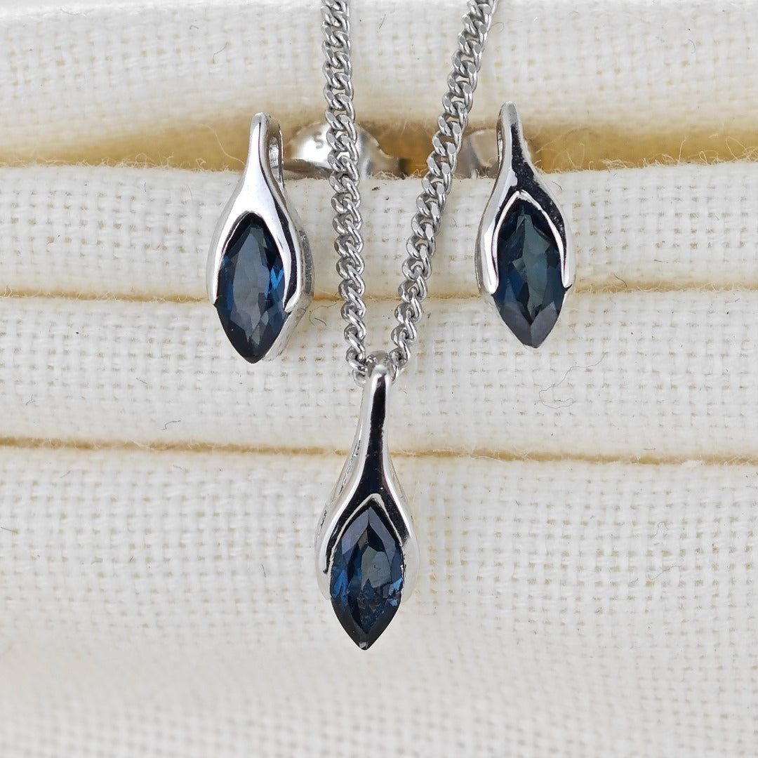 London Blue Topaz Set Necklace Earrings Sterling Silver Studs Minimalist Marquise