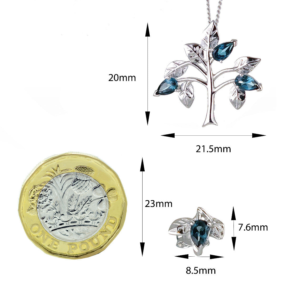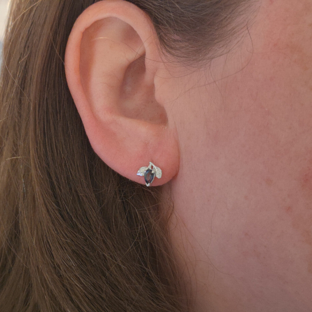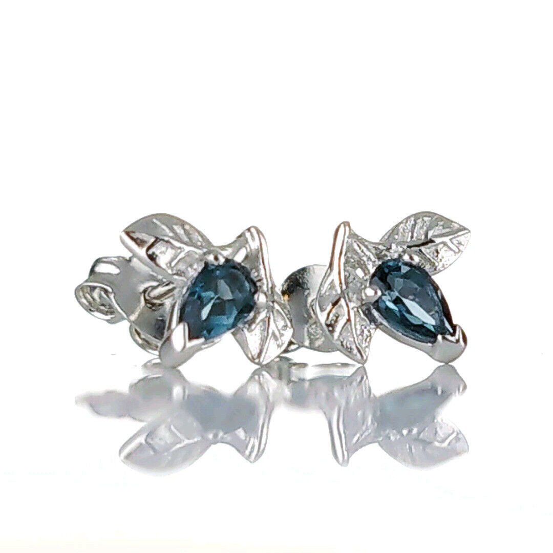 London Blue Topaz Leaf Stud Earrings Sterling Silver Personalised Gift