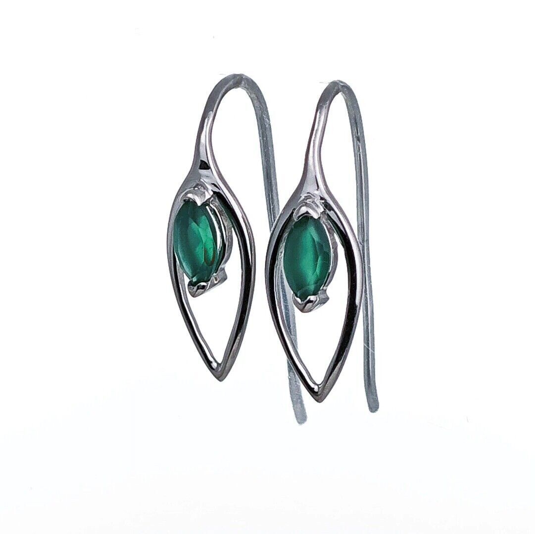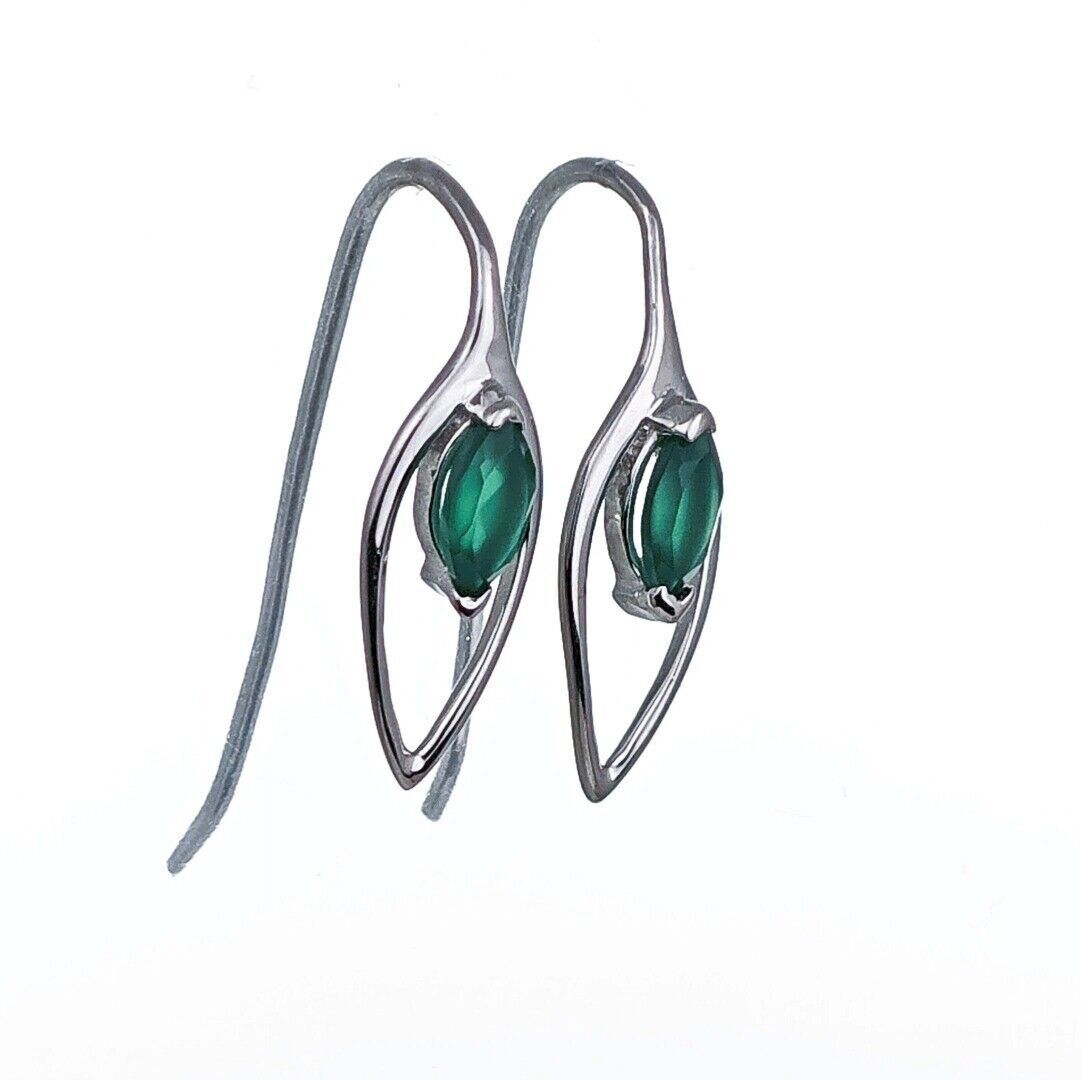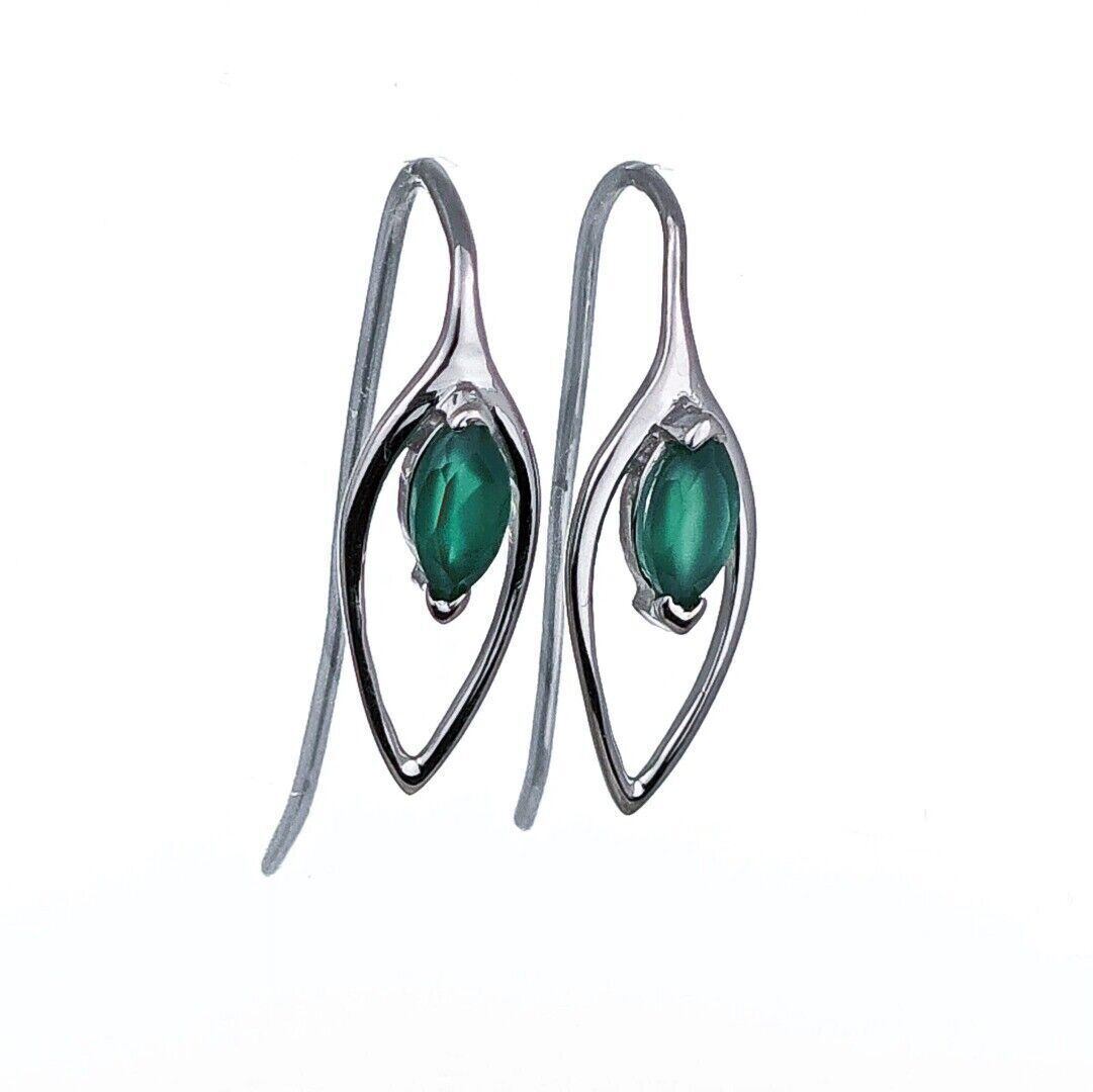 Sterling Silver onyx elipse design dangle Earrings set with a marquise natural Indian Green Onyx.