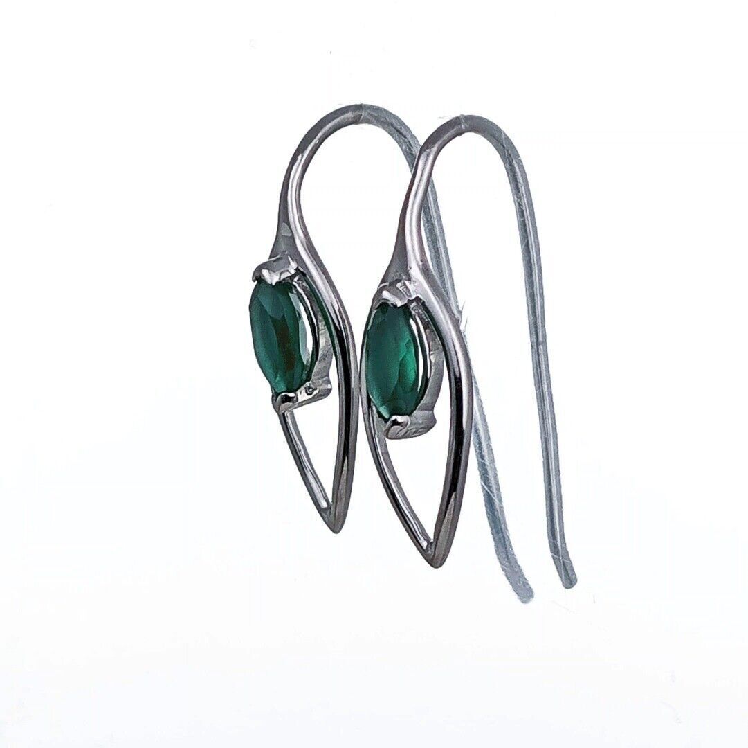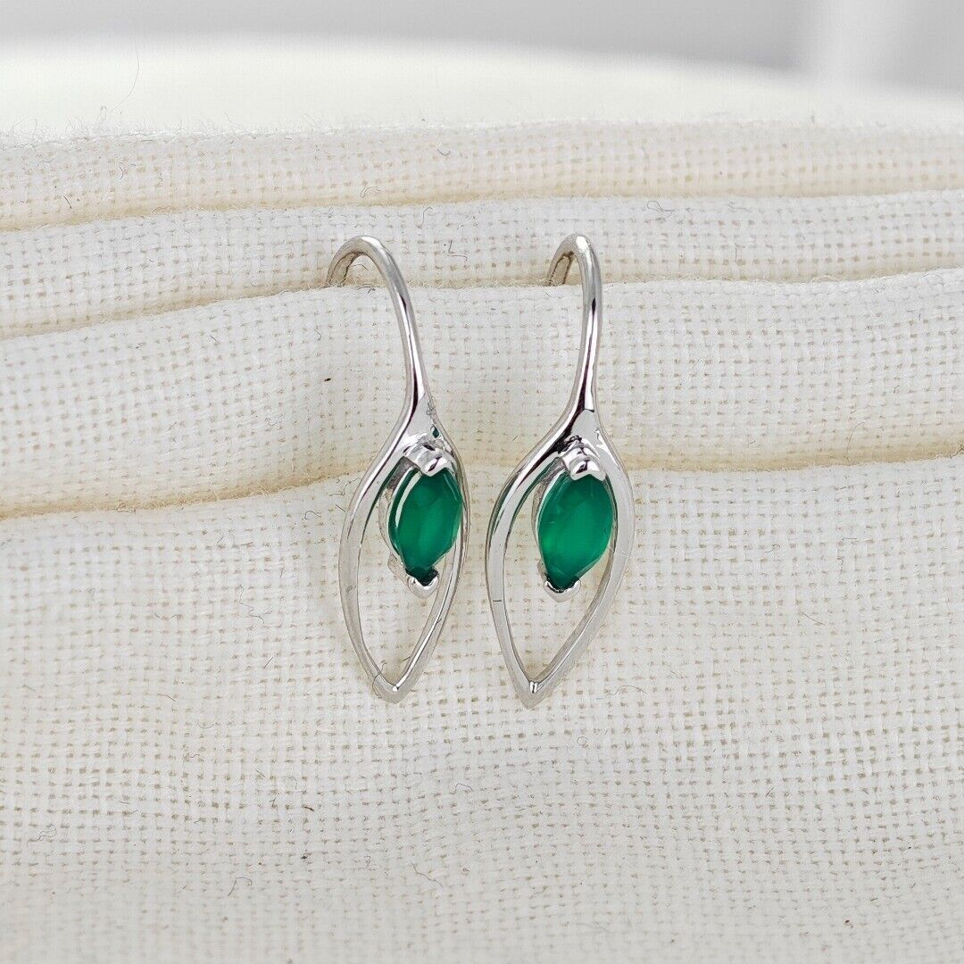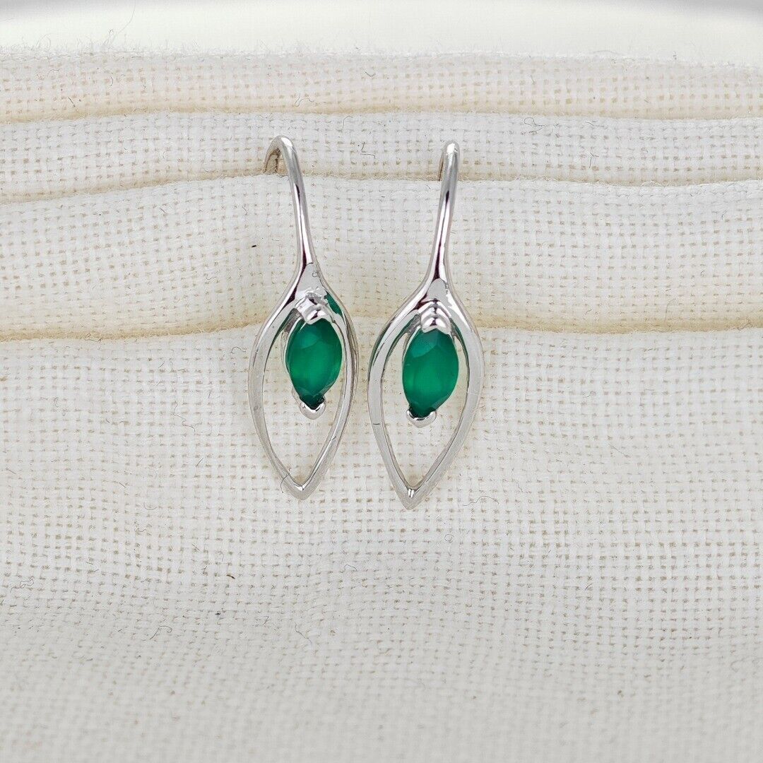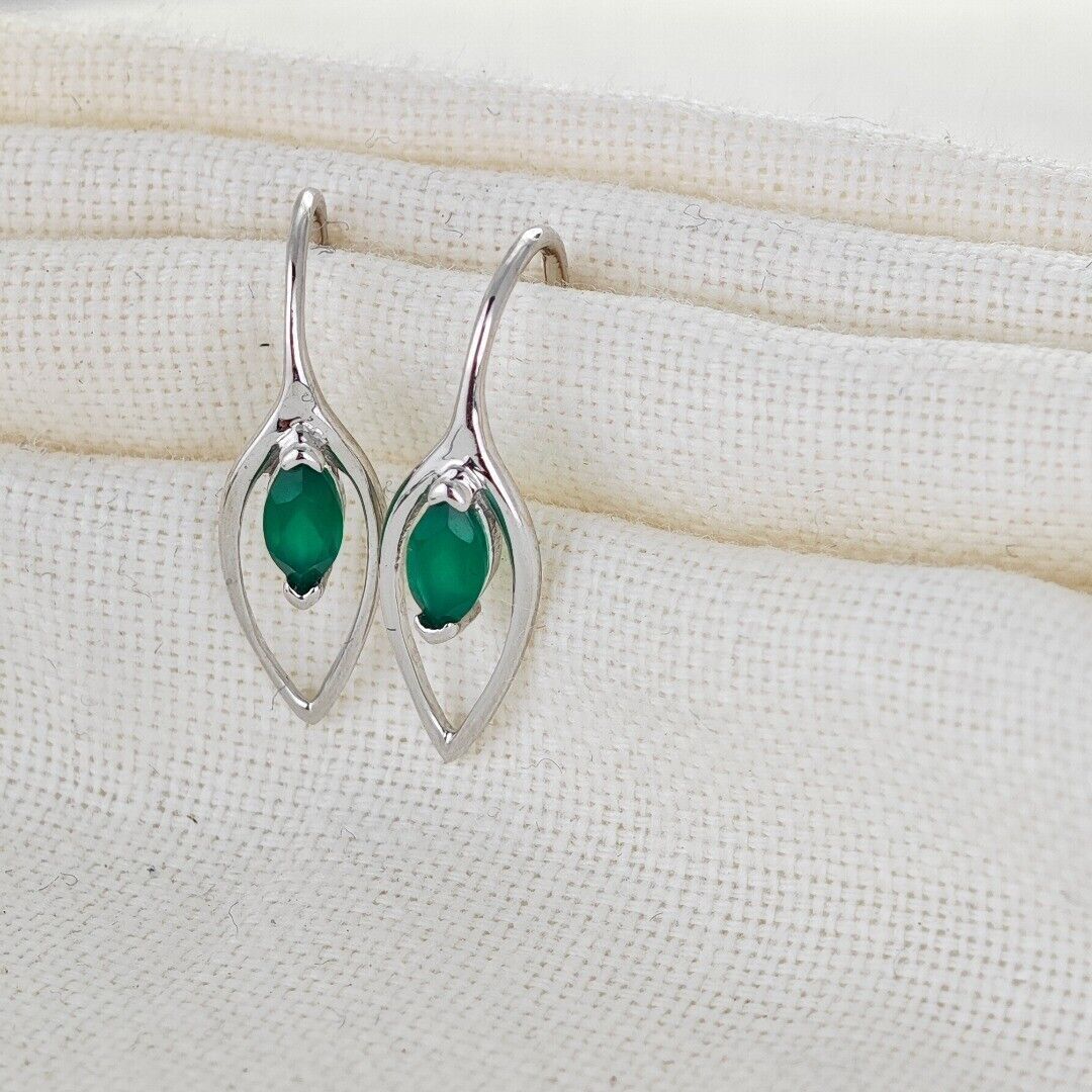 Sterling Silver onyx elipse design dangle Earrings set with a marquise natural Indian Green Onyx.