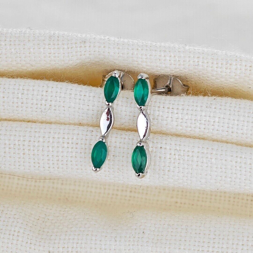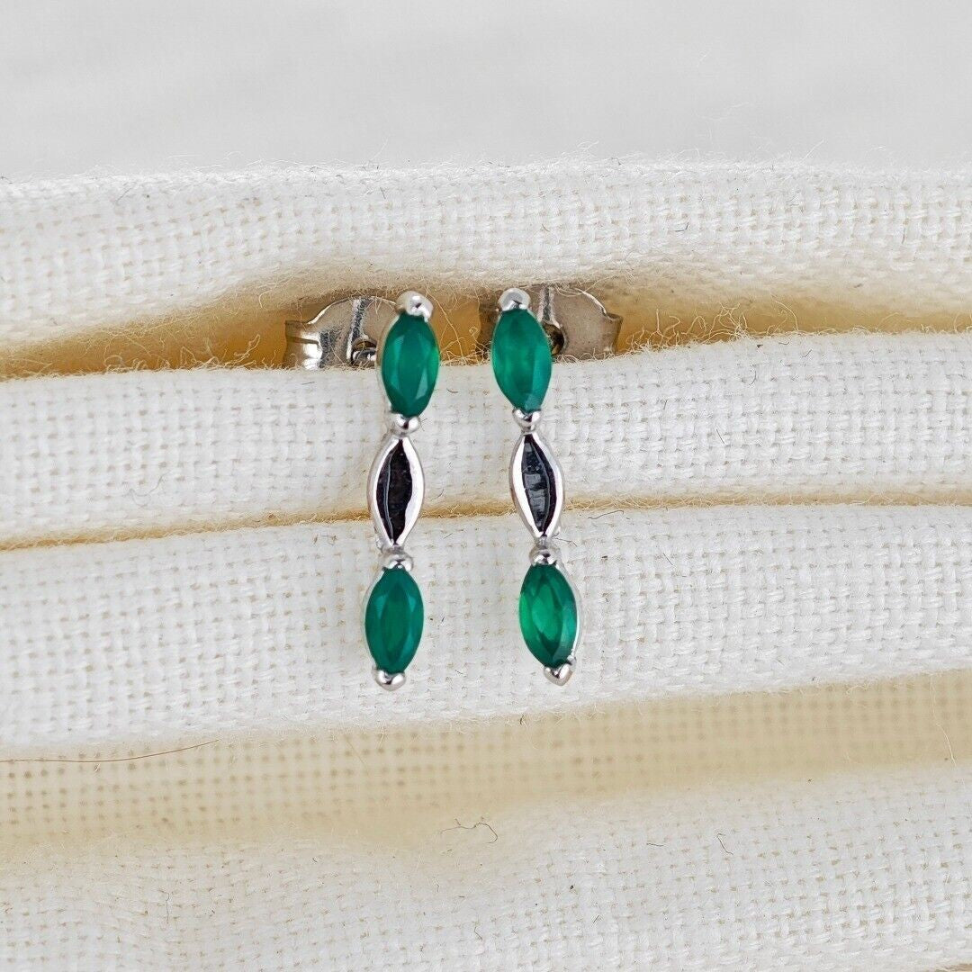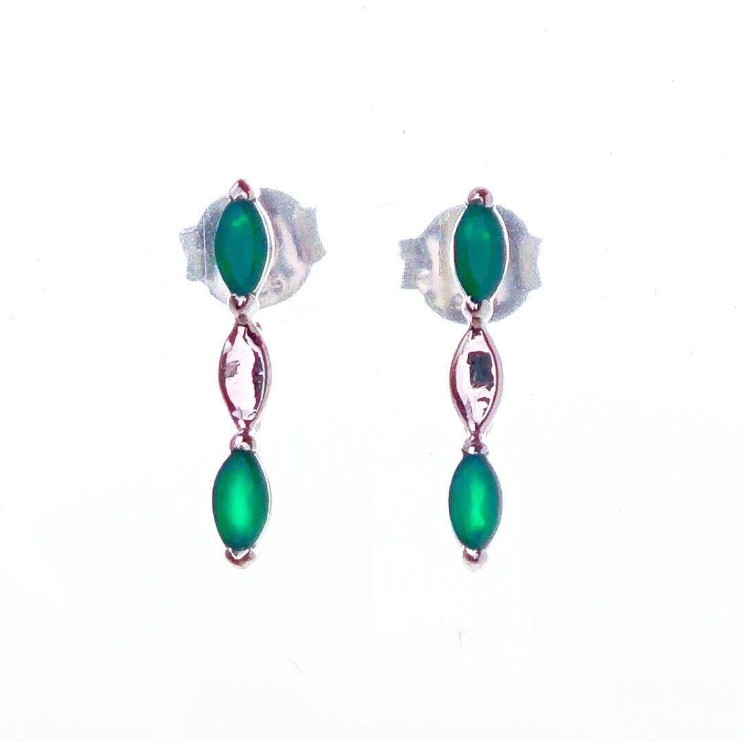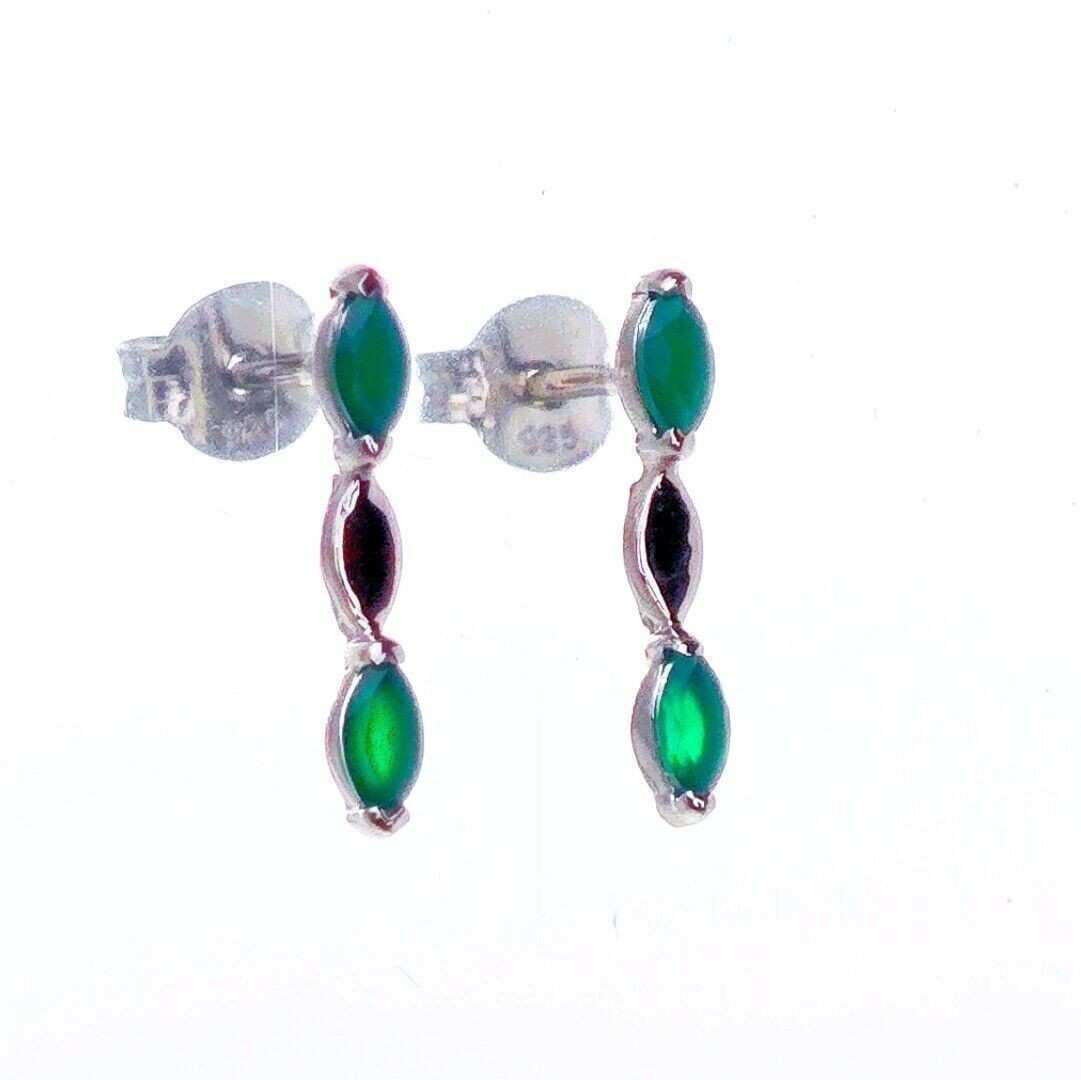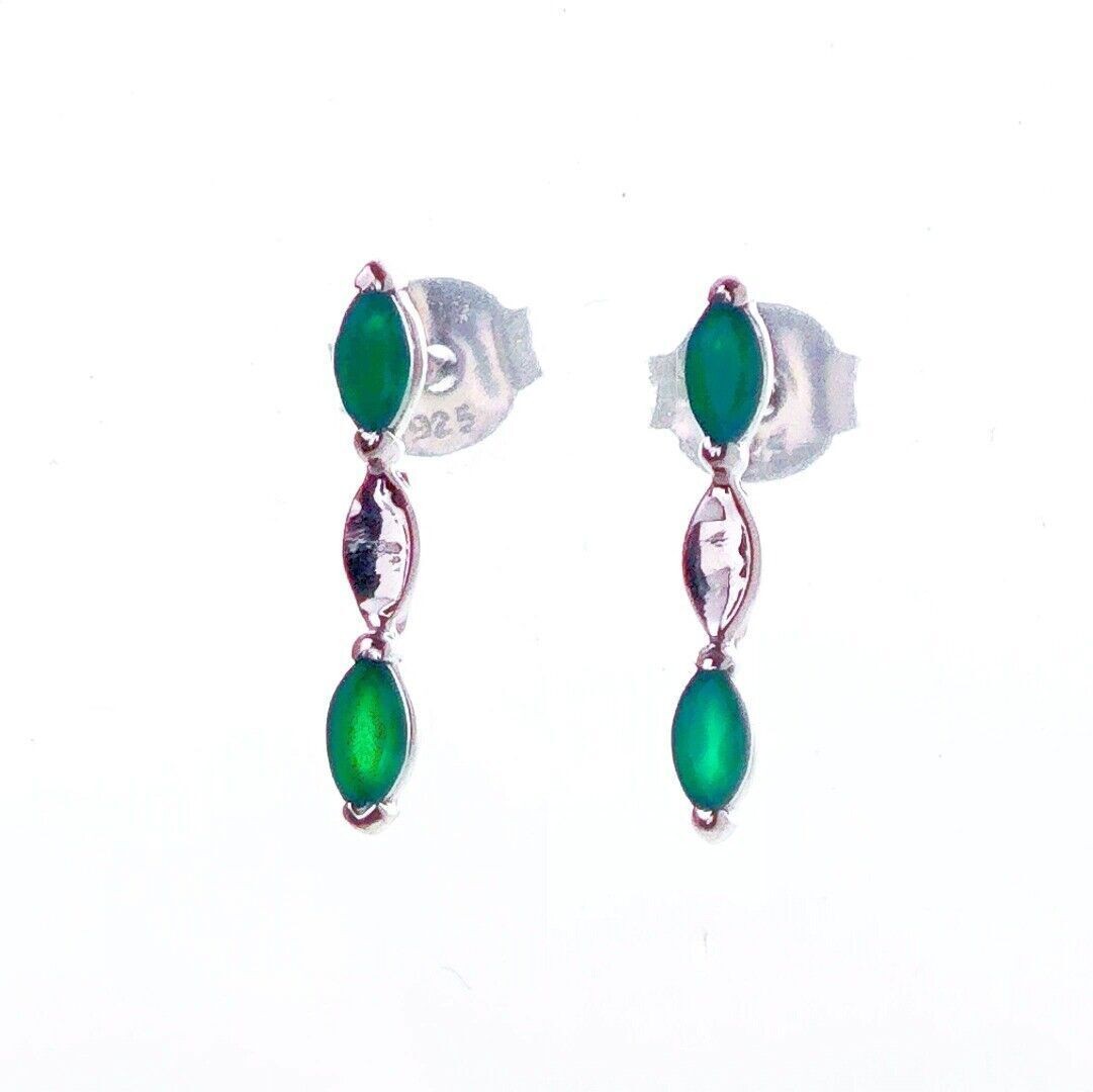 Onyx Green Earrings Sterling Silver Studs Infinity Marquise