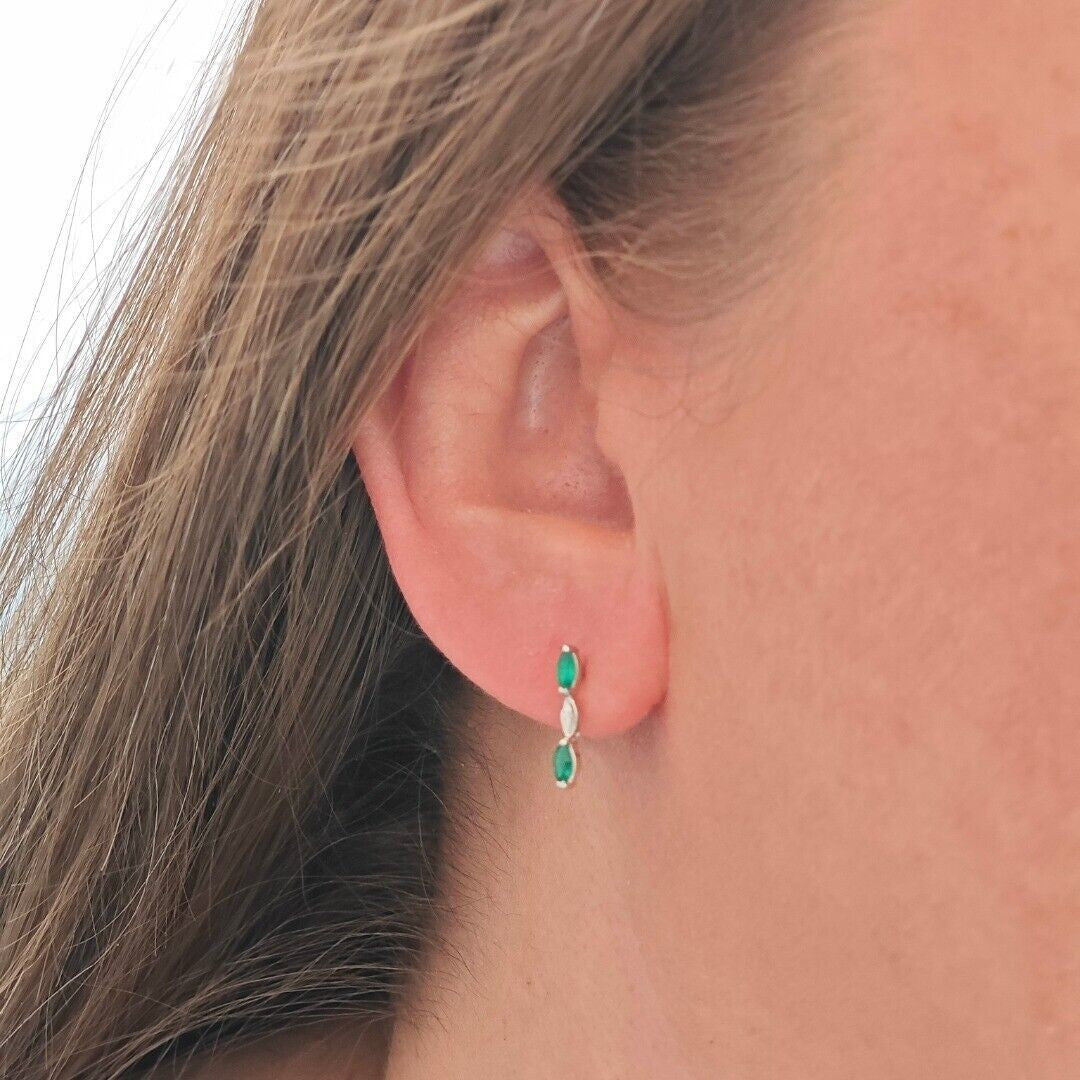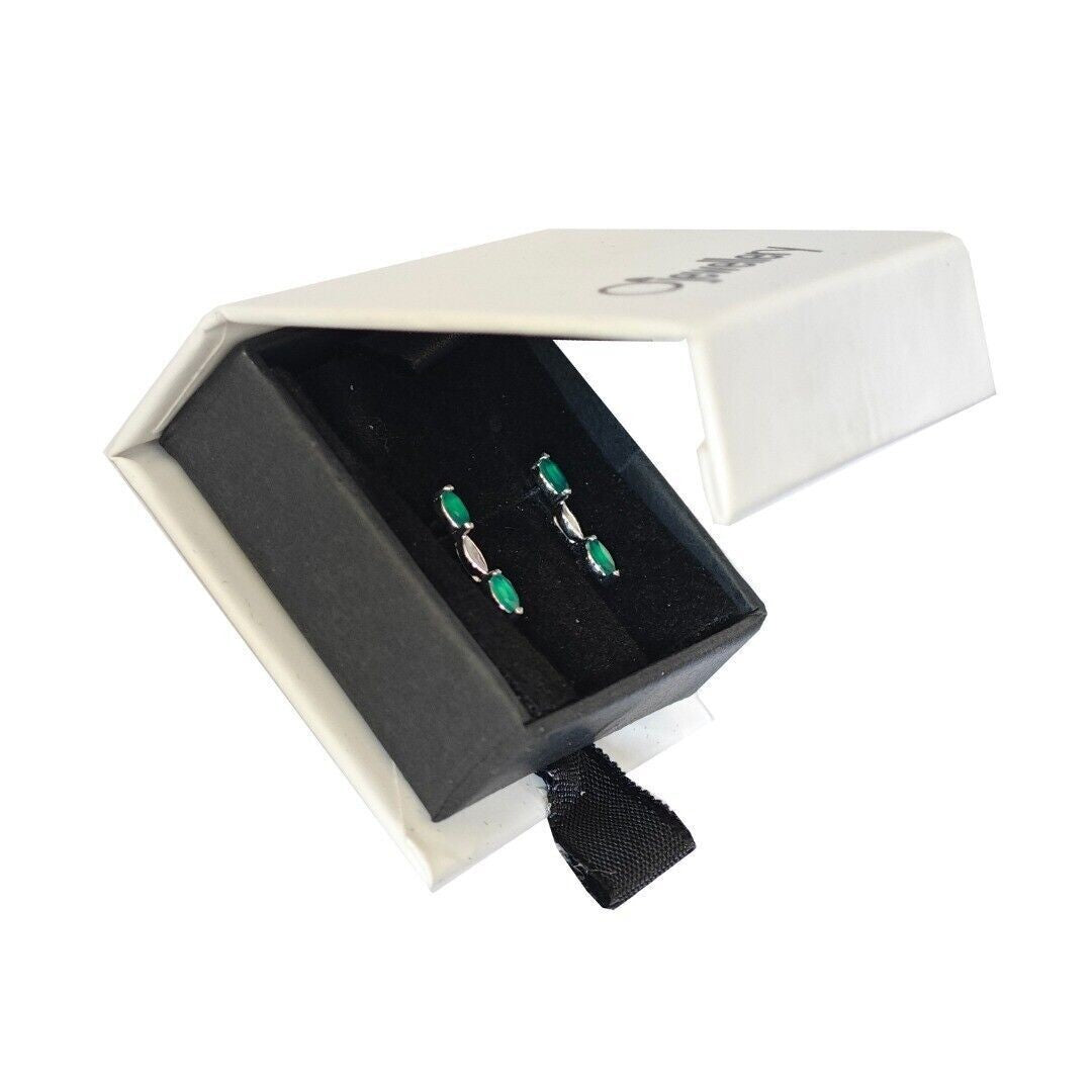 These exquisite earrings from Ojewellery are the perfect gift for any occasion, whether it's for a loved one's birthday, graduation, or engagement. The studs are made of sterling silver and adorned with four natural green onyx gemstones in a marquise shape. The onyx is dyed Emerald green for an elegant, accessible natural Emerald gemstone alternative. The closure of the earrings is butterfly-shaped and the earrings sit comfortably on the ear lobe. The earrings are handmade and signed with the Ojewellery ring logo. They come with a seller warranty and a brief message can be included in the informational card that is attached to the included gift bag. These earrings are a stunning addition to any jewellery collection and are sure to be cherished by the recipient.