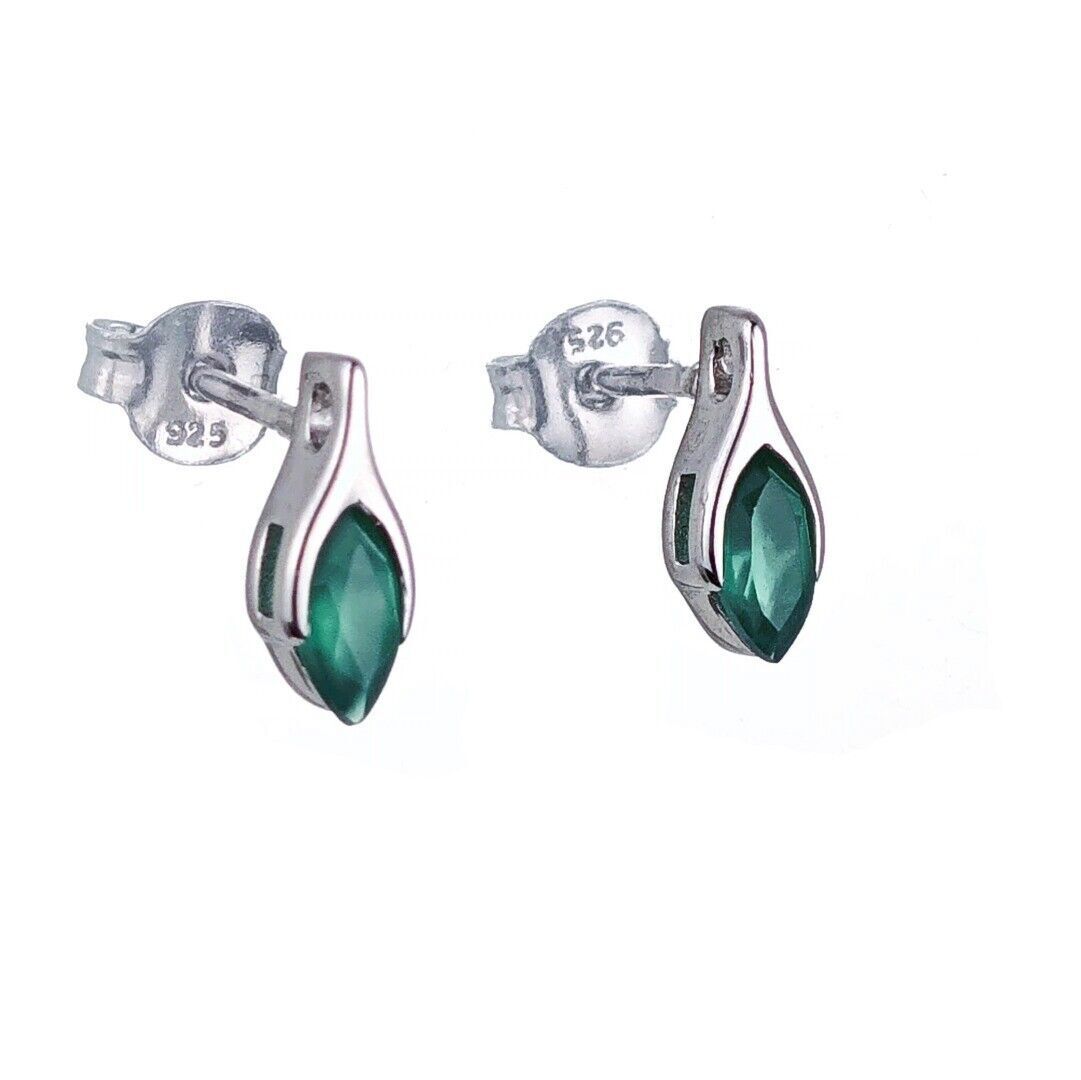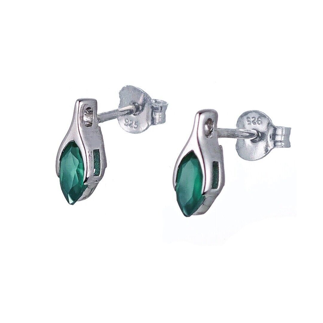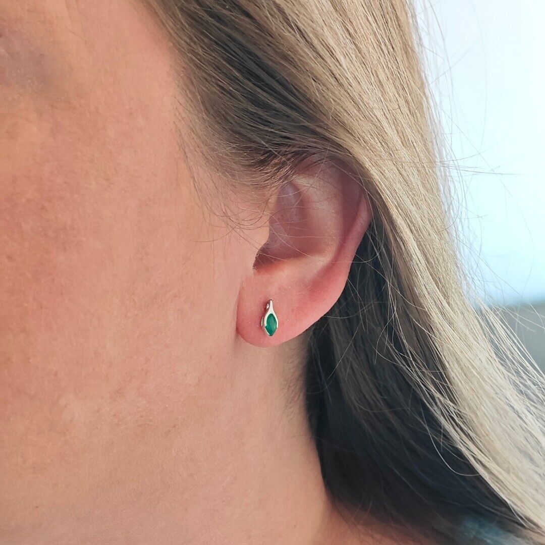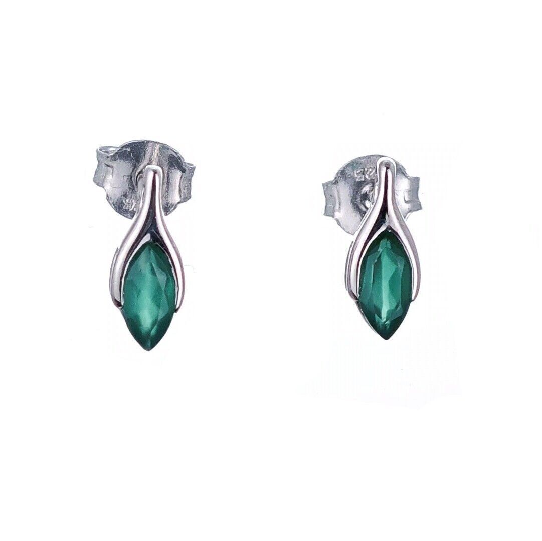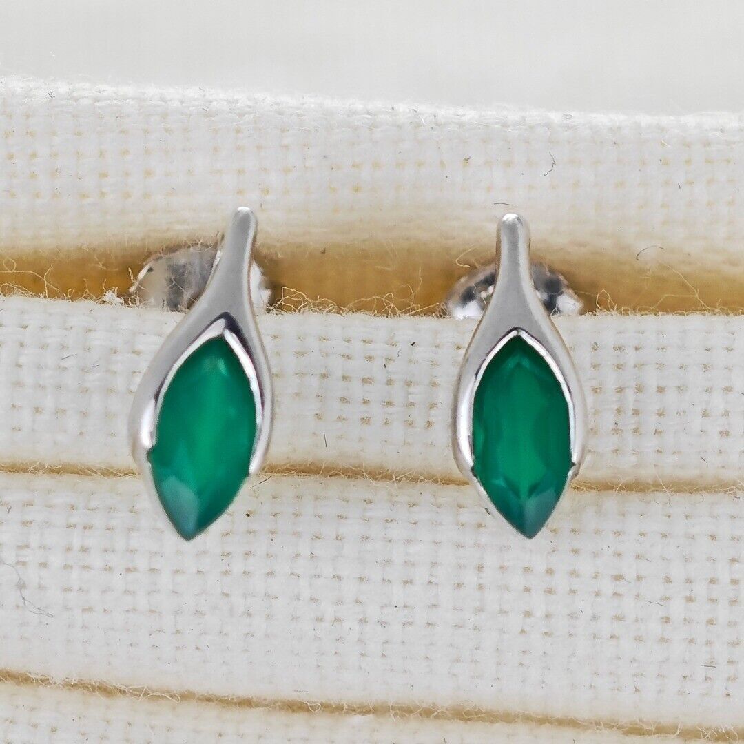 Onyx Green Earrings Sterling Silver Studs Minimalist Marquise