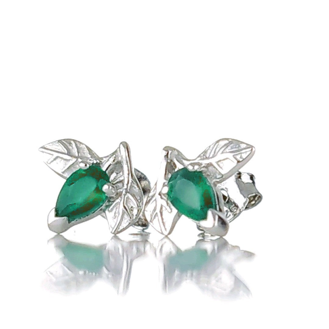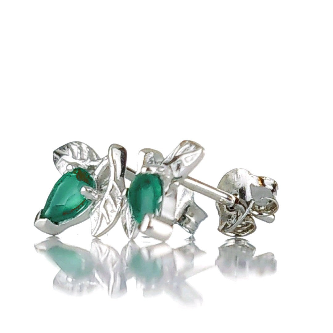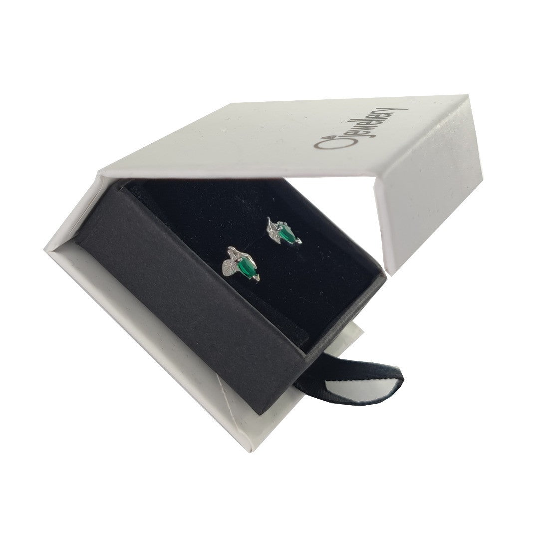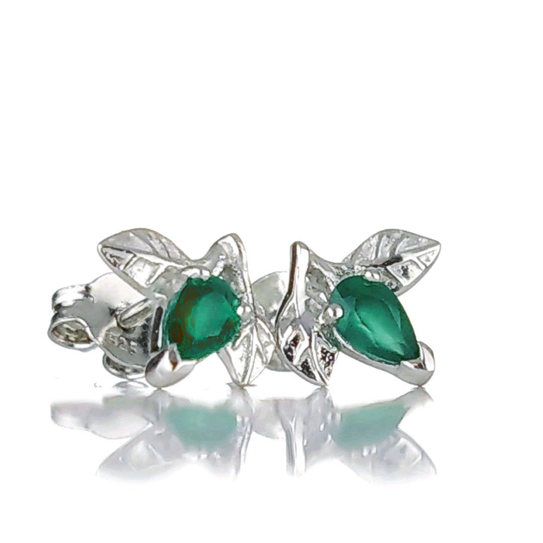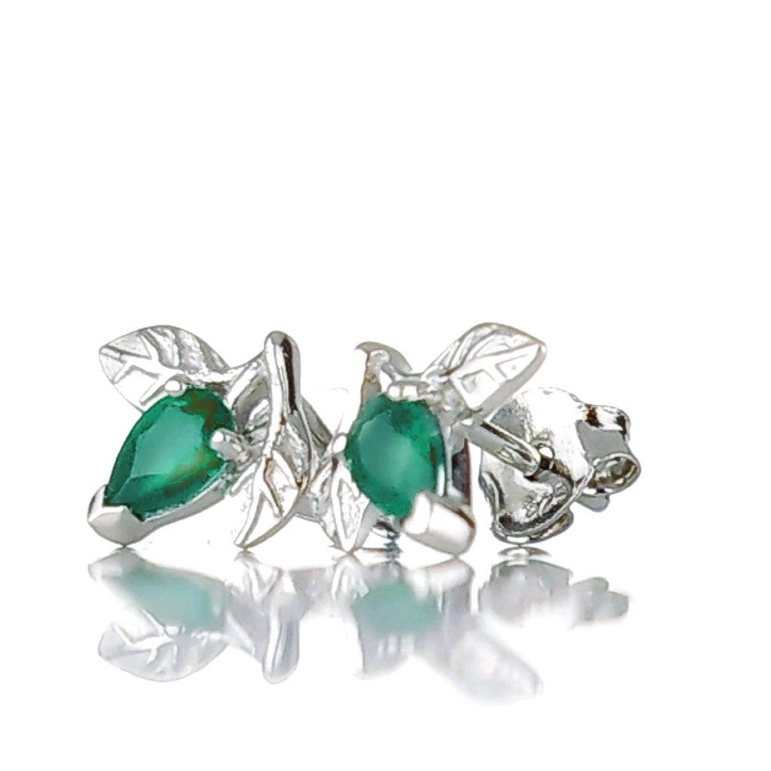 Onyx Green Earrings Sterling Silver Leaf Studs May Birthstone