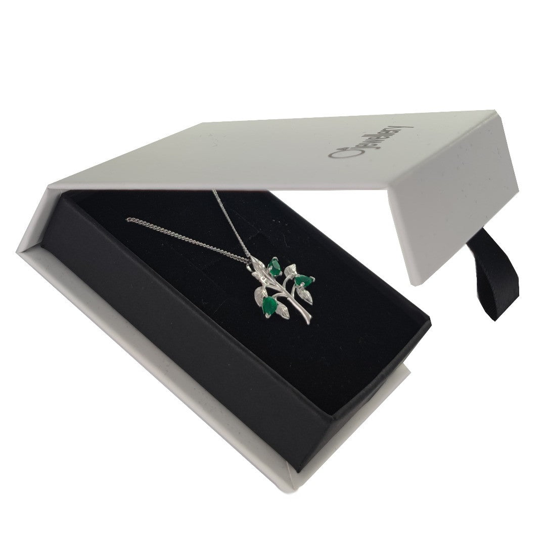 NecklaceElegant Tree of Life trilogy stone pendant set with three natural indian green onyx. The three onyx are 3mm x 5mm