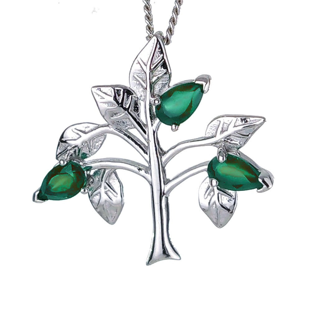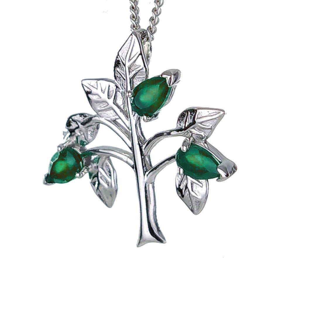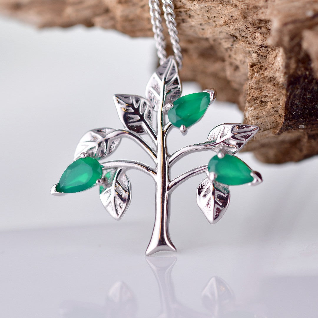Onyx Green Necklace Tree of Life Pendant Sterling Silver May birthstone