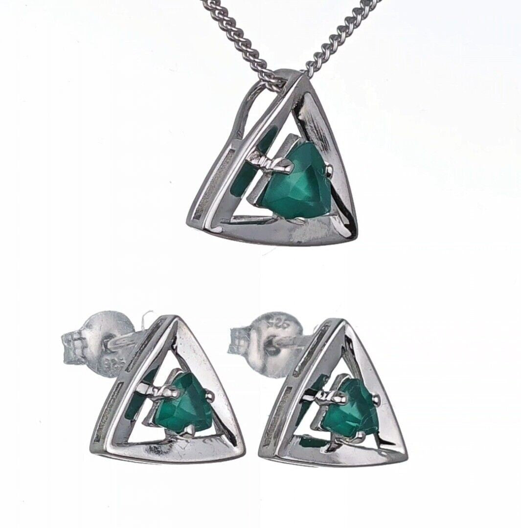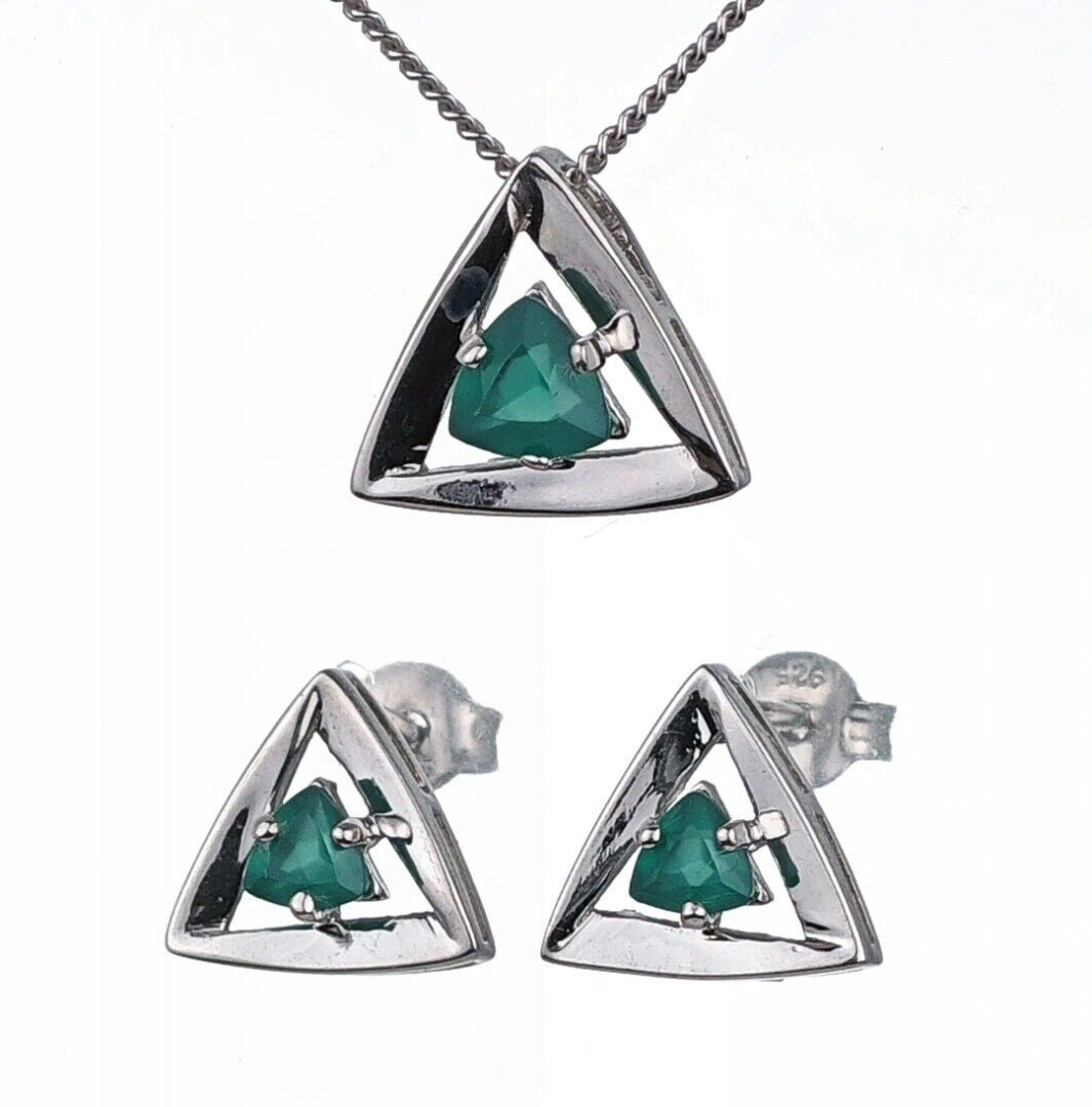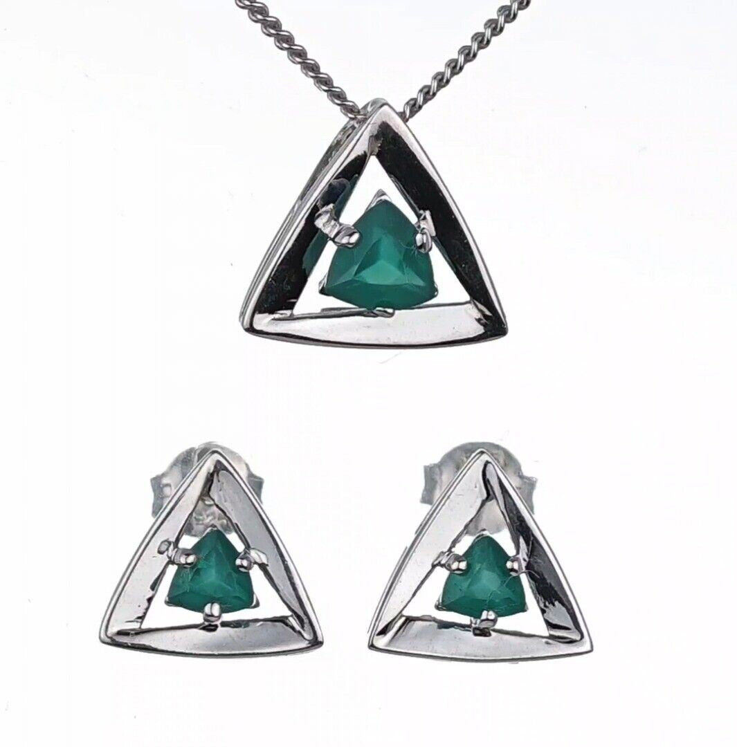 Onyx Green Set Necklace Earrings Sterling Silver Studs Trillion