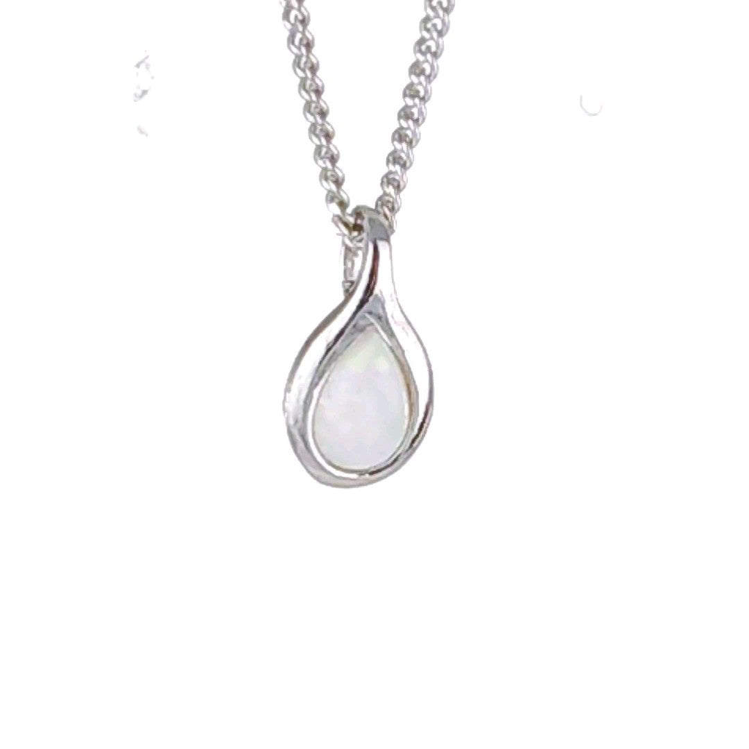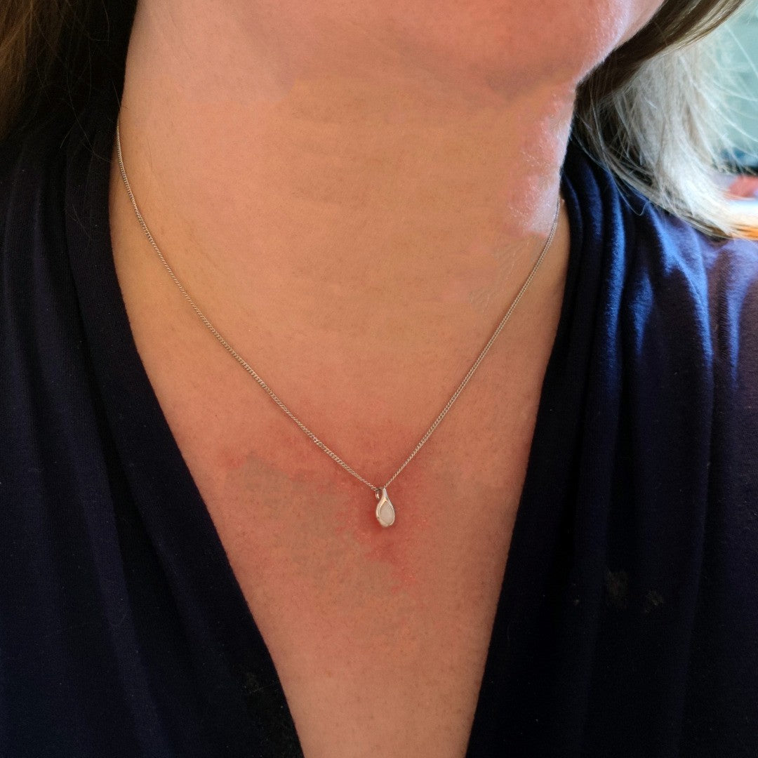 Elegant opal necklace. Natural Australian milky white pear opal 6mm long by 4mm in a rubover setting
