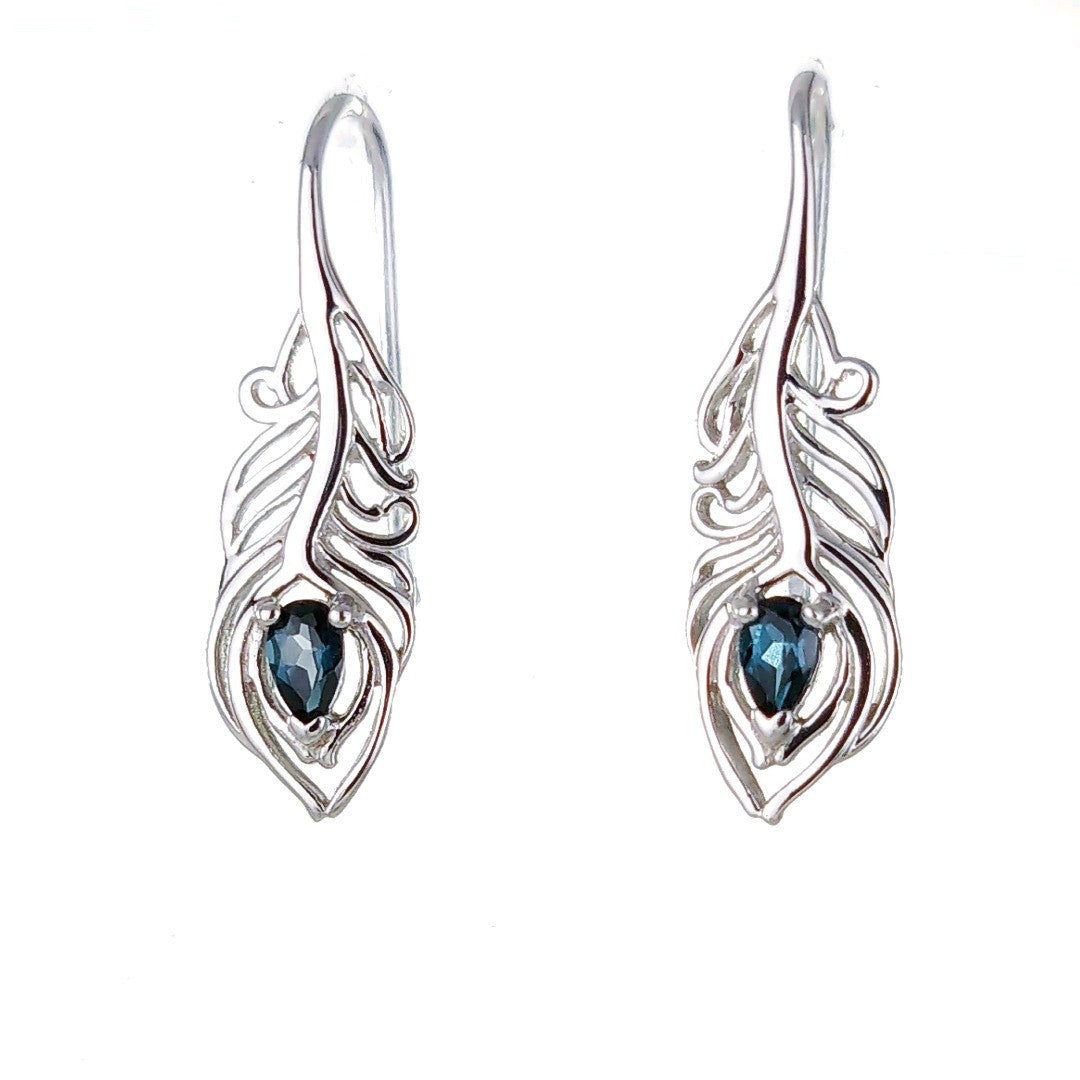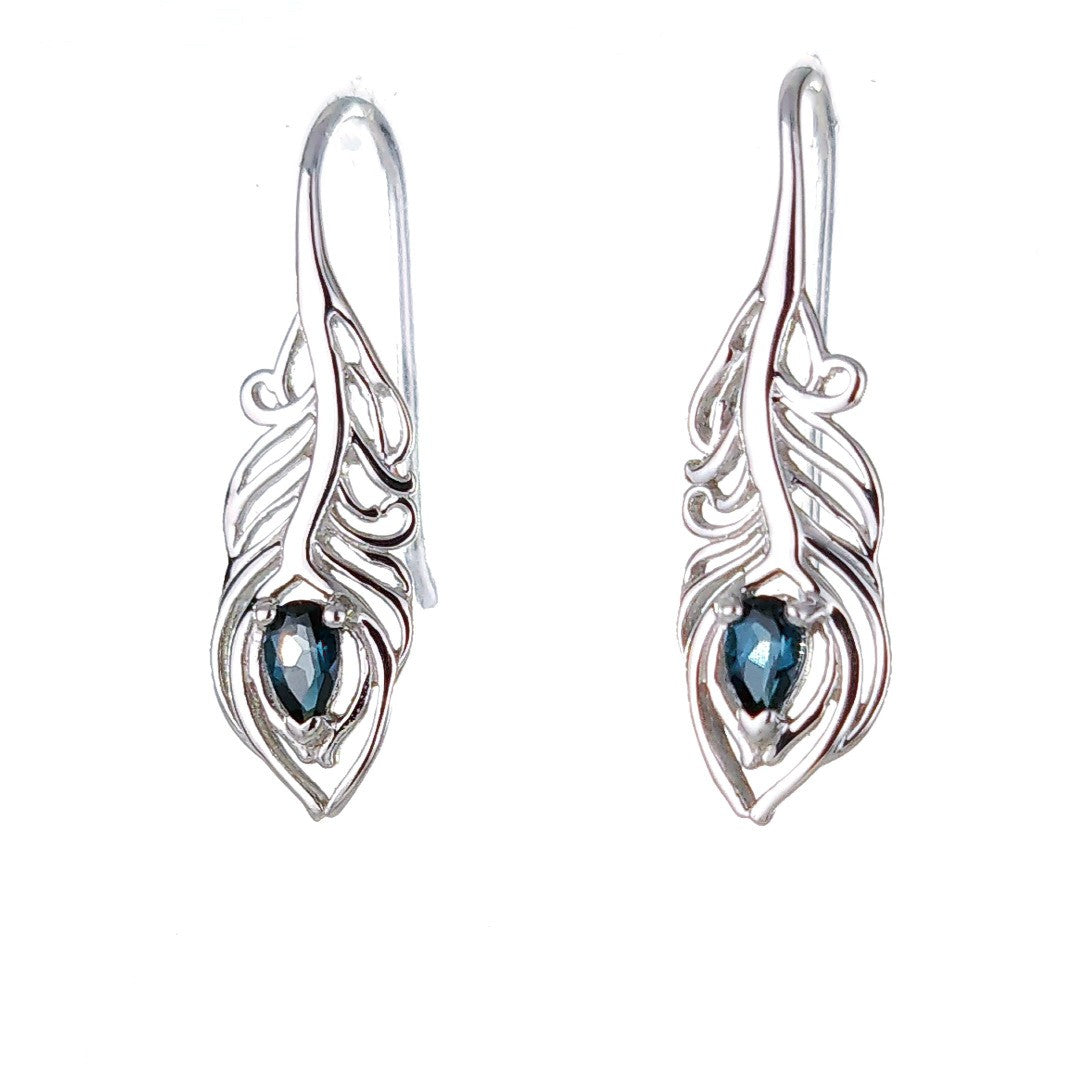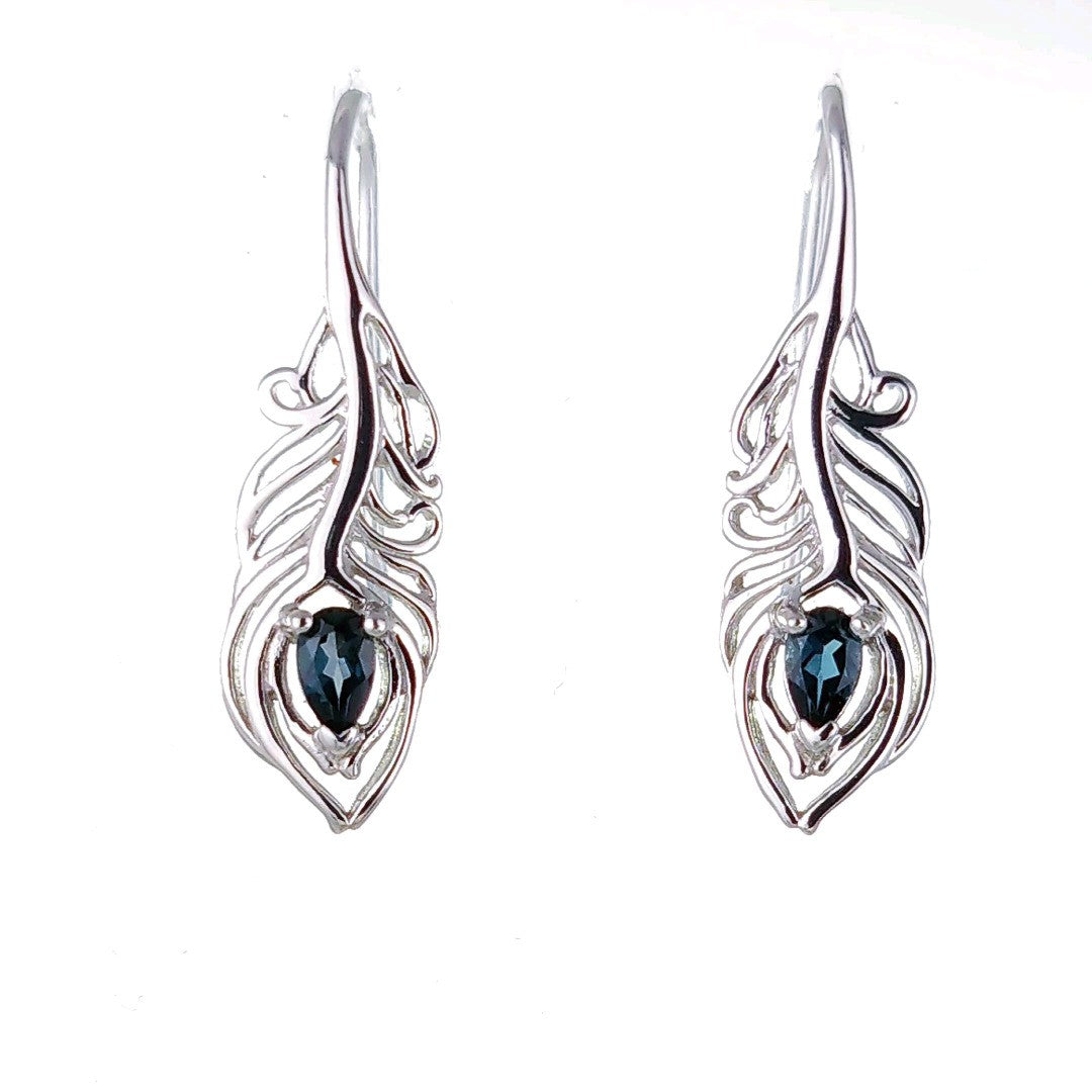 Peacock Feather Earrings Sterling Silver London Blue Topaz December Birthstone