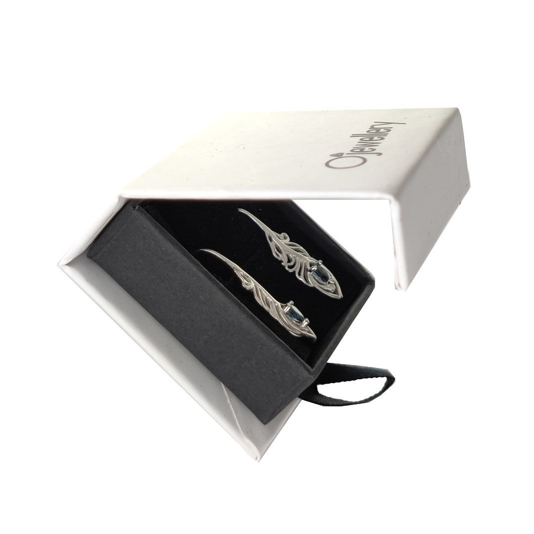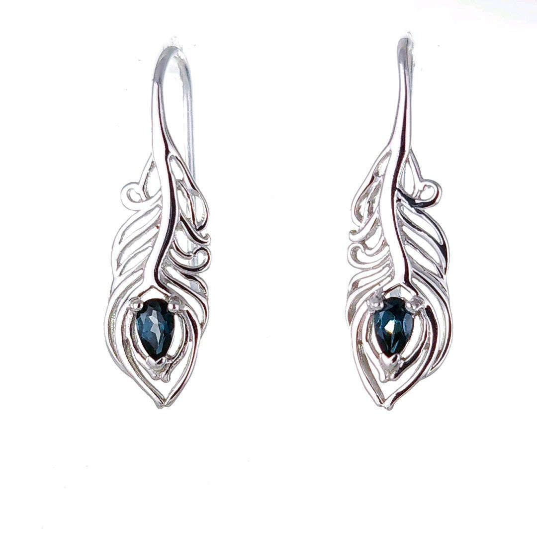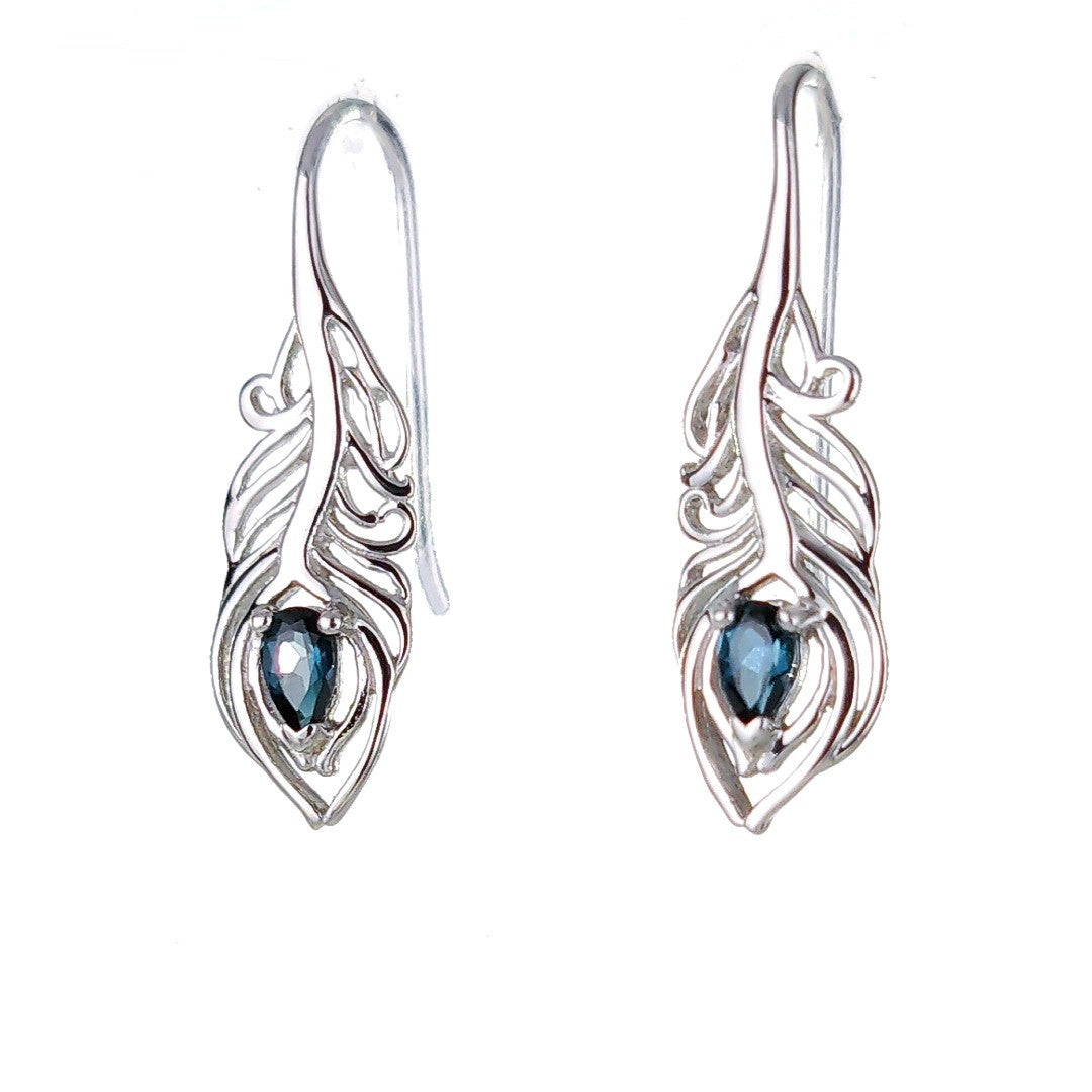 Peacock Feather Earrings Sterling Silver London Blue Topaz December Birthstone