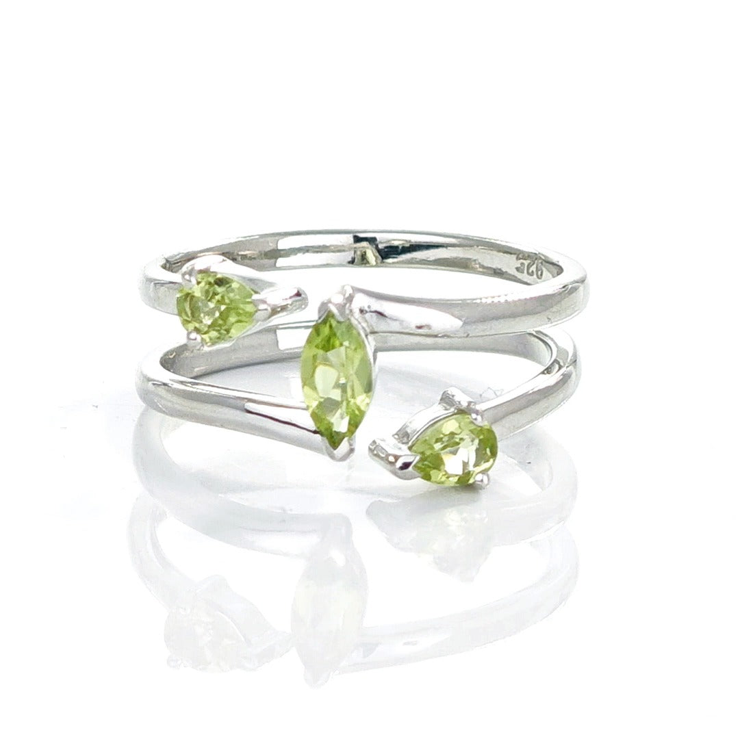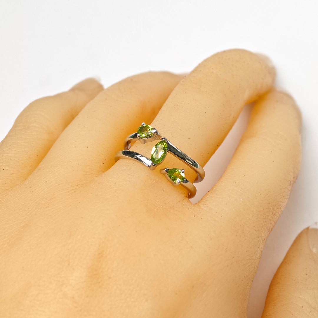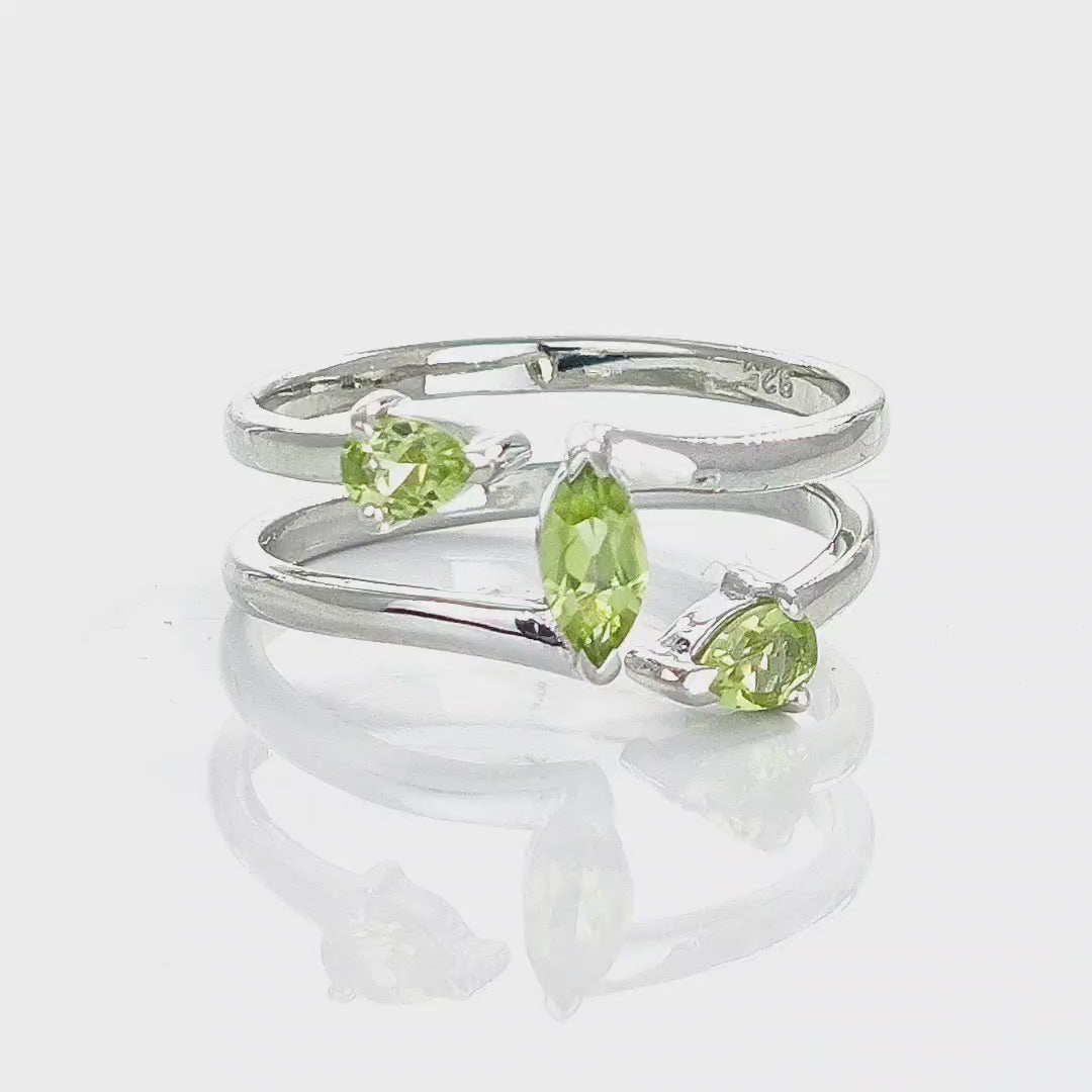 Peridot Ring Sterling Silver Adjustable Marquise Trilogy