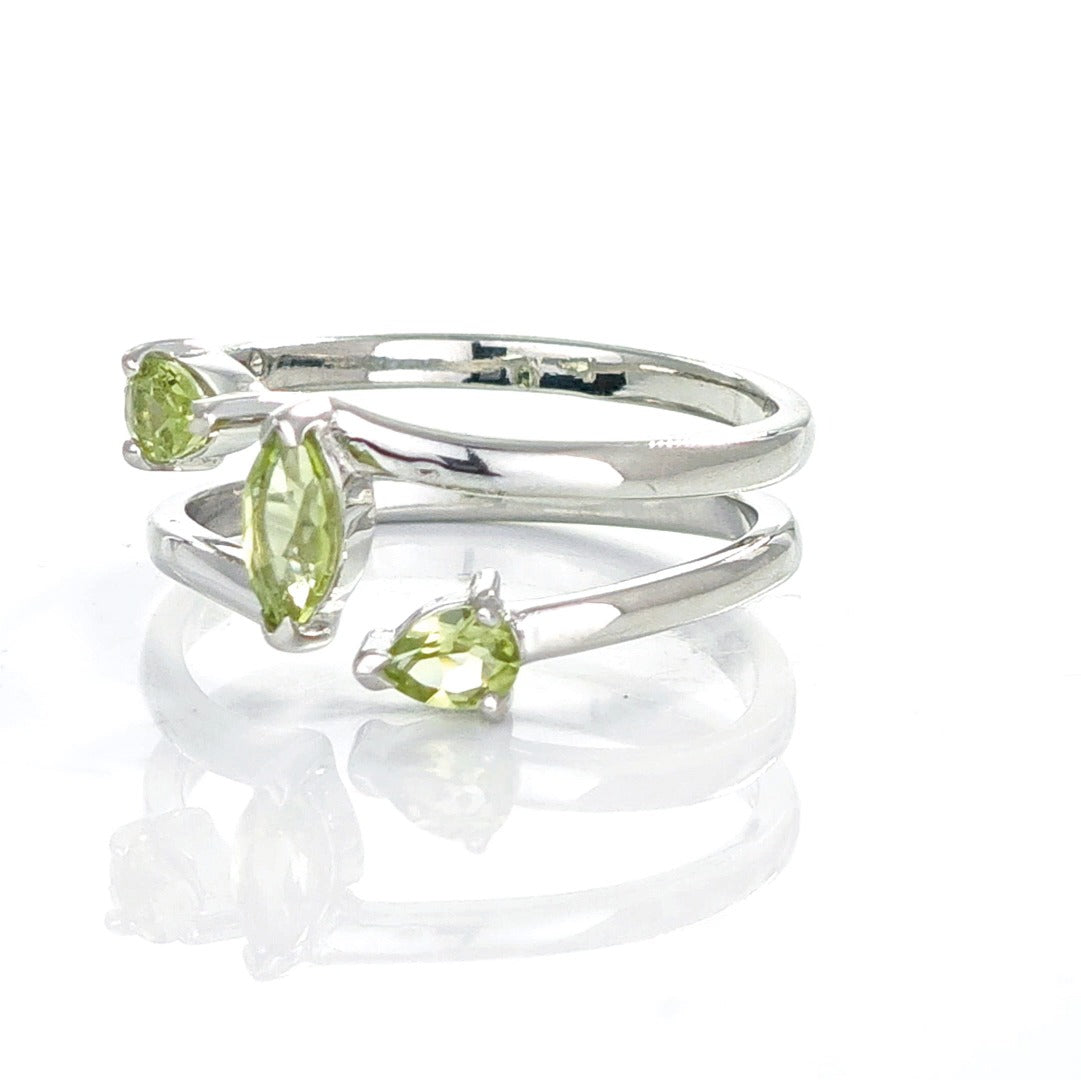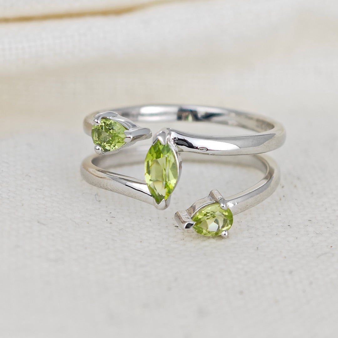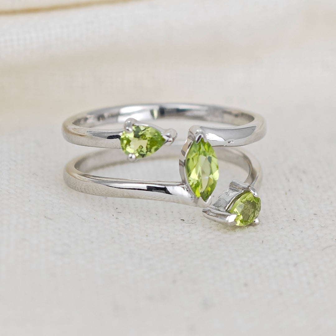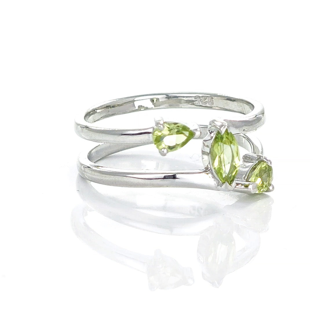 Peridot Ring Sterling Silver Adjustable Marquise Trilogy
