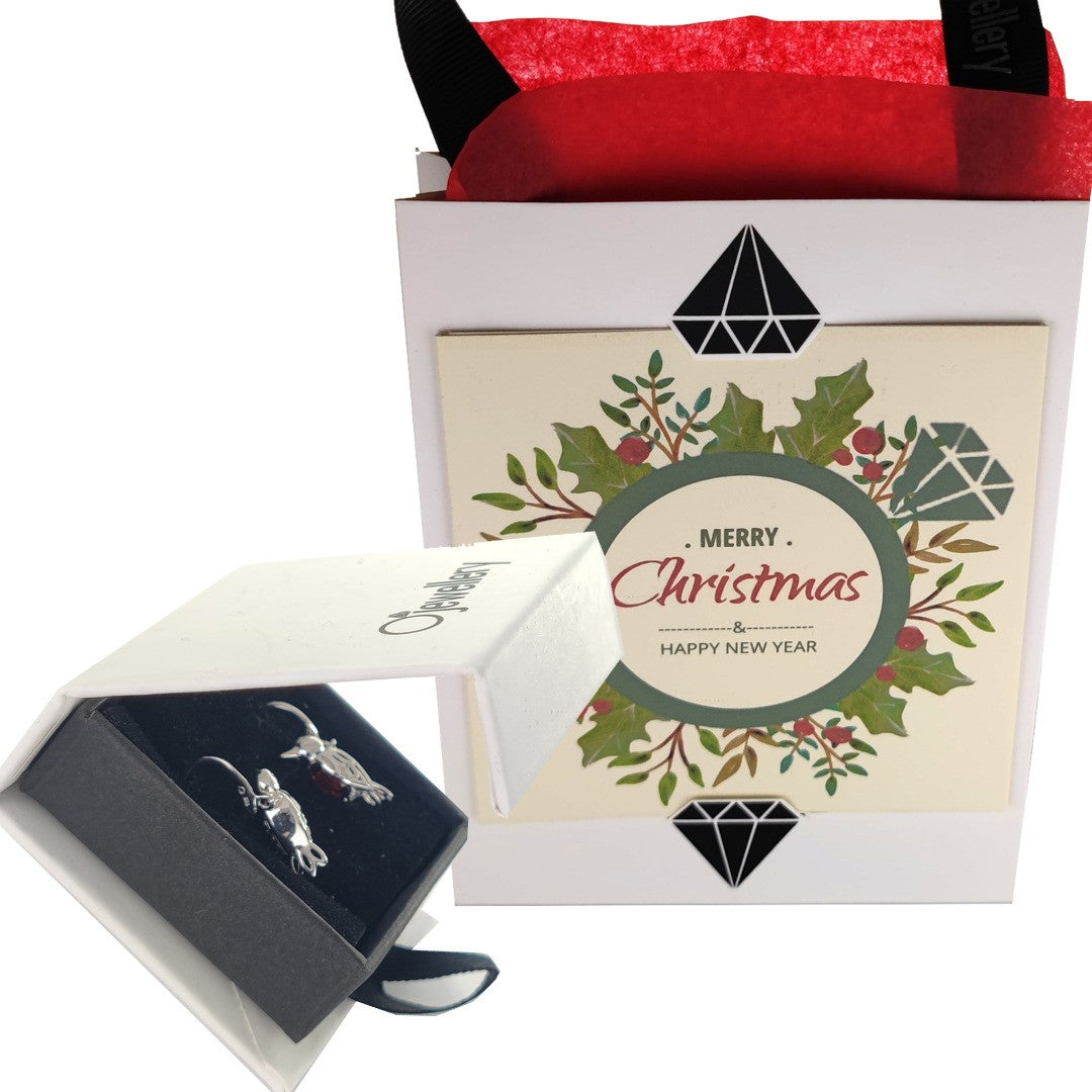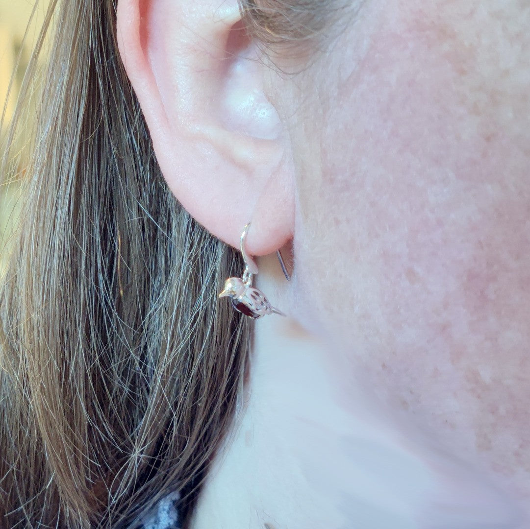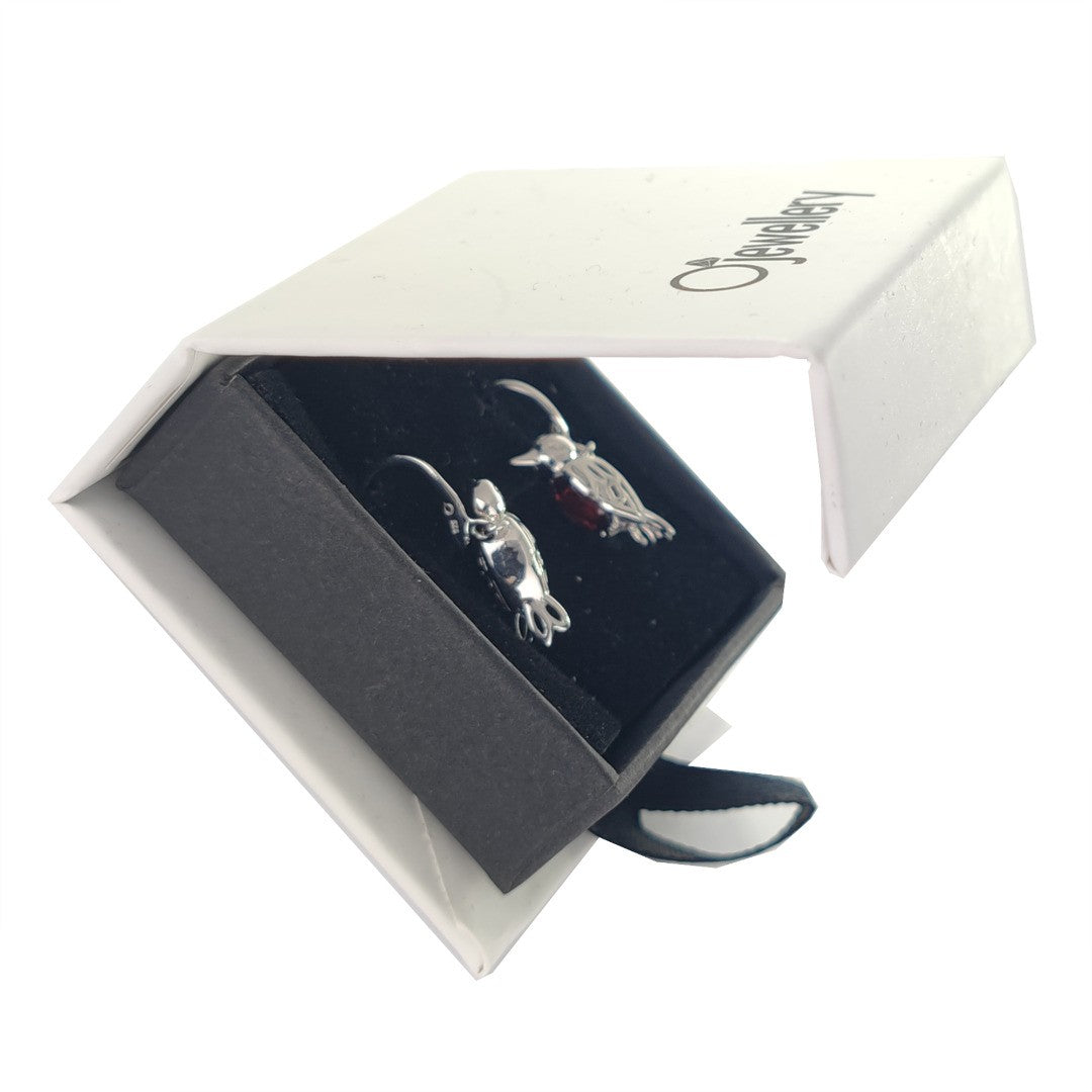 Robin Red Breast Earrings Sterling Silver Real Garnet Dangle Personalised Christmas Gift January Birthstone