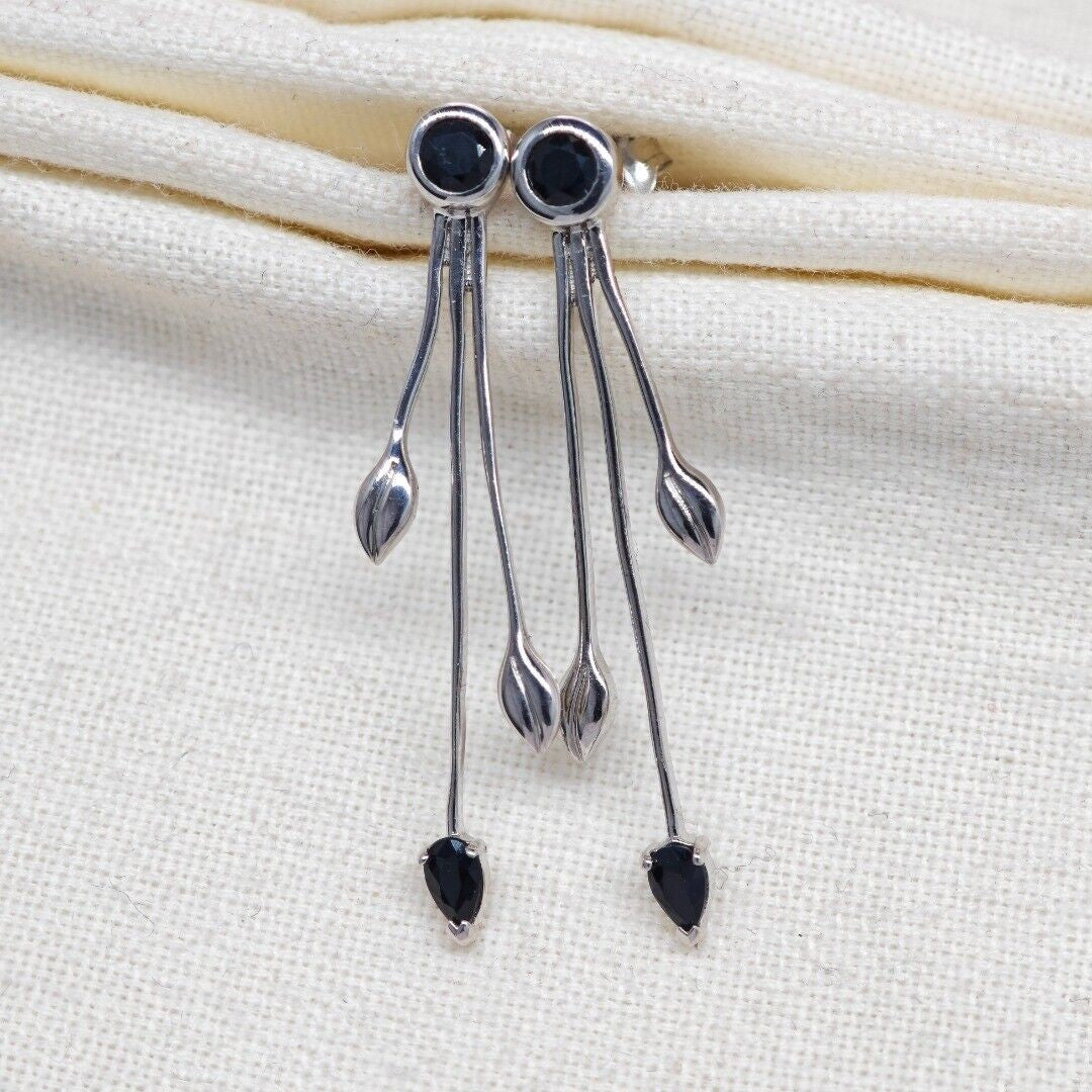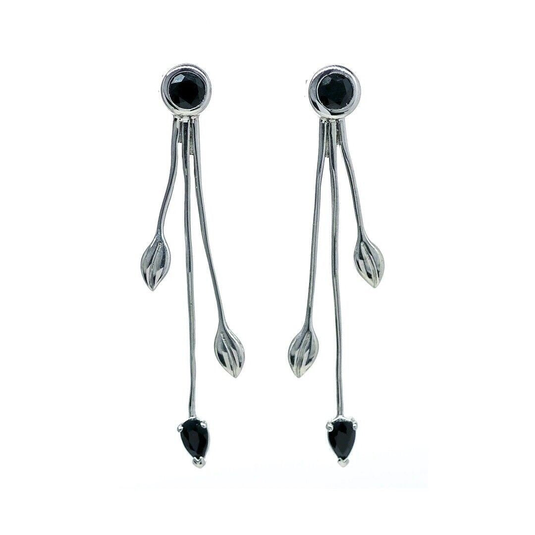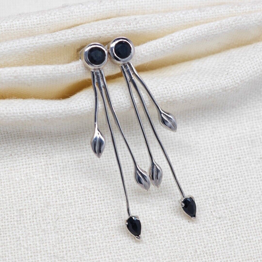 Sapphire Dangle Earrings Leaf Motif Natural Blue Gemstones Butterfly