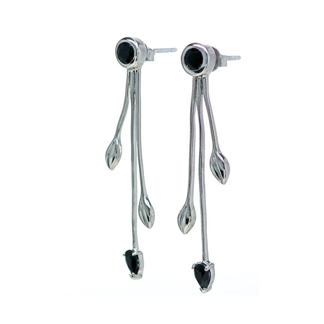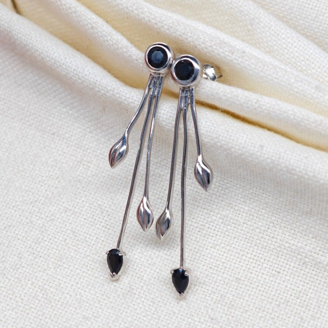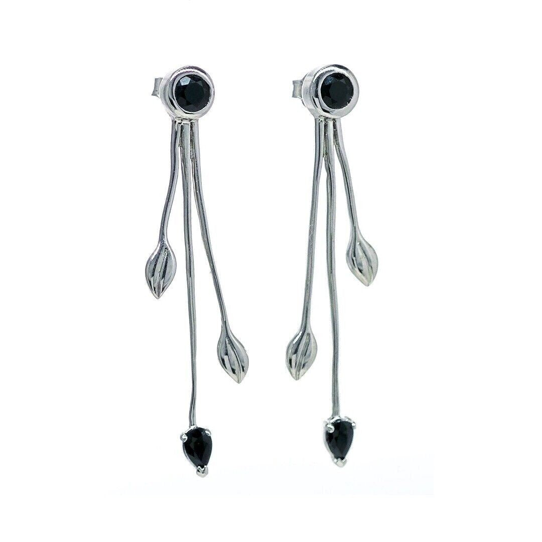 Sapphire Dangle Earrings Leaf Motif Natural Blue Gemstones Butterfly
