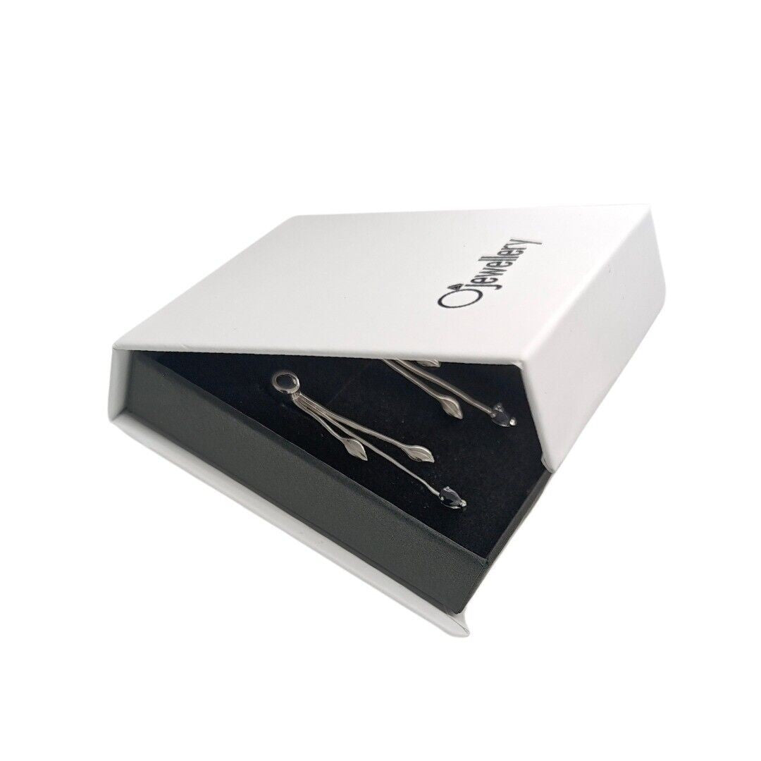 Your sapphire leaf dangle earrings arrive nestled in a beautiful Ojewellery gift box with a ribbon-handled gift bag, making them an ideal gift for a loved one or a special treat for yourself. A product information card with space for a personalized message and a jewellery cleaning cloth are also included, ensuring your earrings stay radiant.