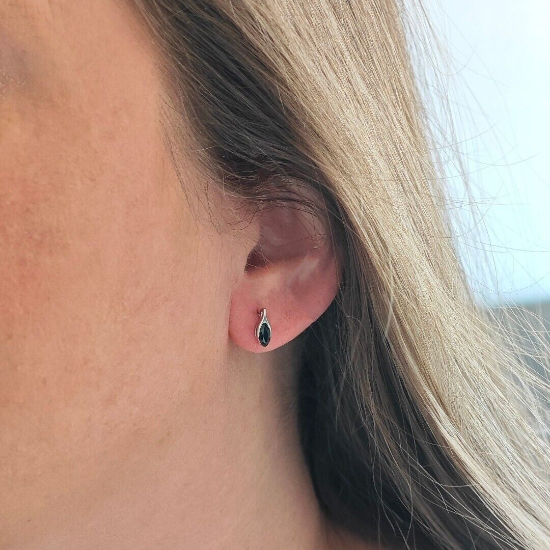 Sapphire Earrings Sterling Silver SMALL Solitaire Studs Minimalist Marquise