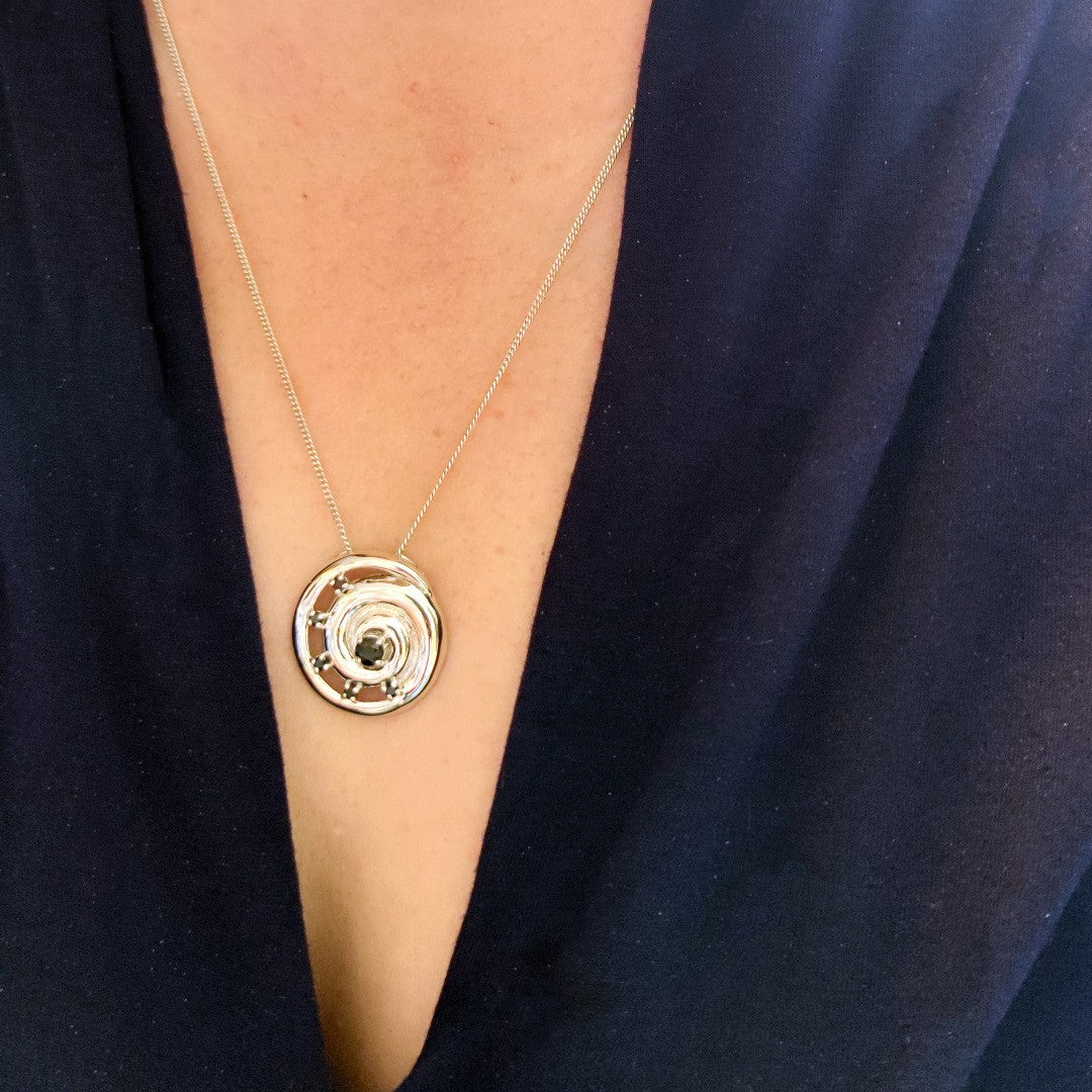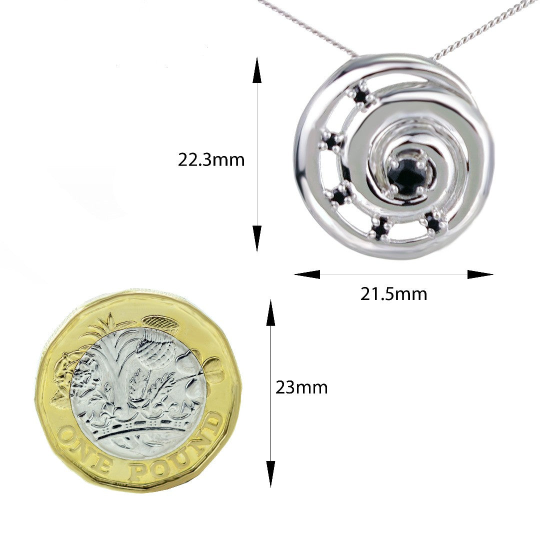 It is supplied on a 22 inch sterling silver chain with additional fixing loops at 18 and 20. Both the pendant and chain are finished with a commercial grade rhodium plate to give a high quality shine finish.