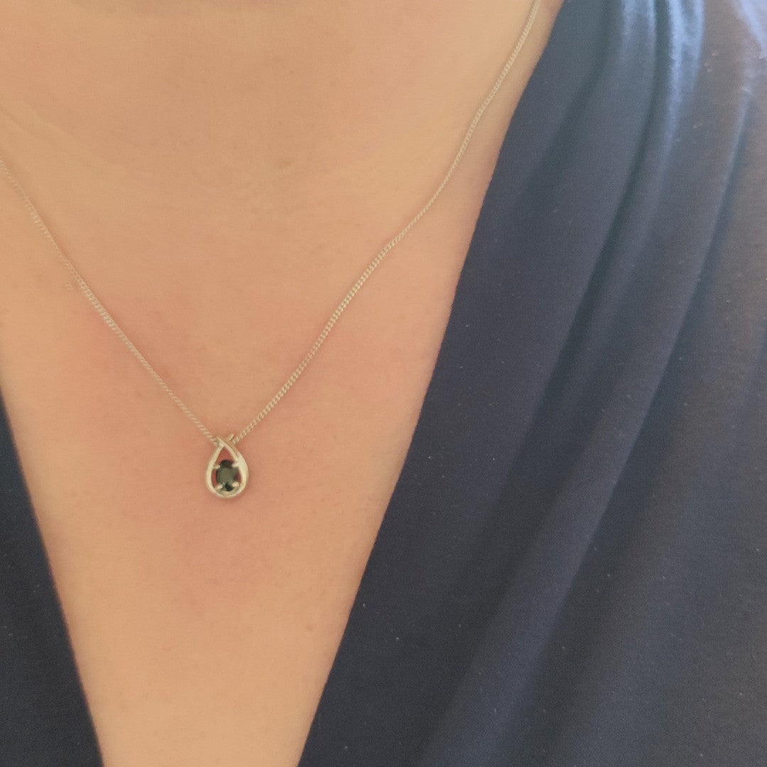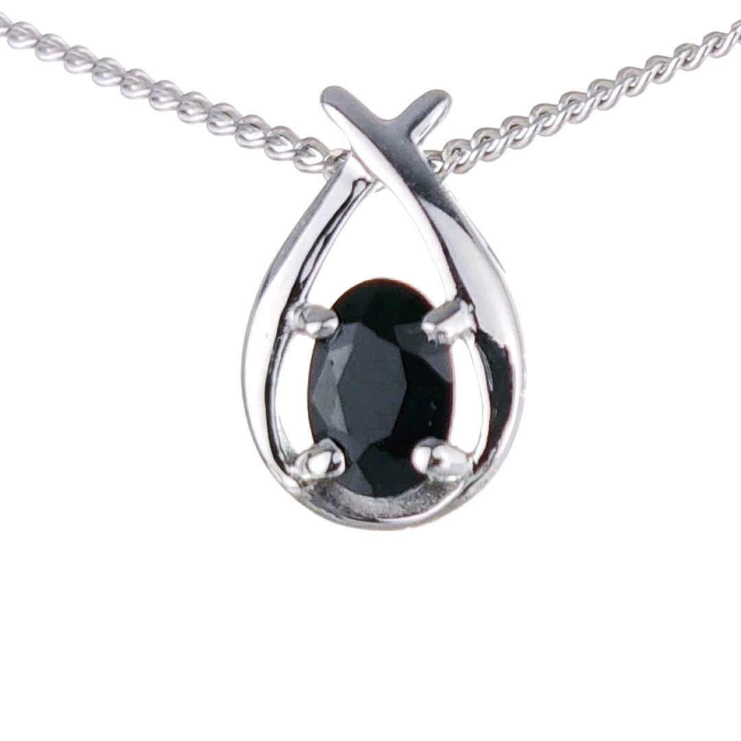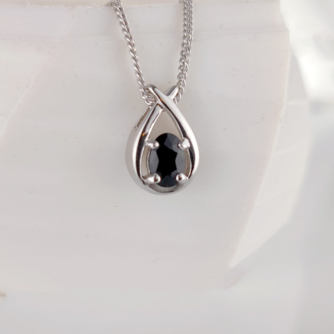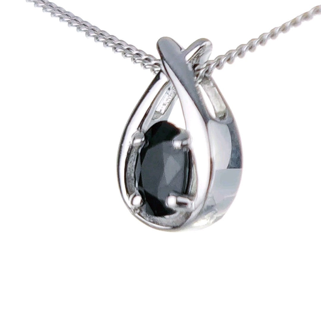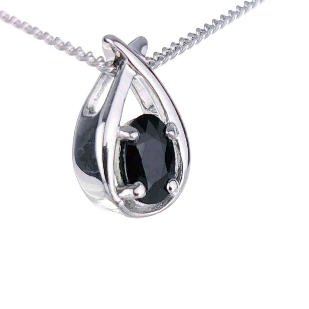 Sapphire Necklace 0.6ct Pear Blue Twist Pendant Silver September Birthstone