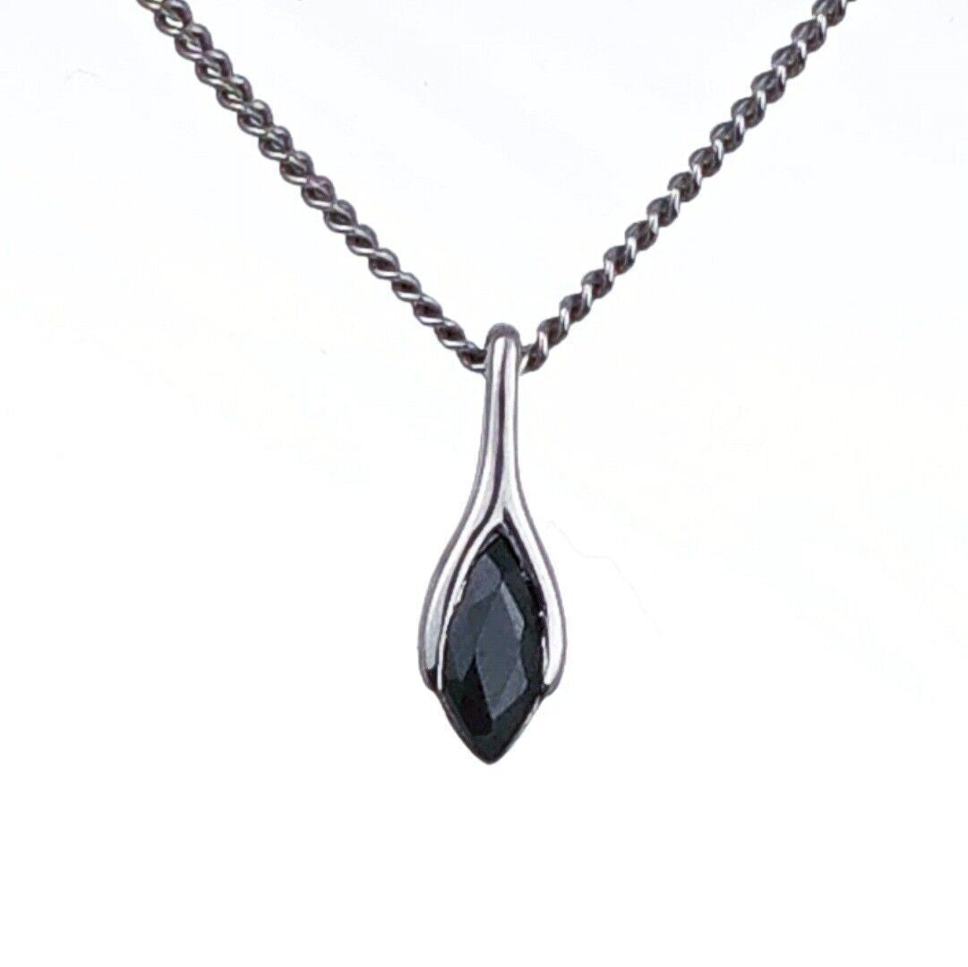 Sapphire Pendant Sterling Silver SMALL Solitaire Minimalist Marquise