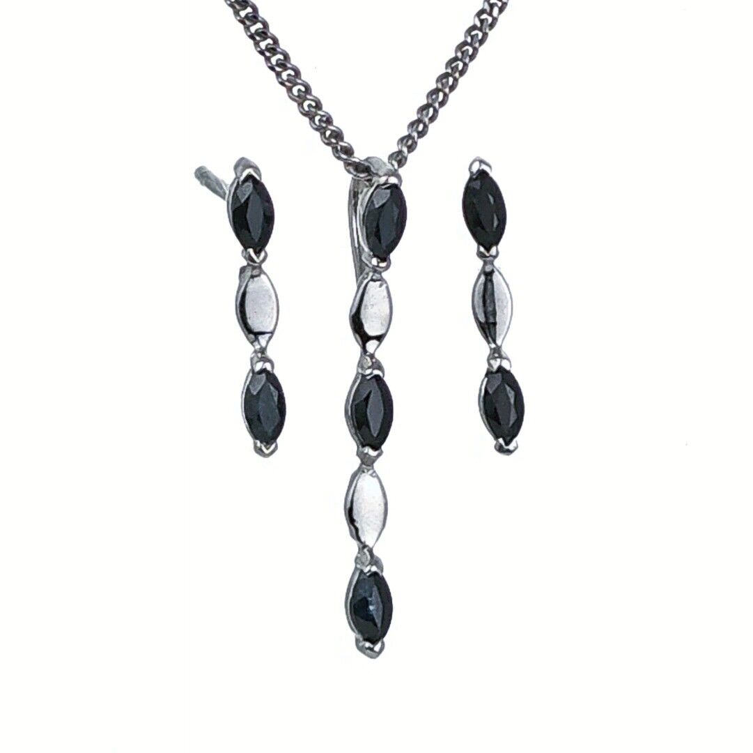 Sapphire Set Pendant Earrings Sterling Silver Marquise Drop