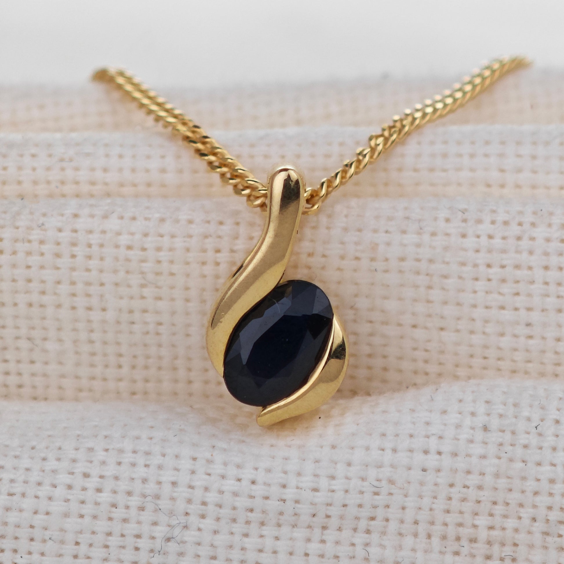 Sapphire Necklace Gold Plated Sterling Silver Inky Blue 0.6ct Natural Gemstone