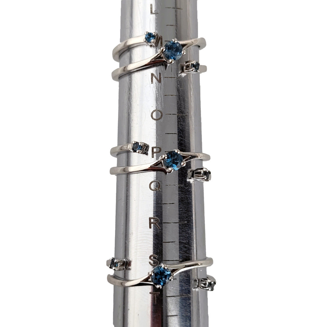 Stone: Natural African blue topaz, Round 1 x 4mm and 2 x 2mm