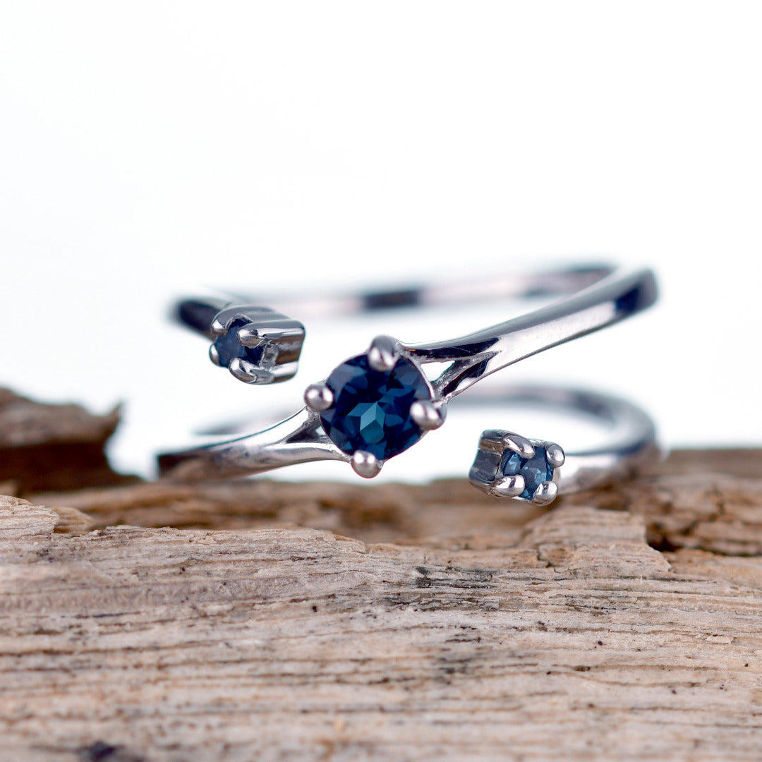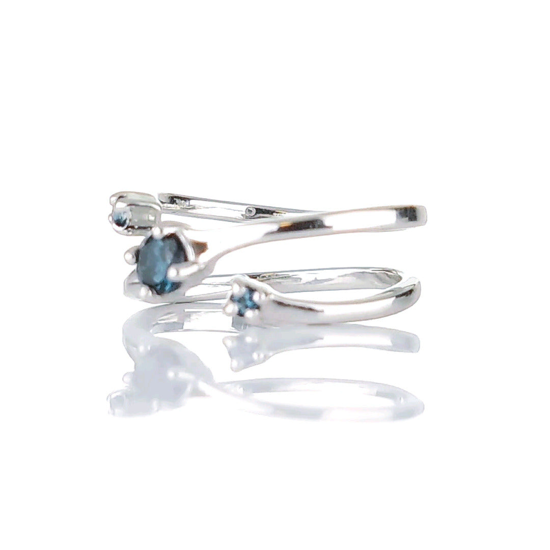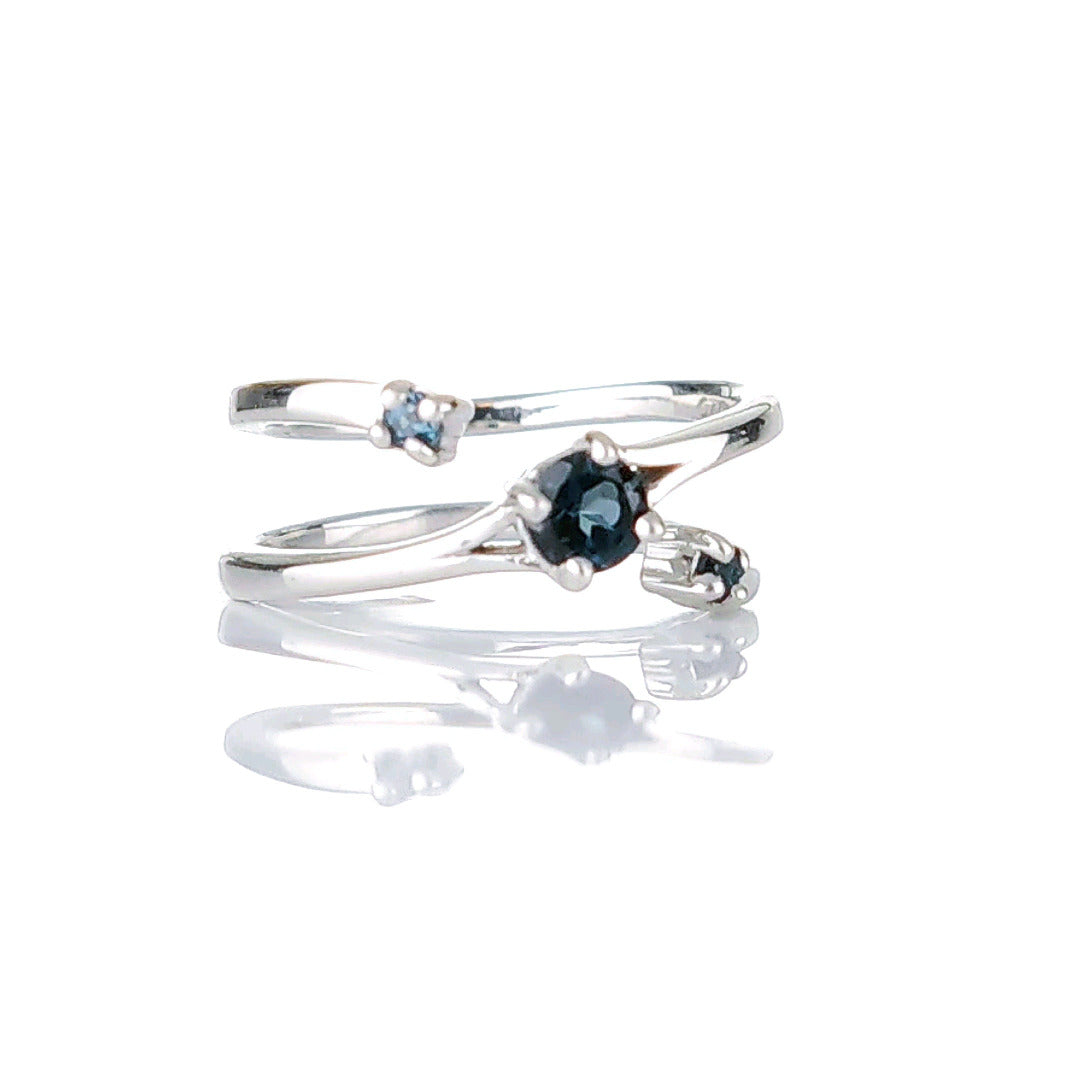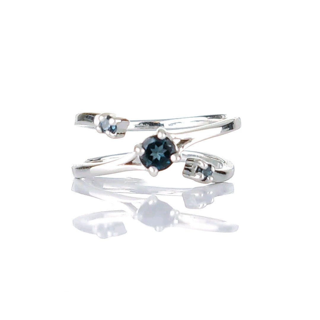Sterling Silver Topaz Trilogy Statement Double Band Ring. Set with three round natural African blue topaz