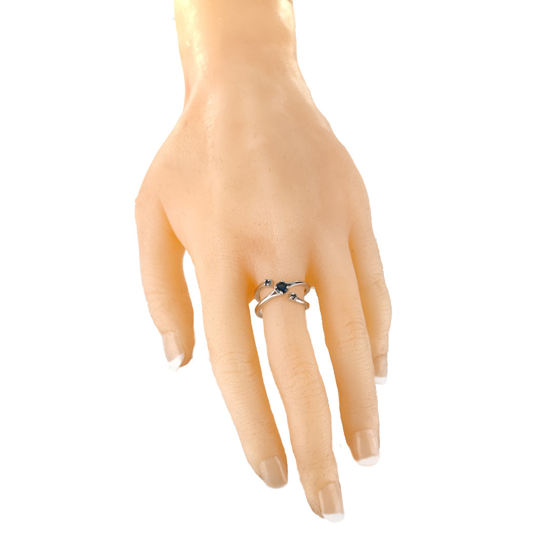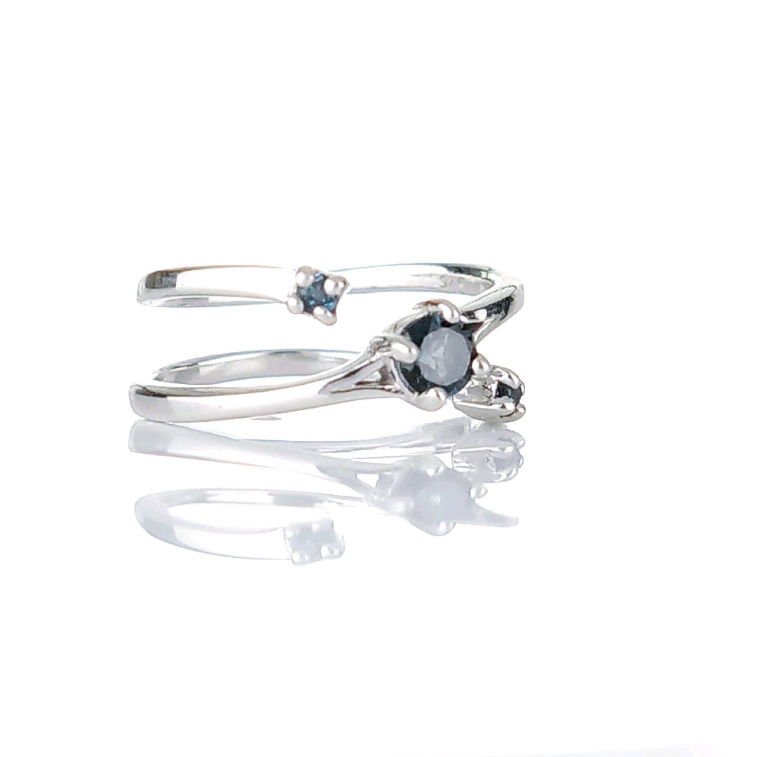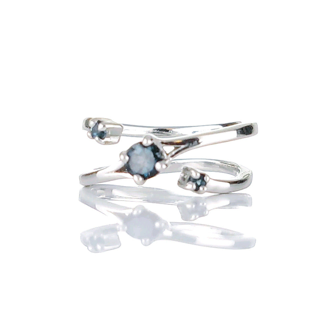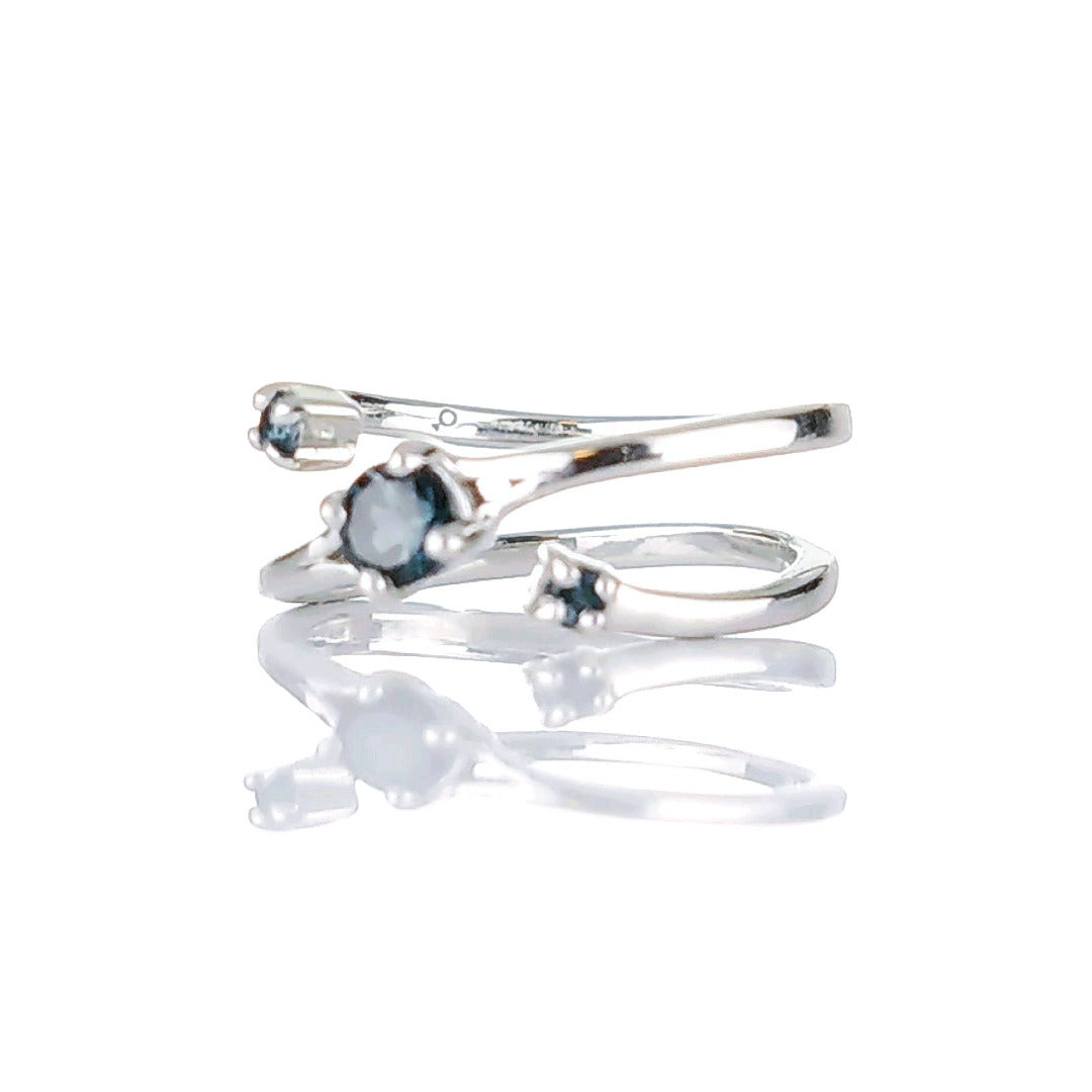 Sterling Silver Topaz Trilogy Statement Double Band Ring. Set with three round natural African blue topaz
