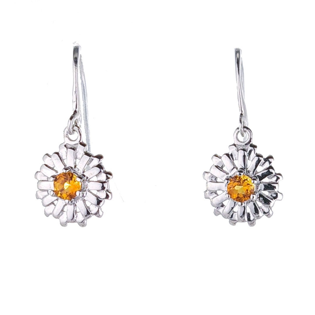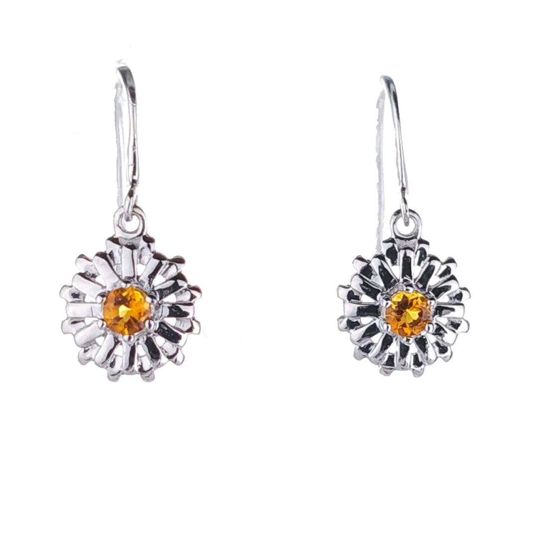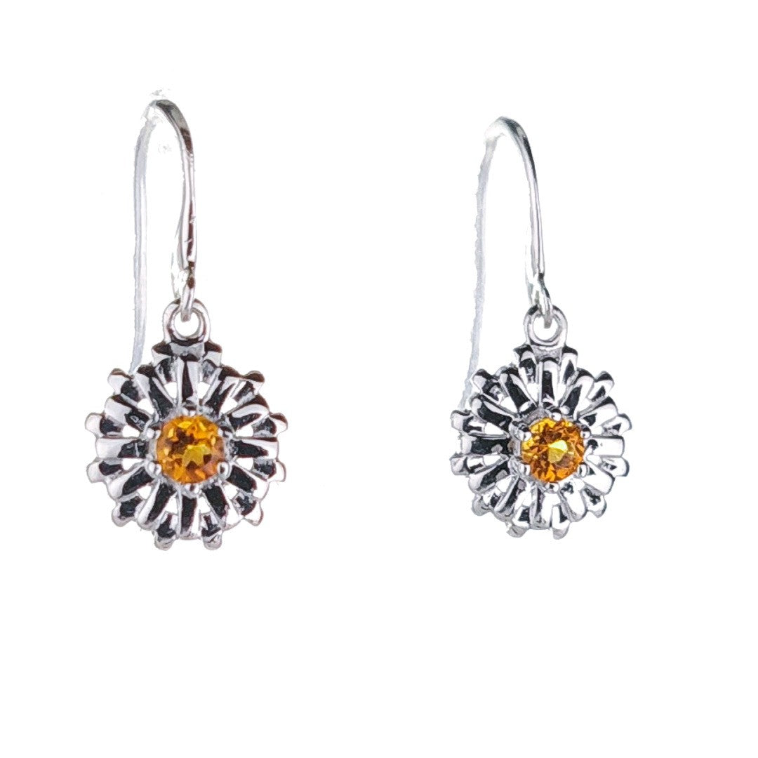Sterling Silver Citrine Sun Earrings Dangle Yellow Hook November Birthstone