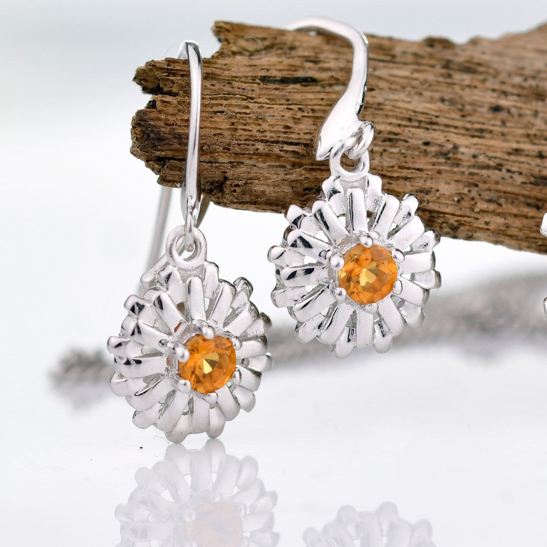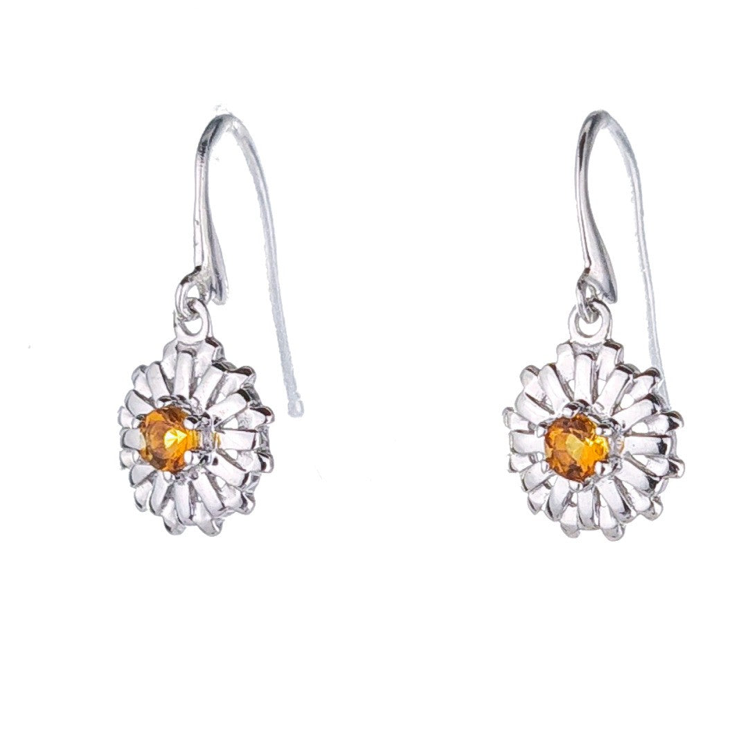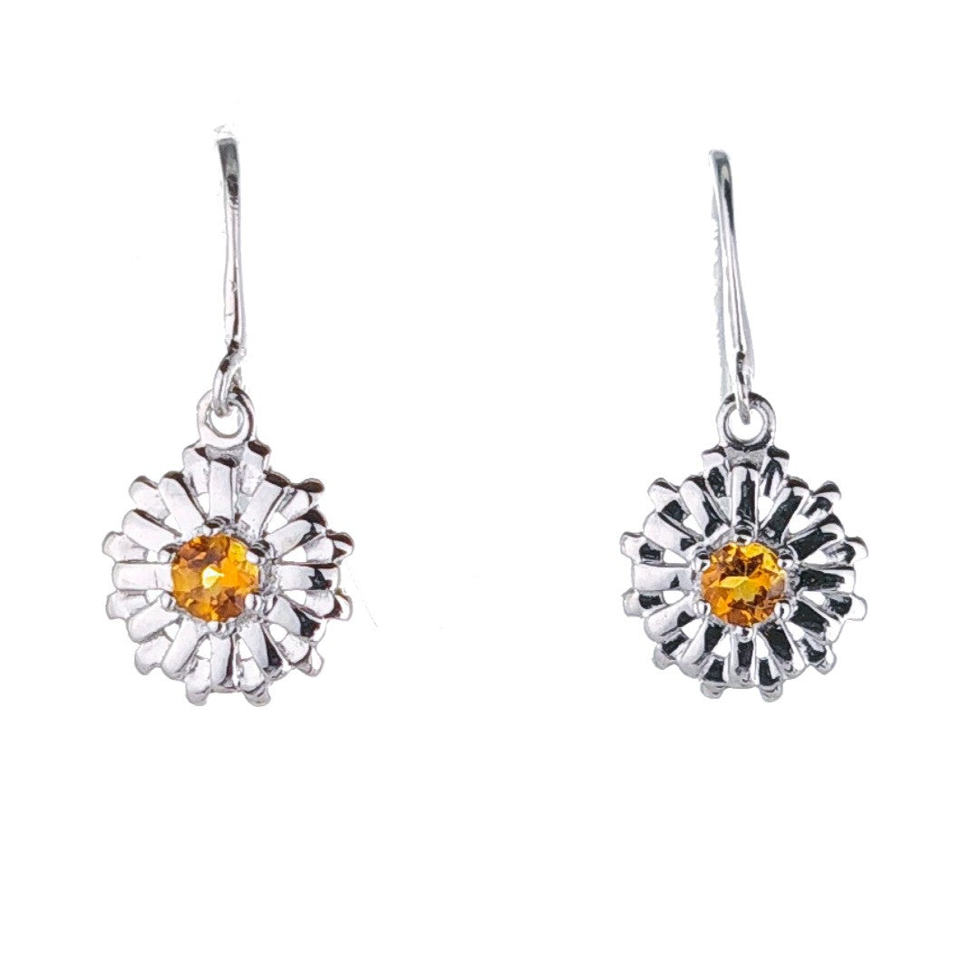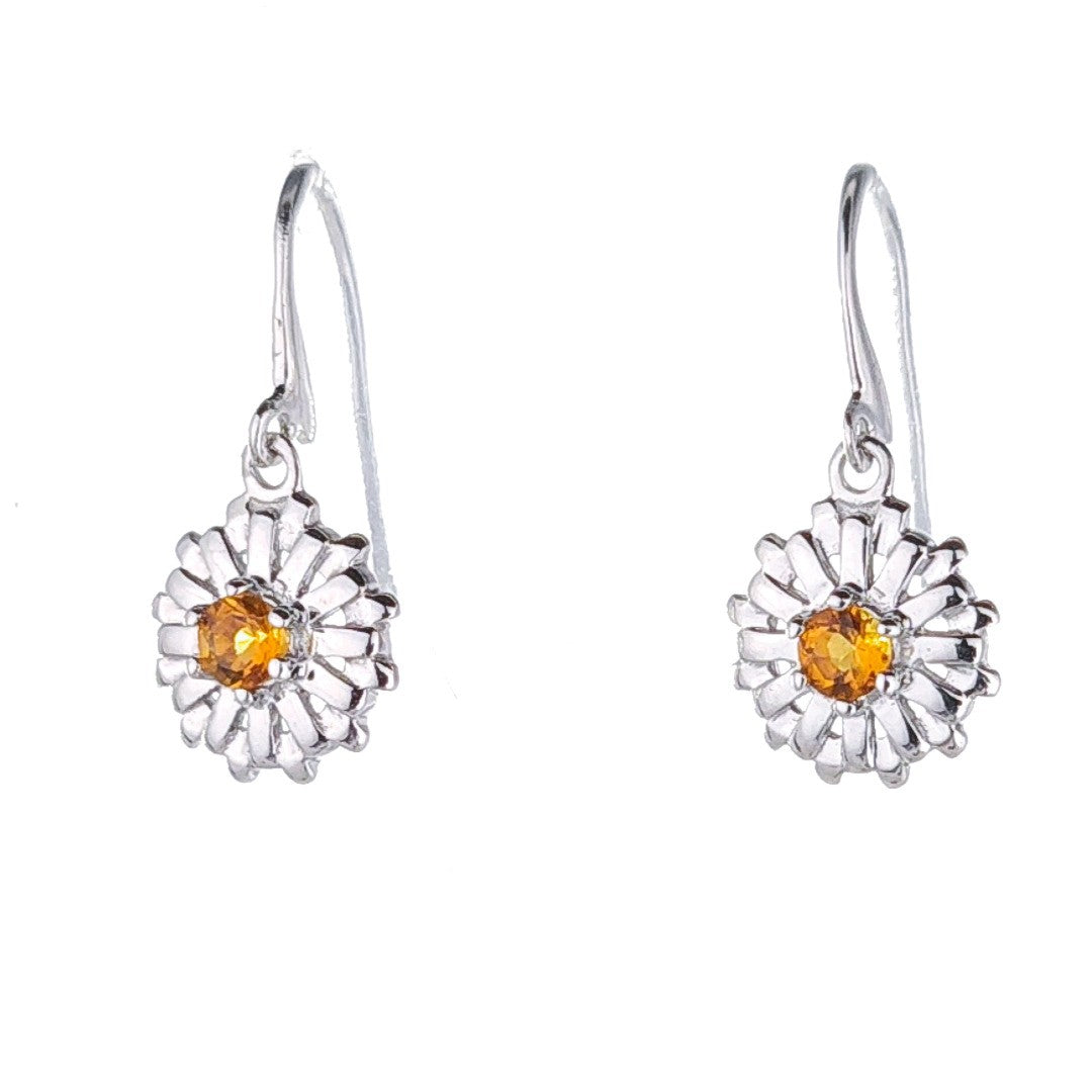 Sterling Silver Citrine Sun Earrings Dangle Yellow Hook November Birthstone