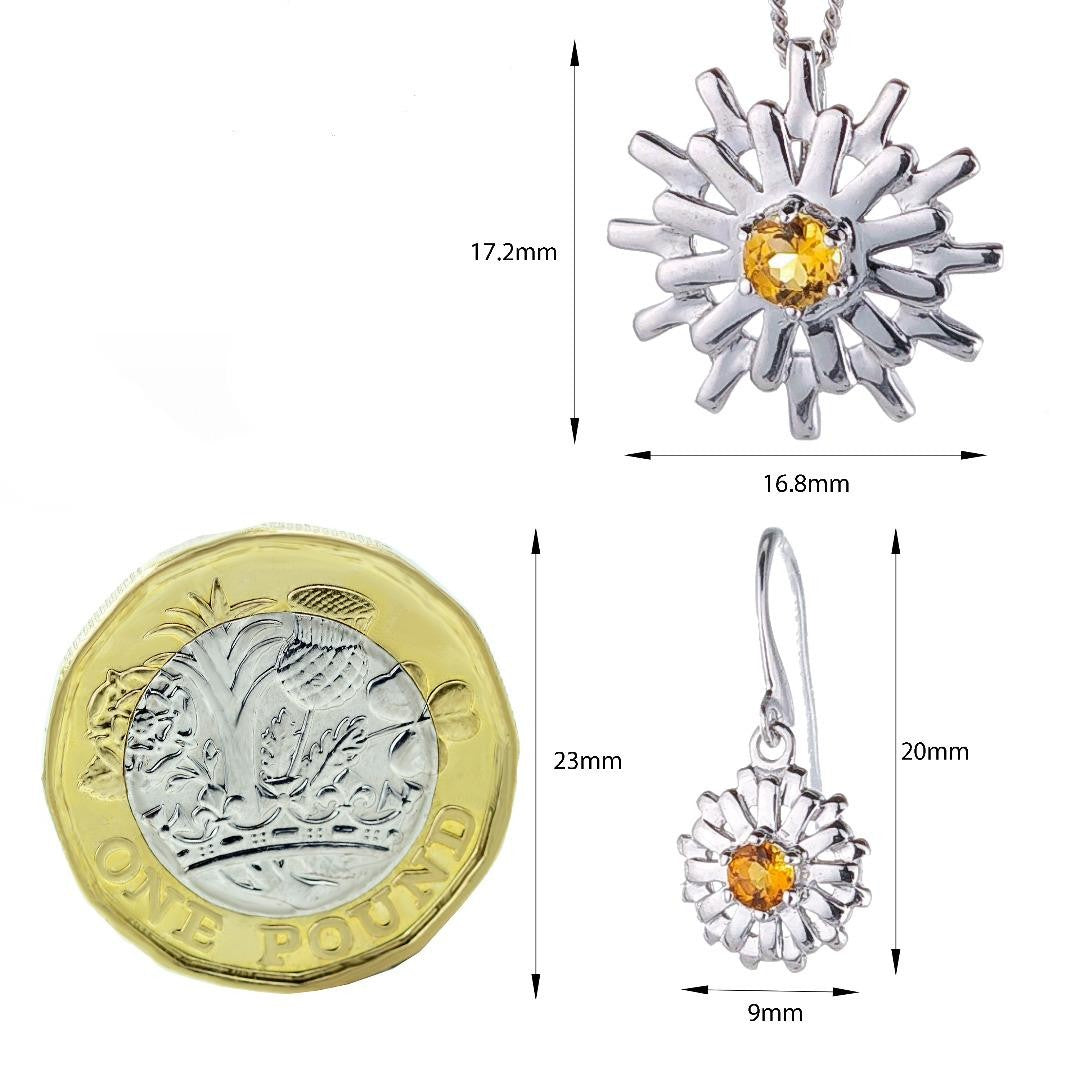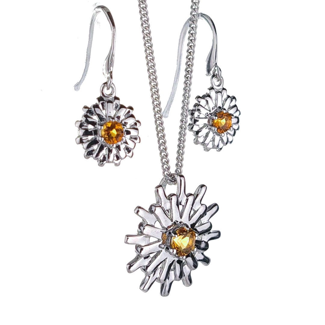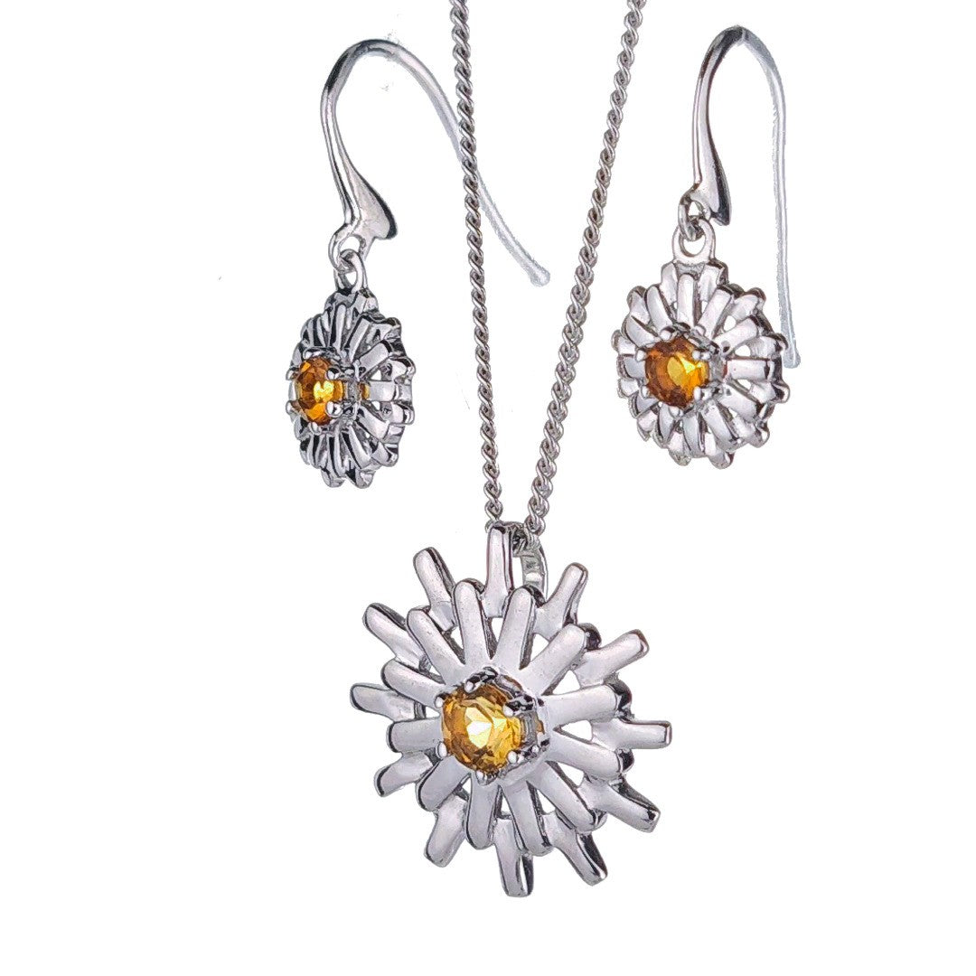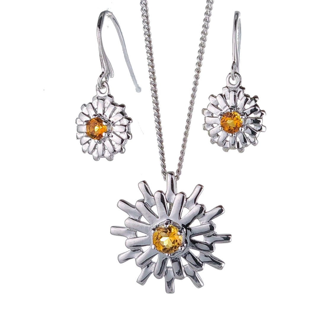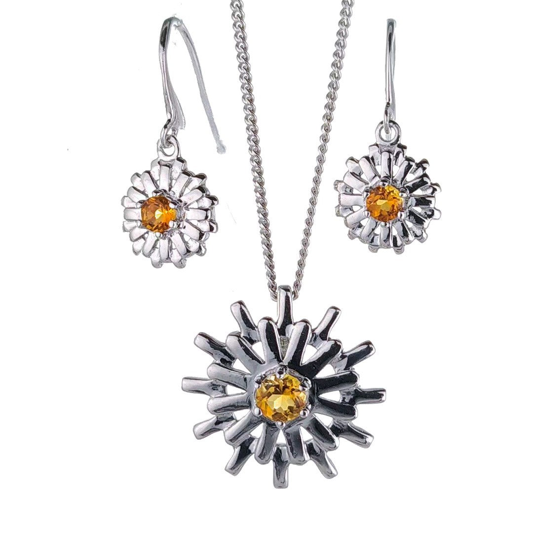 Sterling Silver Citrine Sun Set Yellow Necklace Dangle Earrings November Birthstone