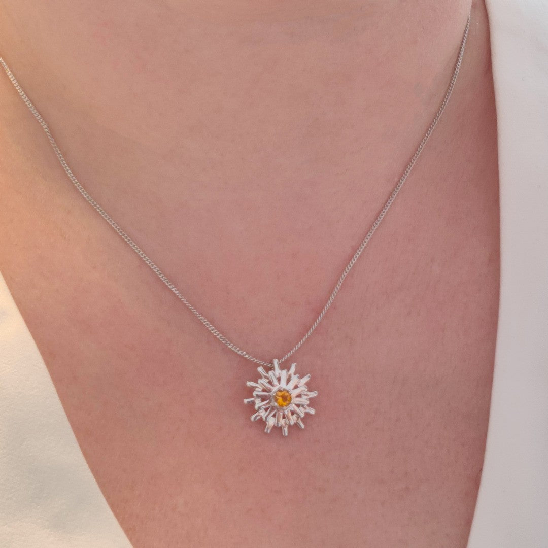 An Ojewellery design allowing the wearer to carry a little sunshine where ever their path takes them. Sun symbolism has many interpretations whether it is to cast light on shadows of the past, or to light the path to a postitive future.