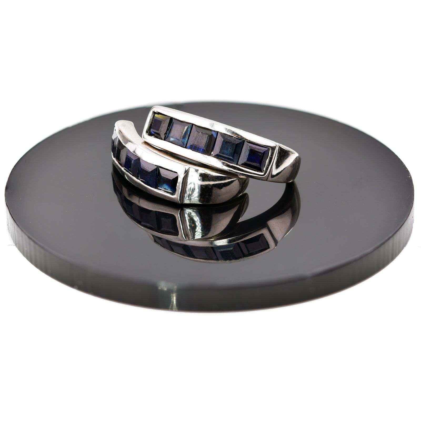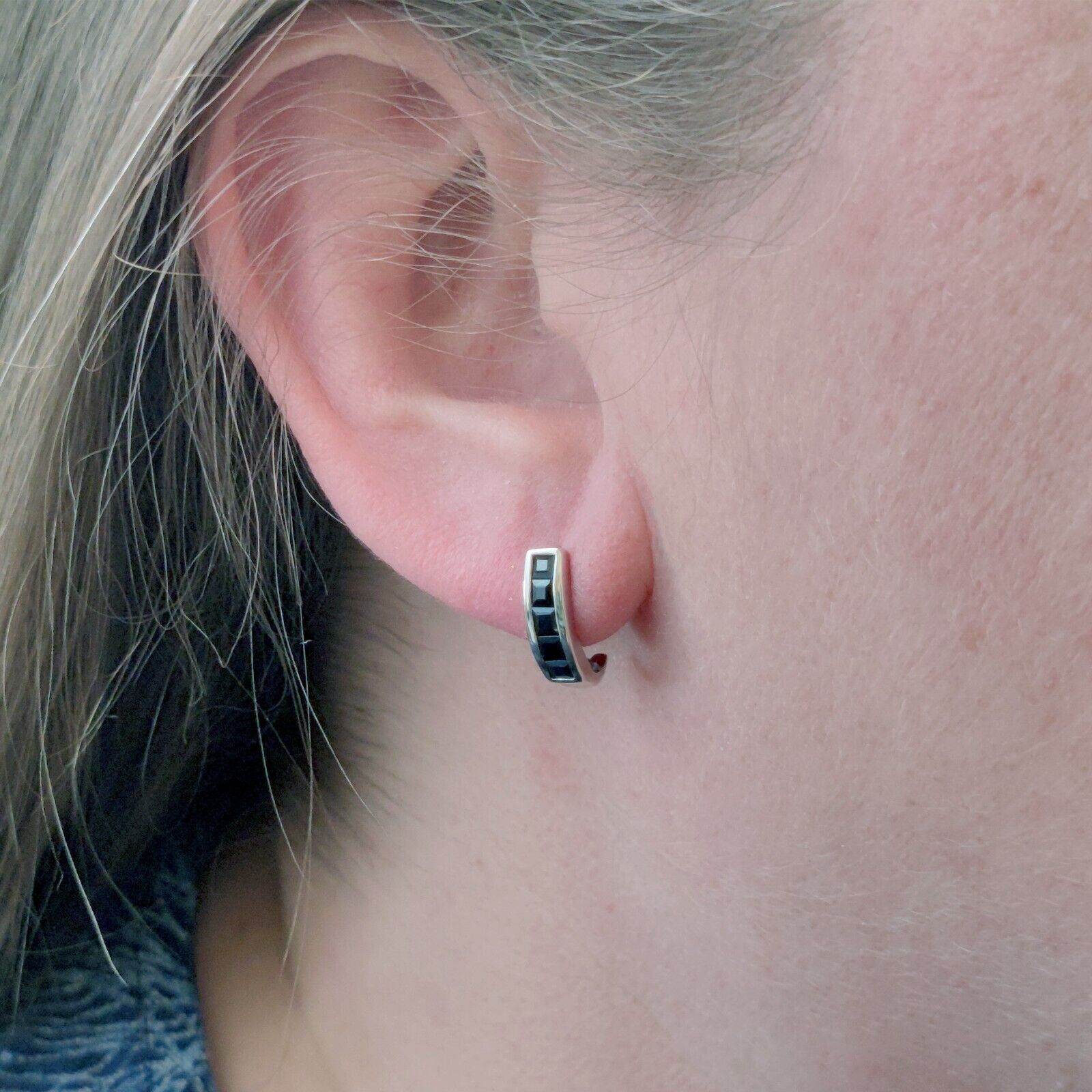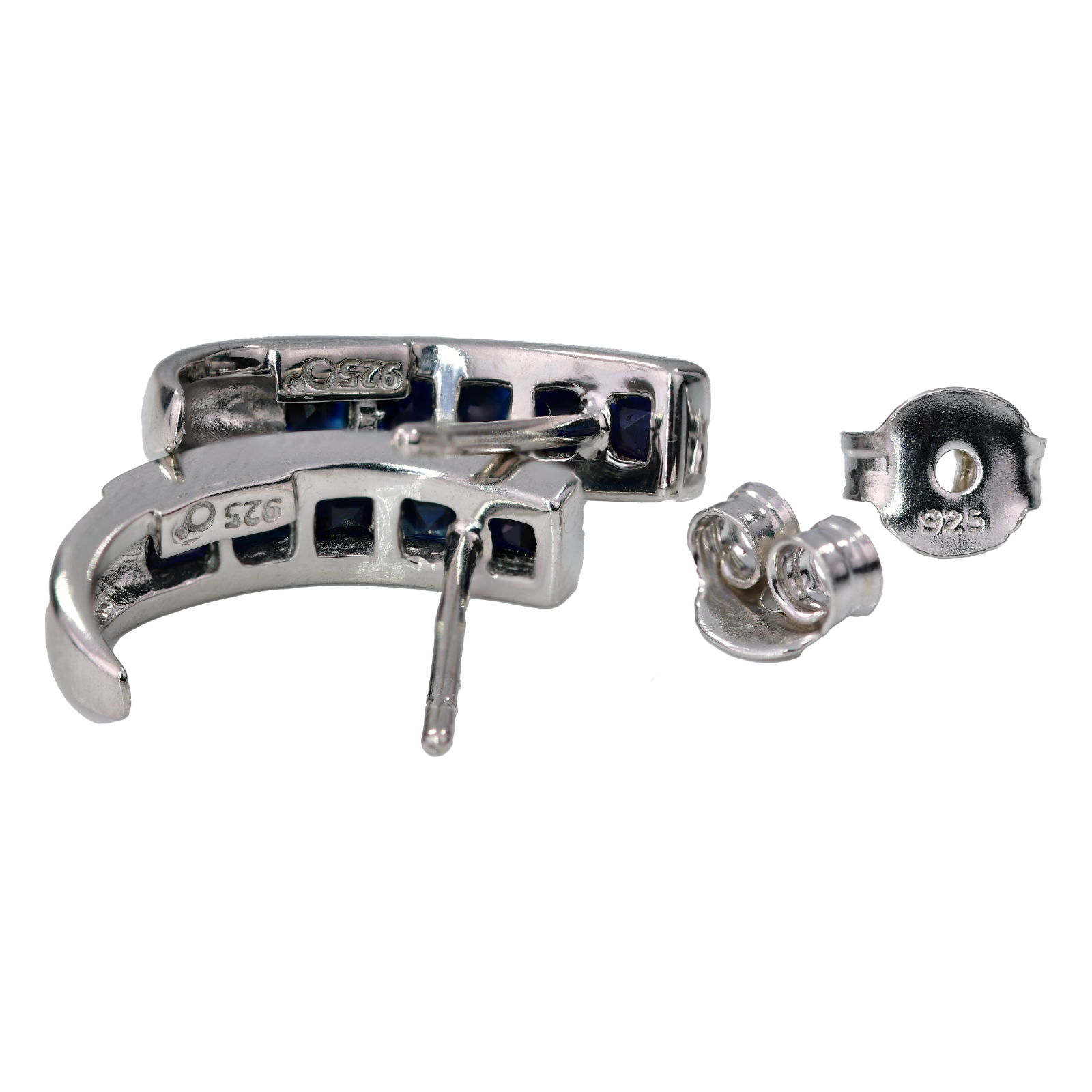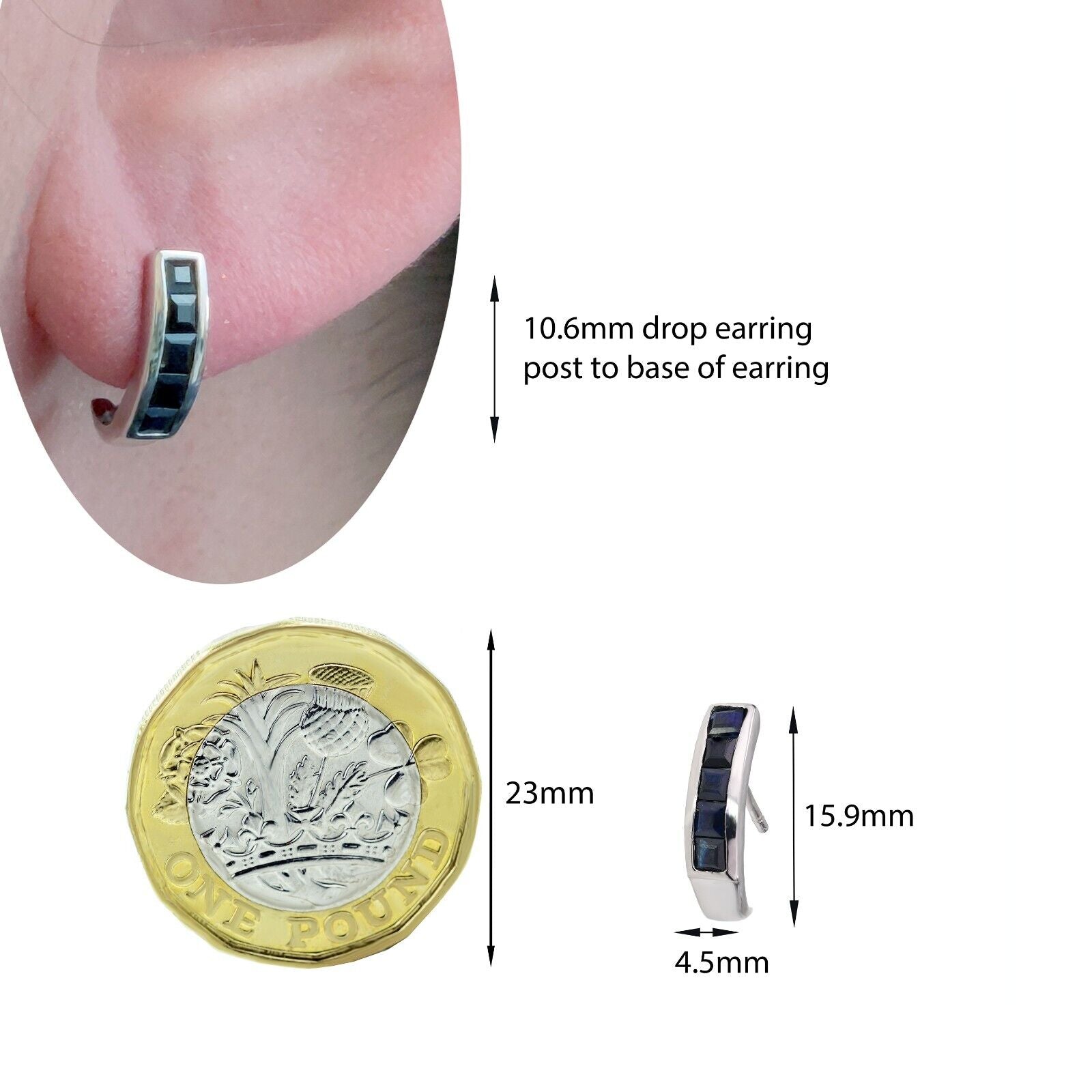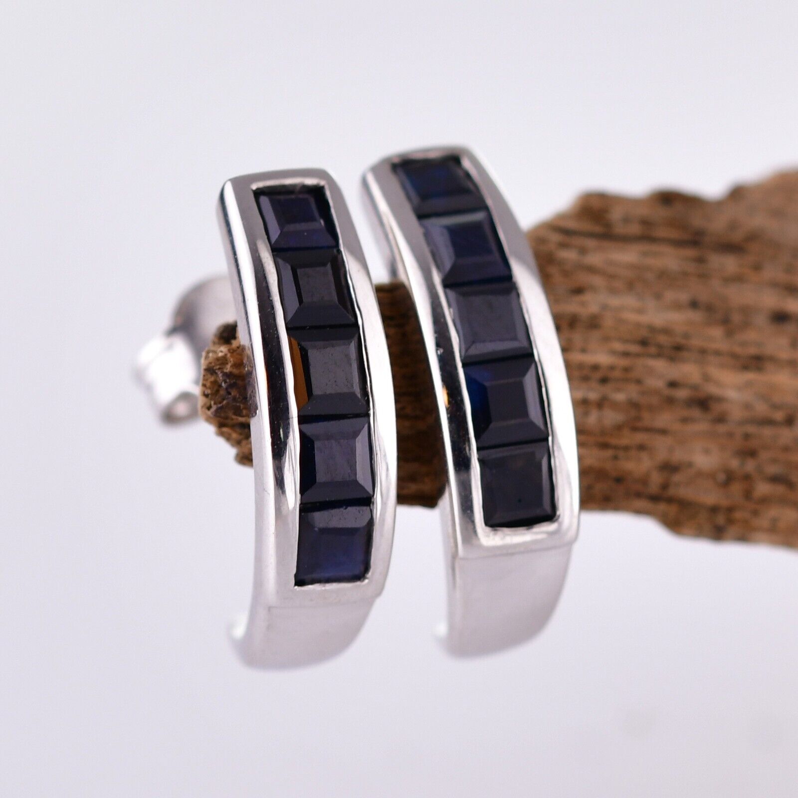 Sterling Silver Earrings Hoop Half Sapphire Ink Blue Oval Womens