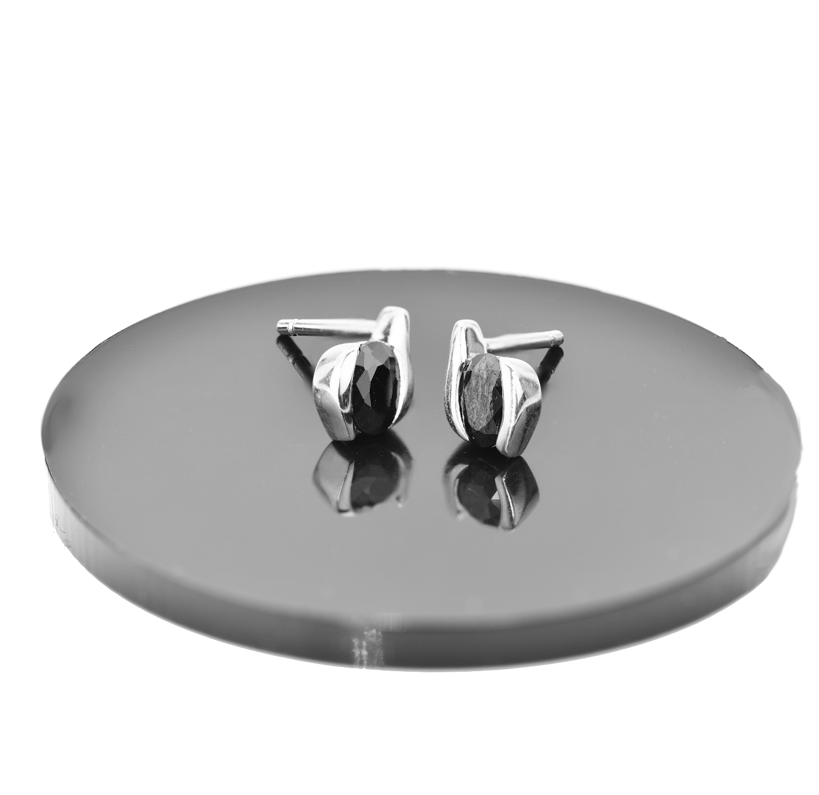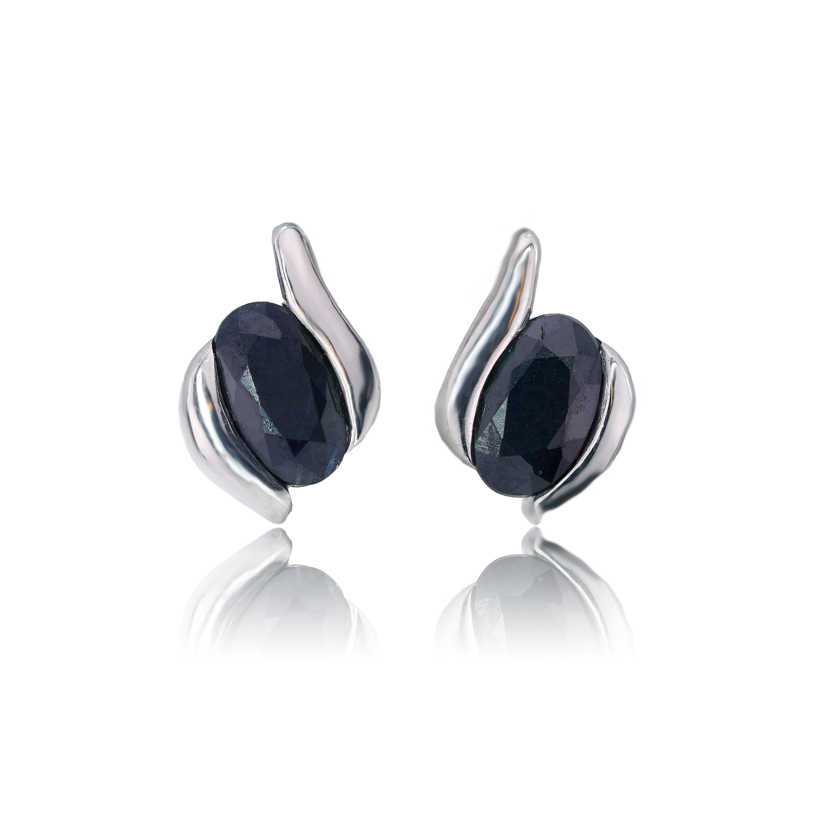 Sterling Silver Earrings Stud Sapphire Ink Blue Oval Contemporary Womens