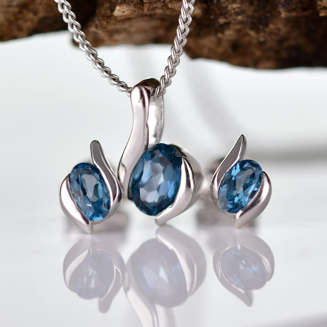 Sterling Silver Necklace Earring Set London Blue Topaz Personalised Christmas Gift