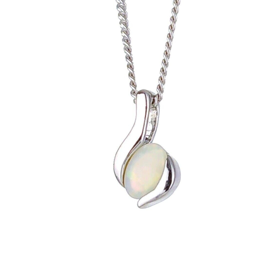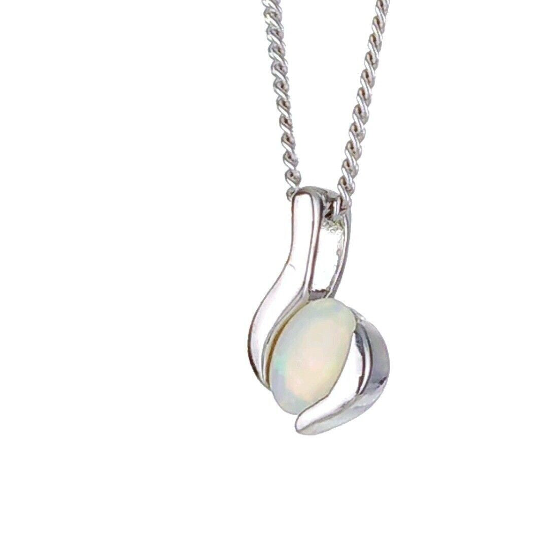 Elegant sterling silver contemporary opal necklace set with an elegant natural milky white natural Australian Opal.