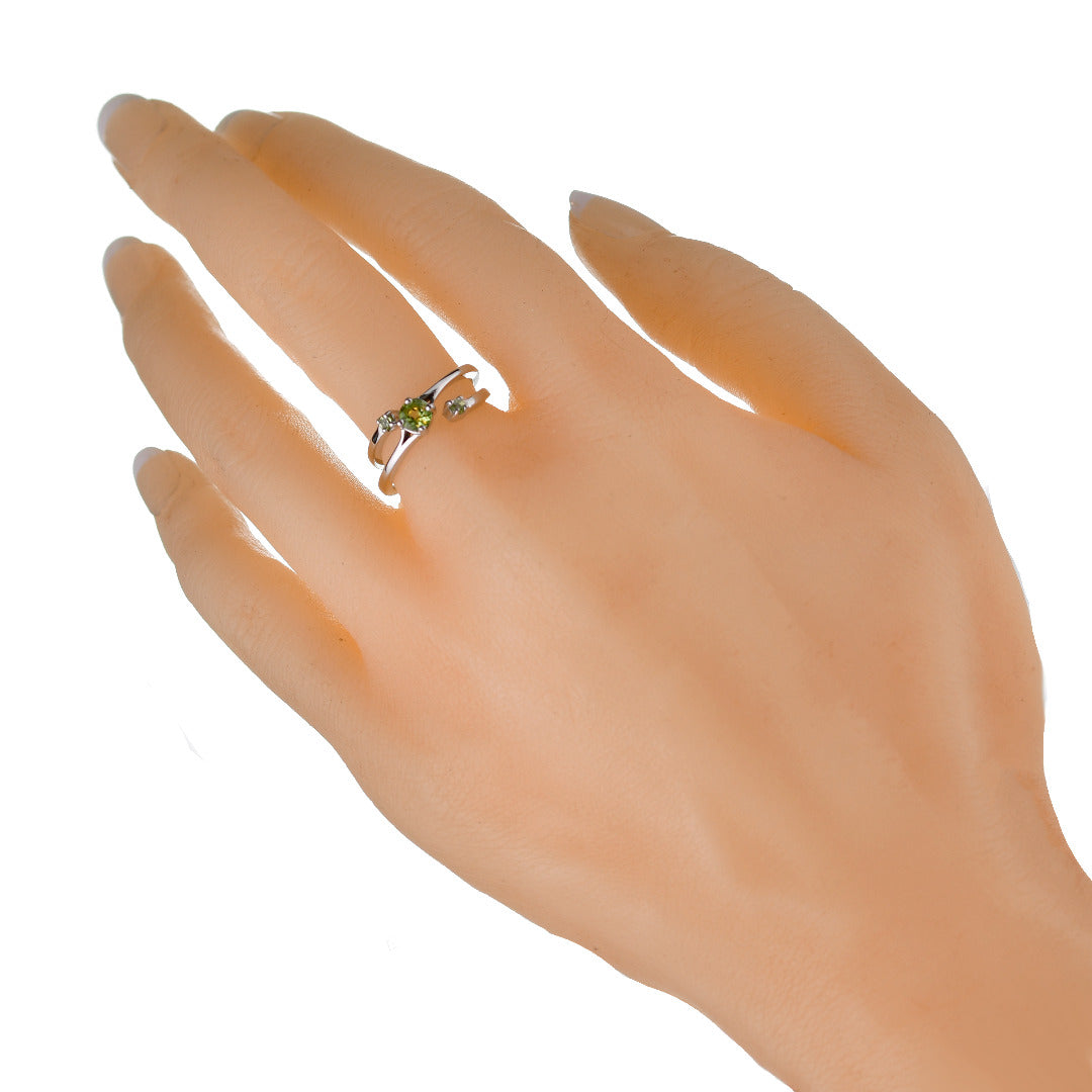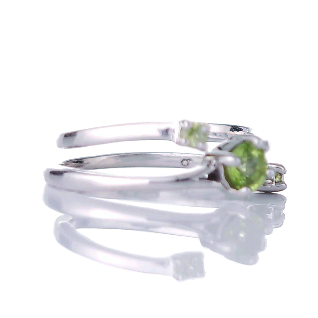 Sterling Silver Peridot Ring Size I-S Adjustable Green August Birthday