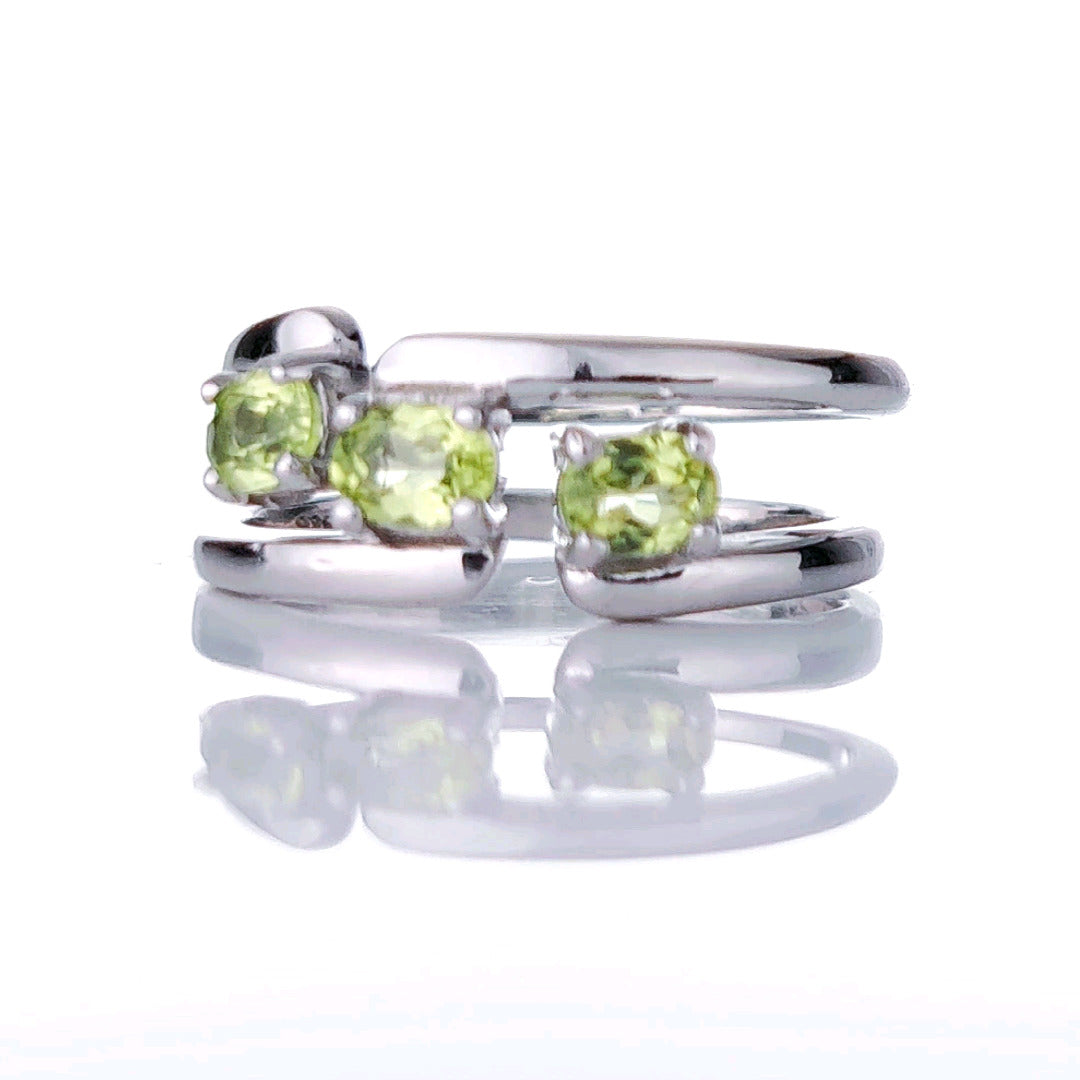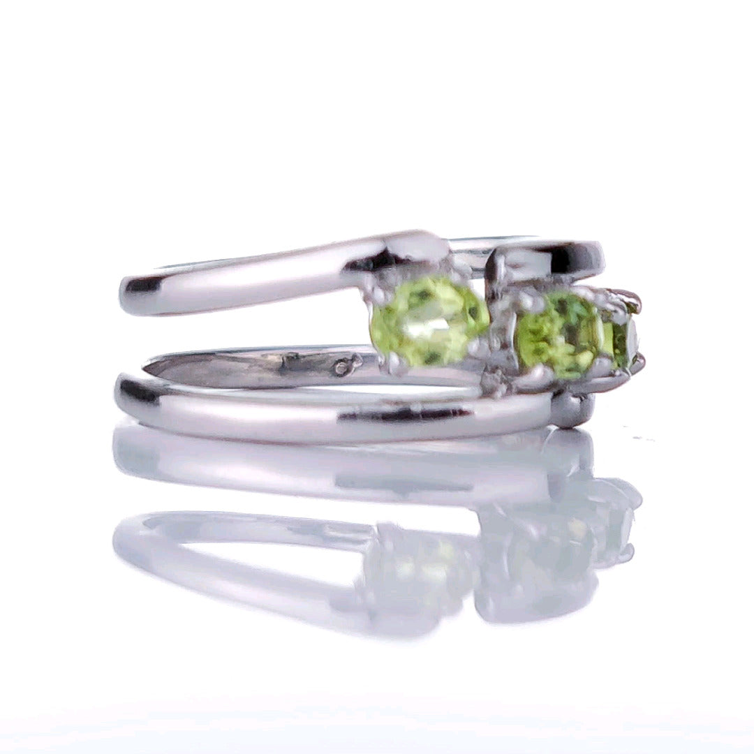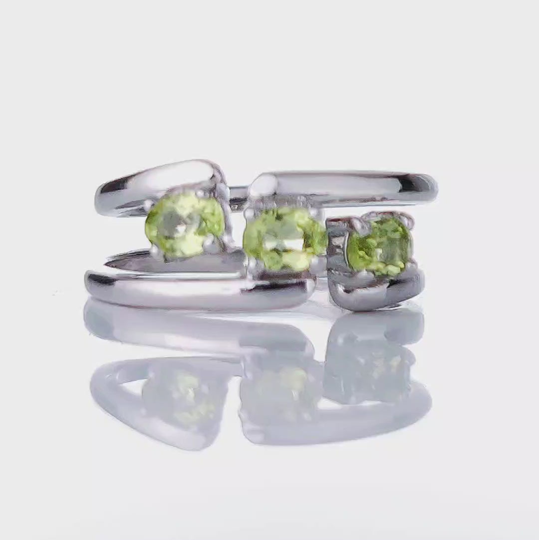 Sterling Silver Peridot Trilogy Statement Double Band Ring. Set with three Oval natural African green peridot