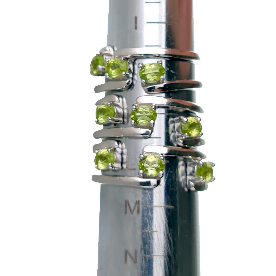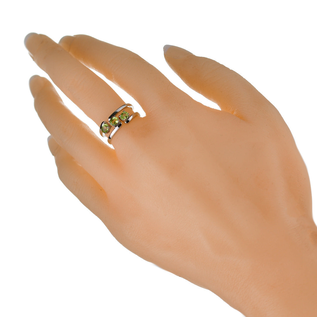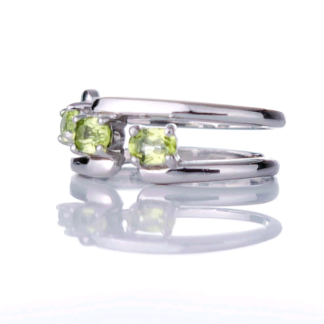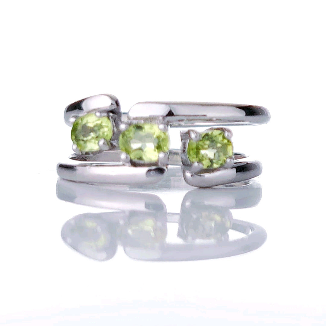 Sterling Silver Peridot Trilogy Statement Double Band Ring. Set with three Oval natural African green peridot