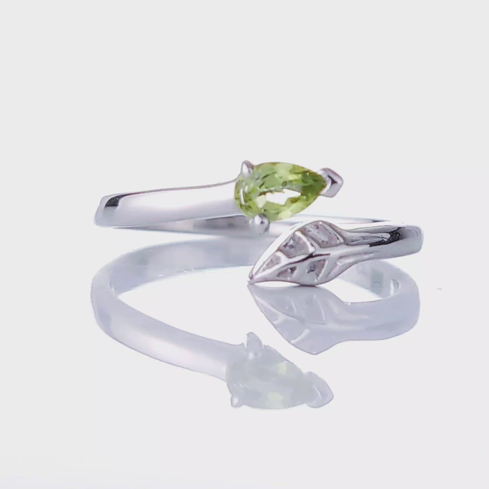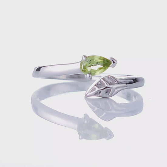 Sterling Silver Peridot Ring Leaf and stone design with a pear shaped natural Arizona USA pear green peridot.