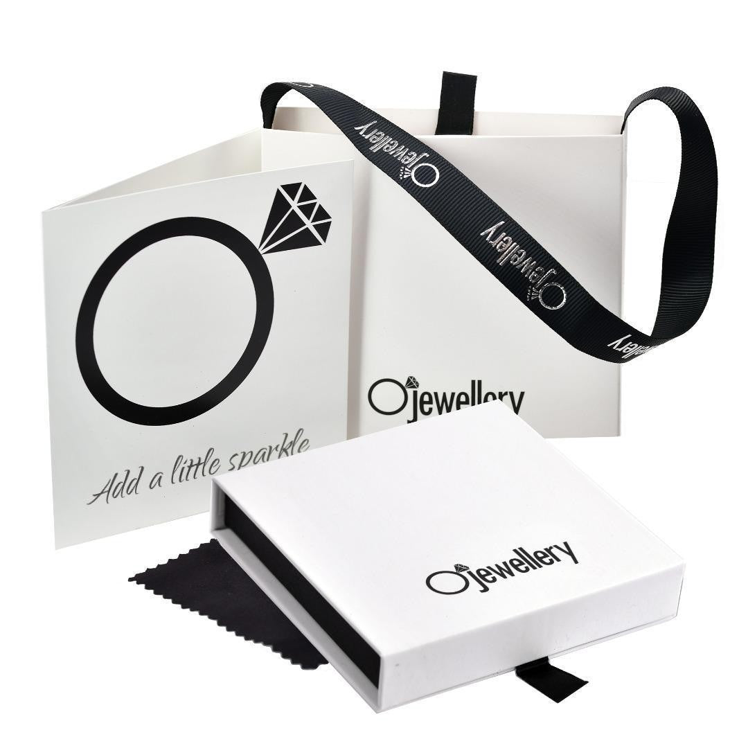 Supplied in an Ojewellery presentation box, within a ribbon handled gift bag, complete with product information authenticity card with space for a gift message and a jewellery cleaning cloth to keep your jewellery in ready to wear condition.