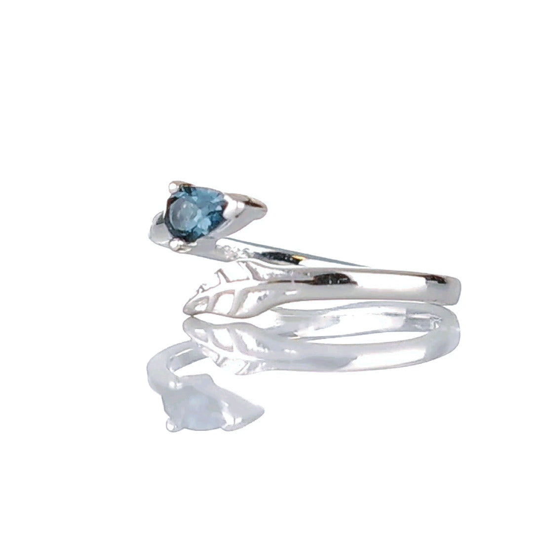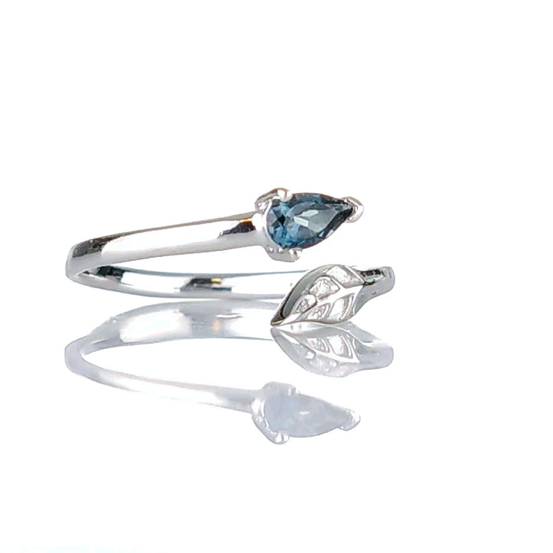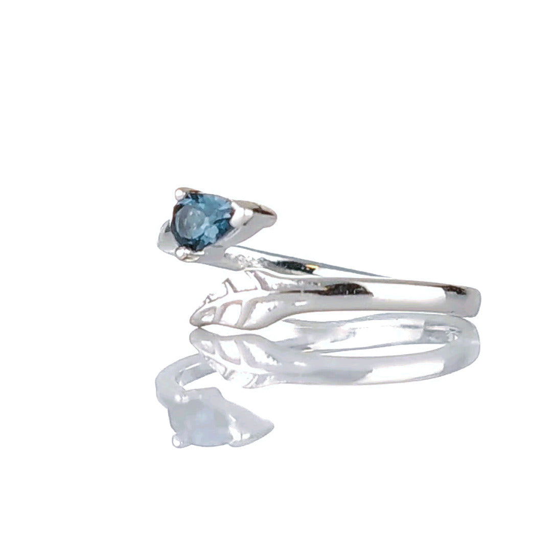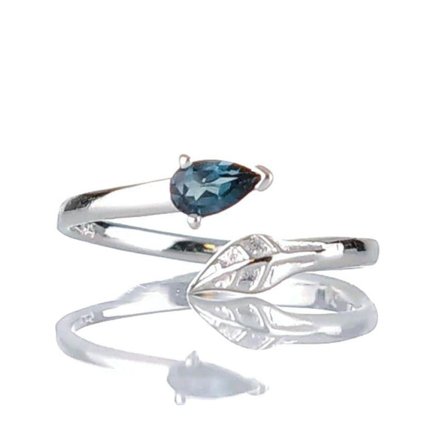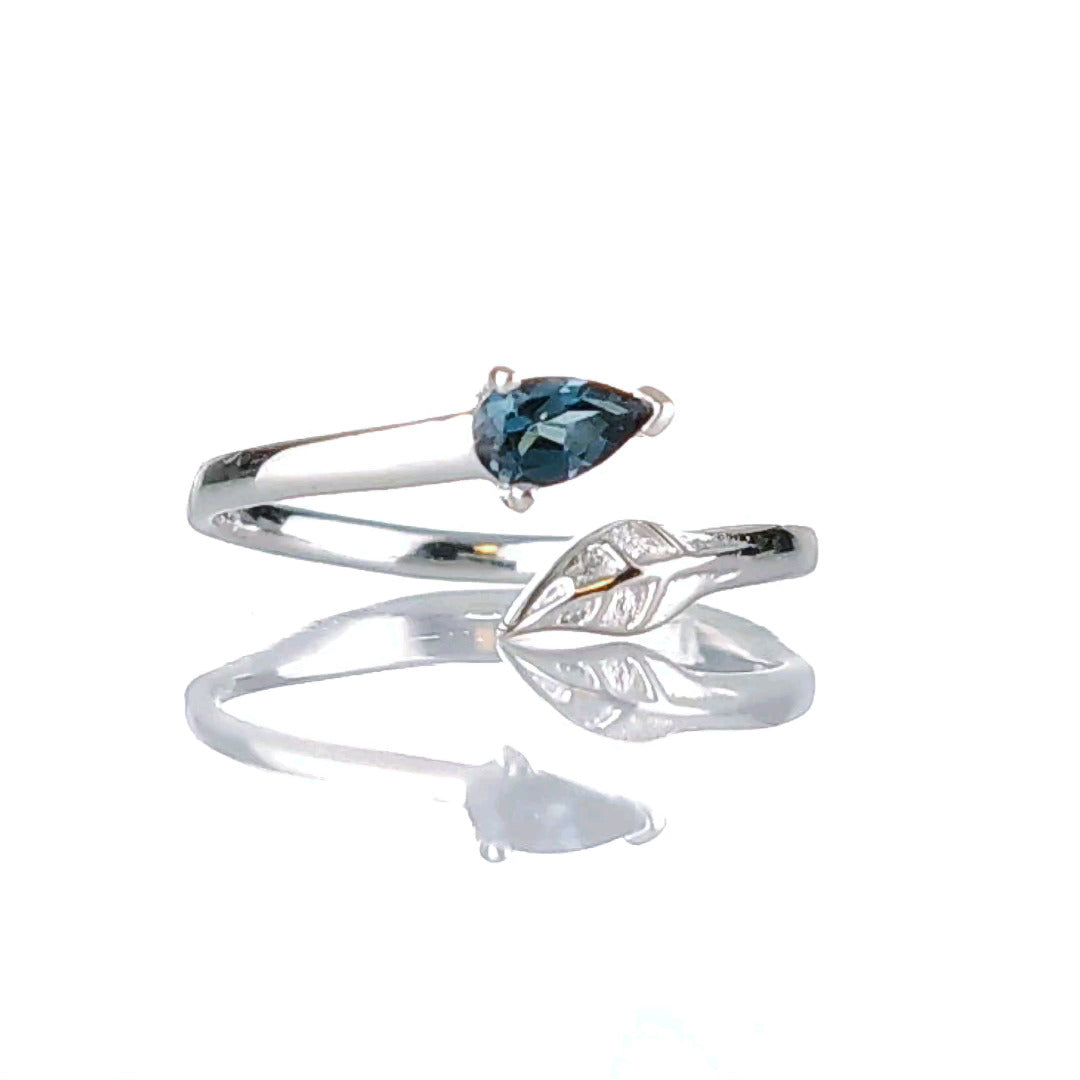 Sterling Silver Topaz Leaf Ring Adjustable Size I-T London Blue Boxed Gift