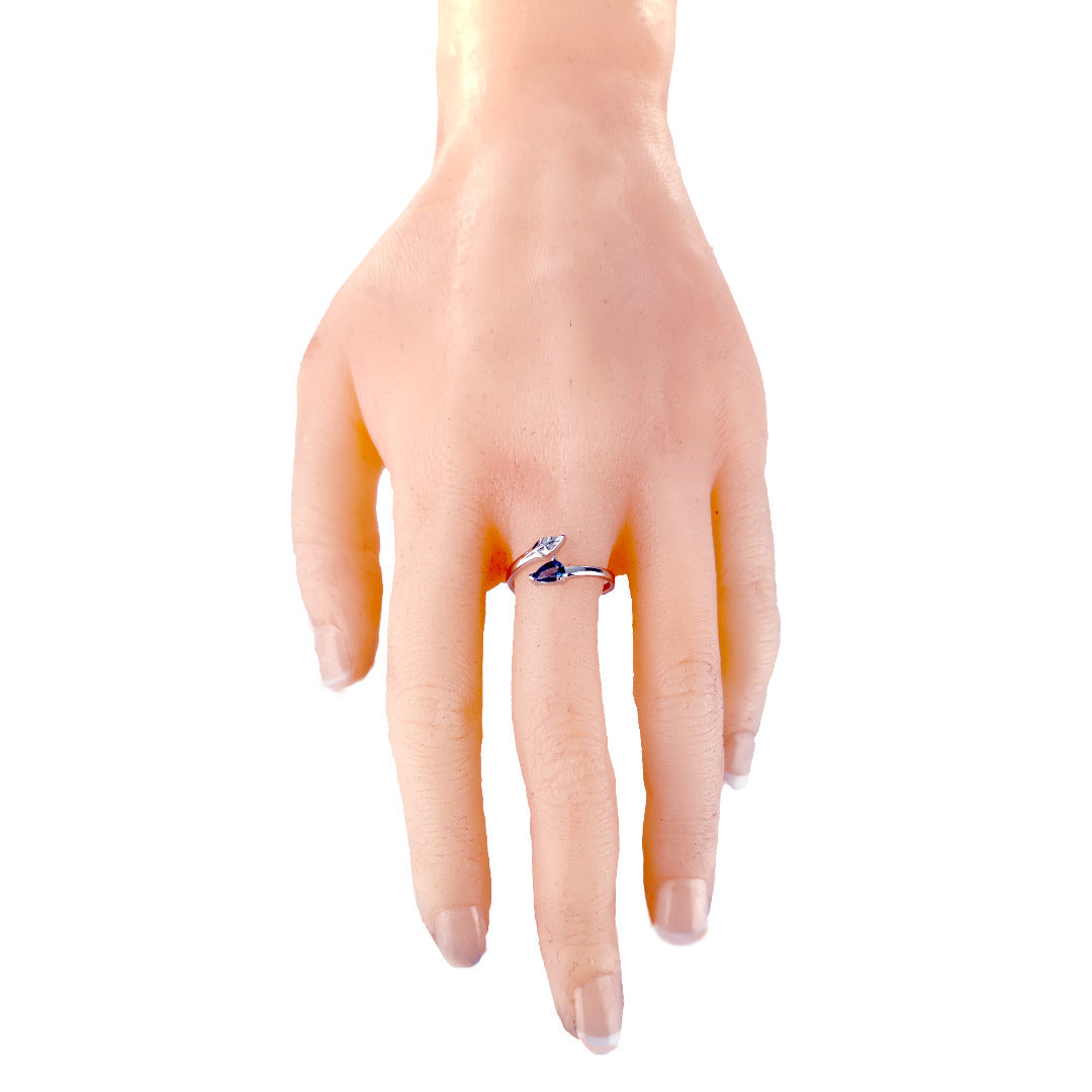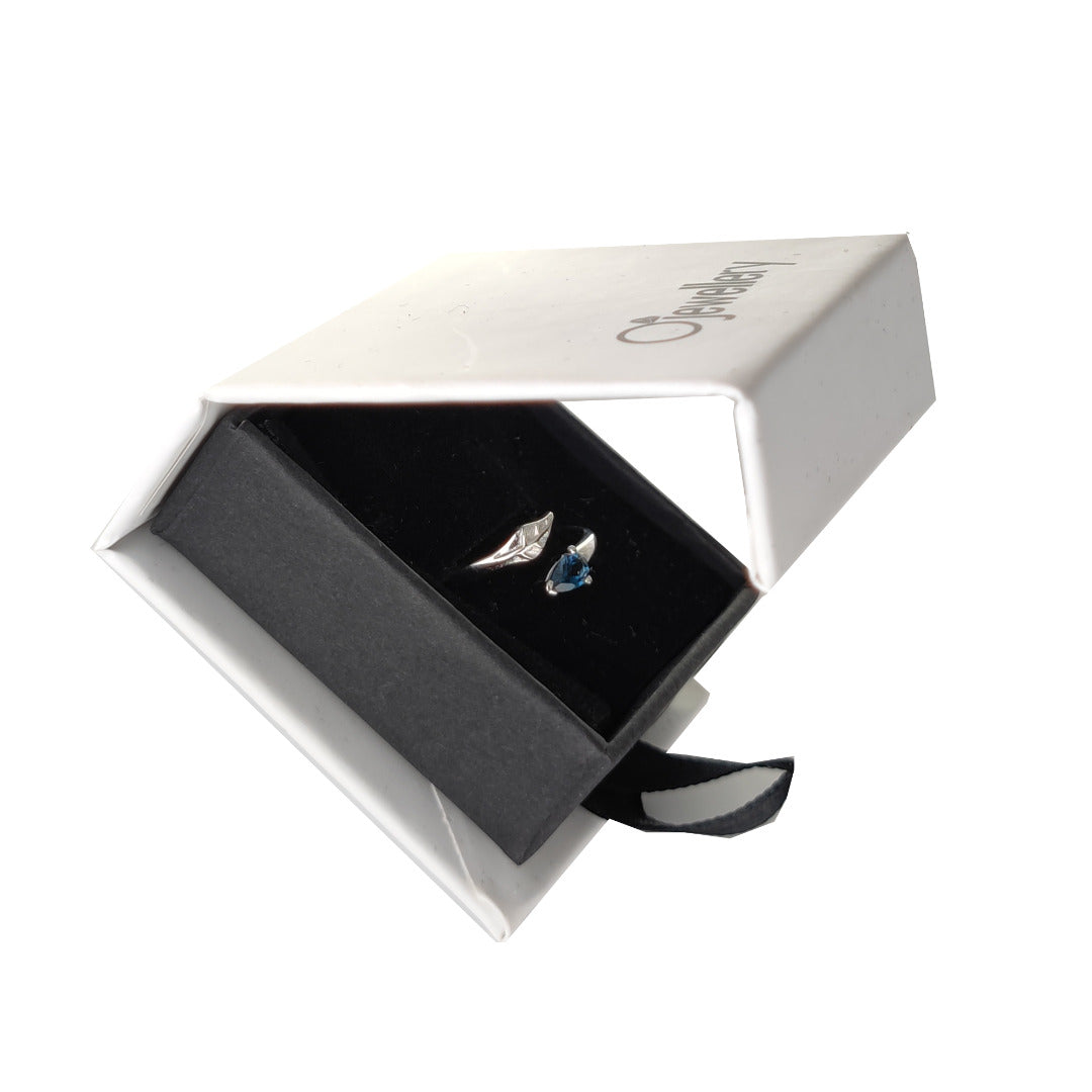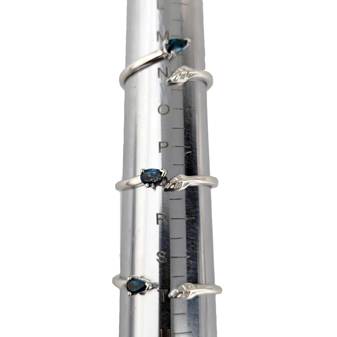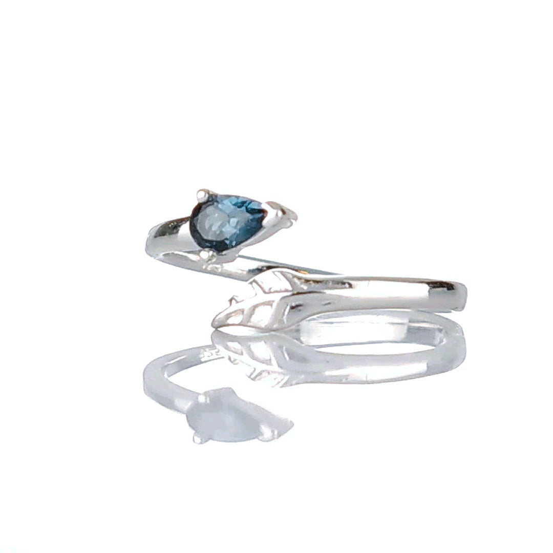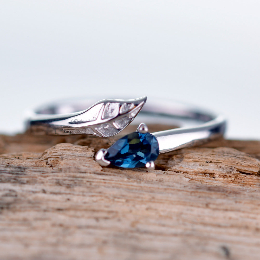 Sterling Silver Topaz Leaf Ring Adjustable Size I-T London Blue Boxed Gift